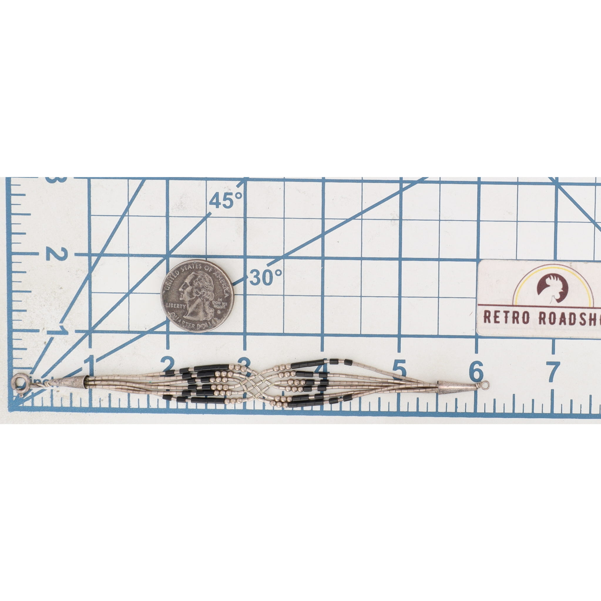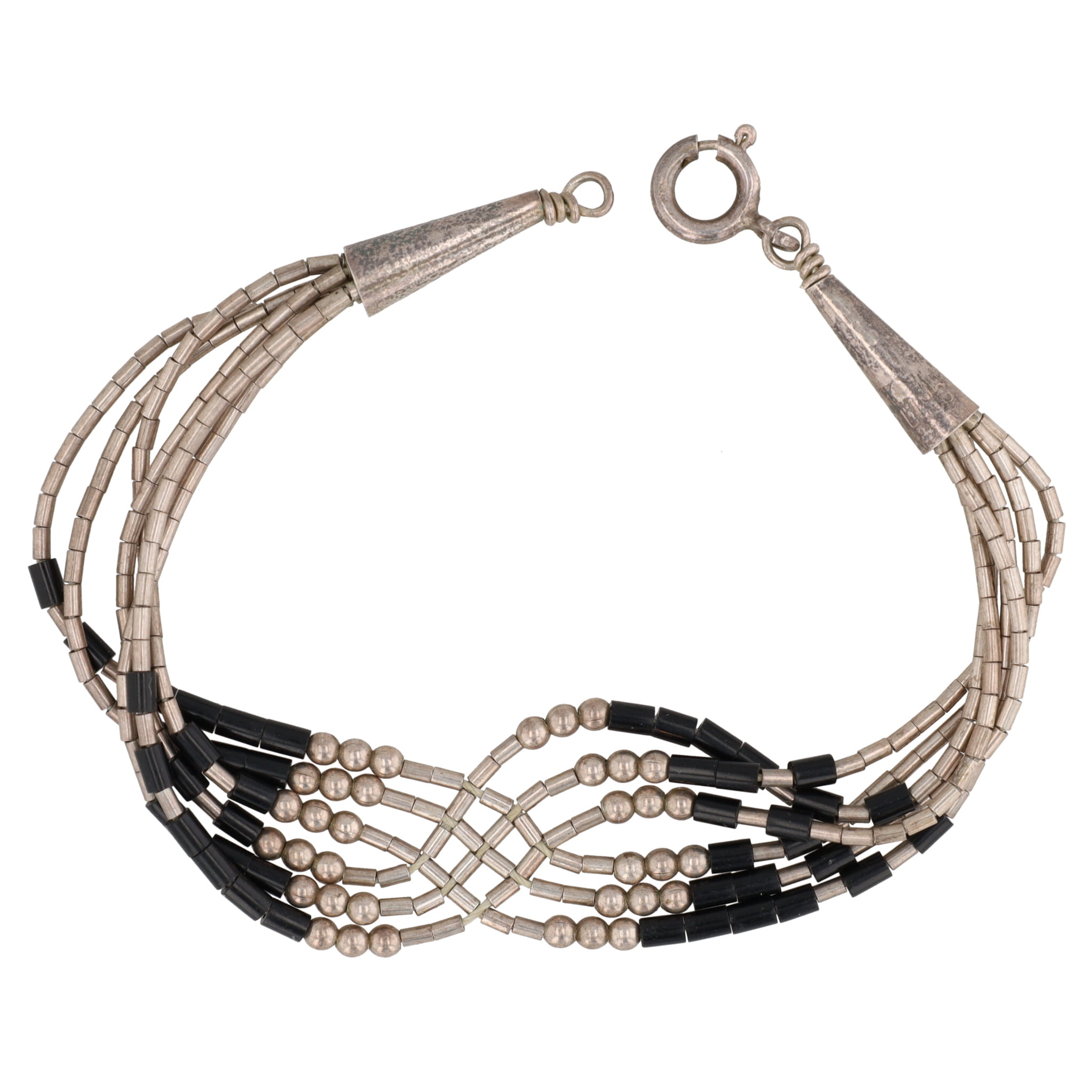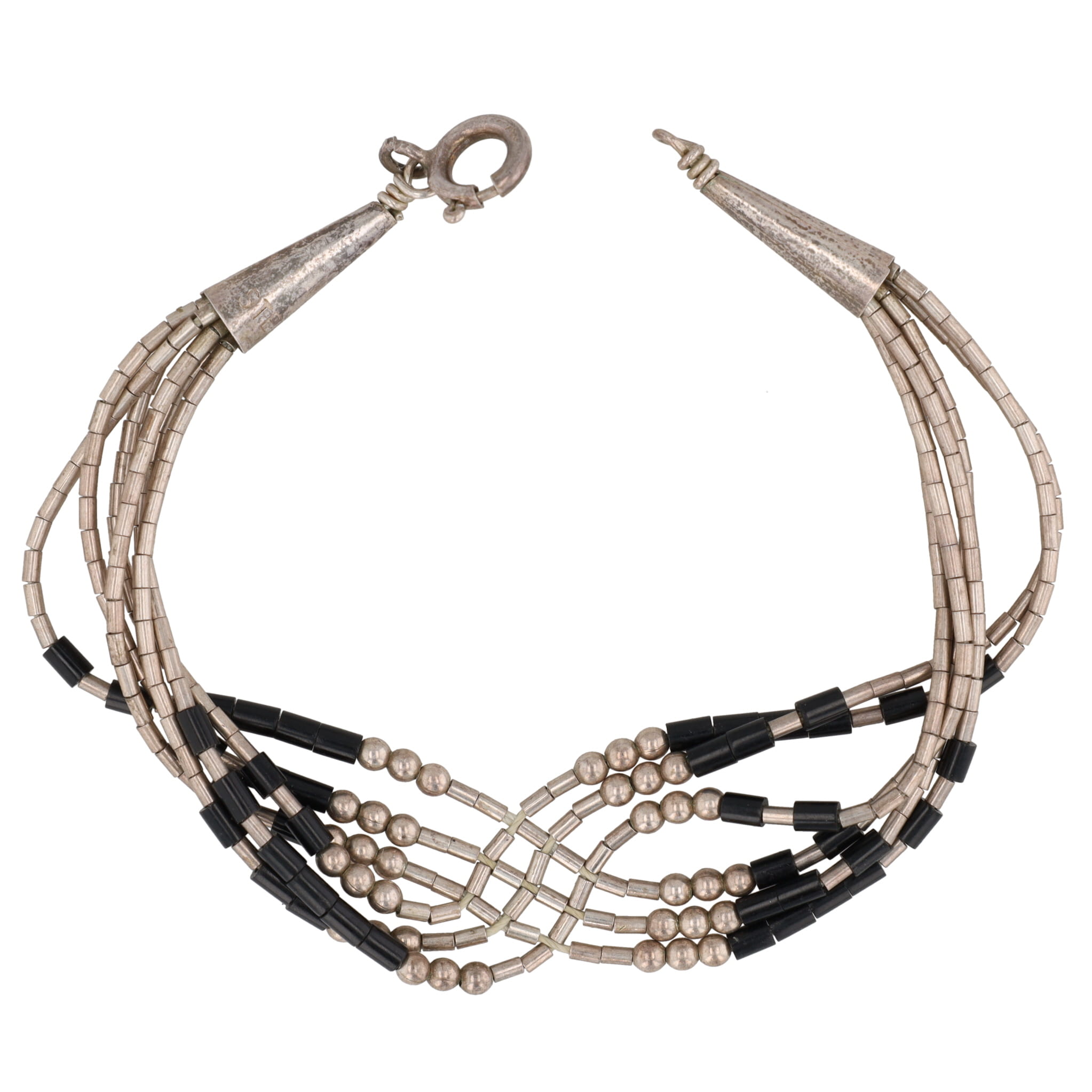 Native American Liquid Sterling Silver Black Bead Bracelet 5g