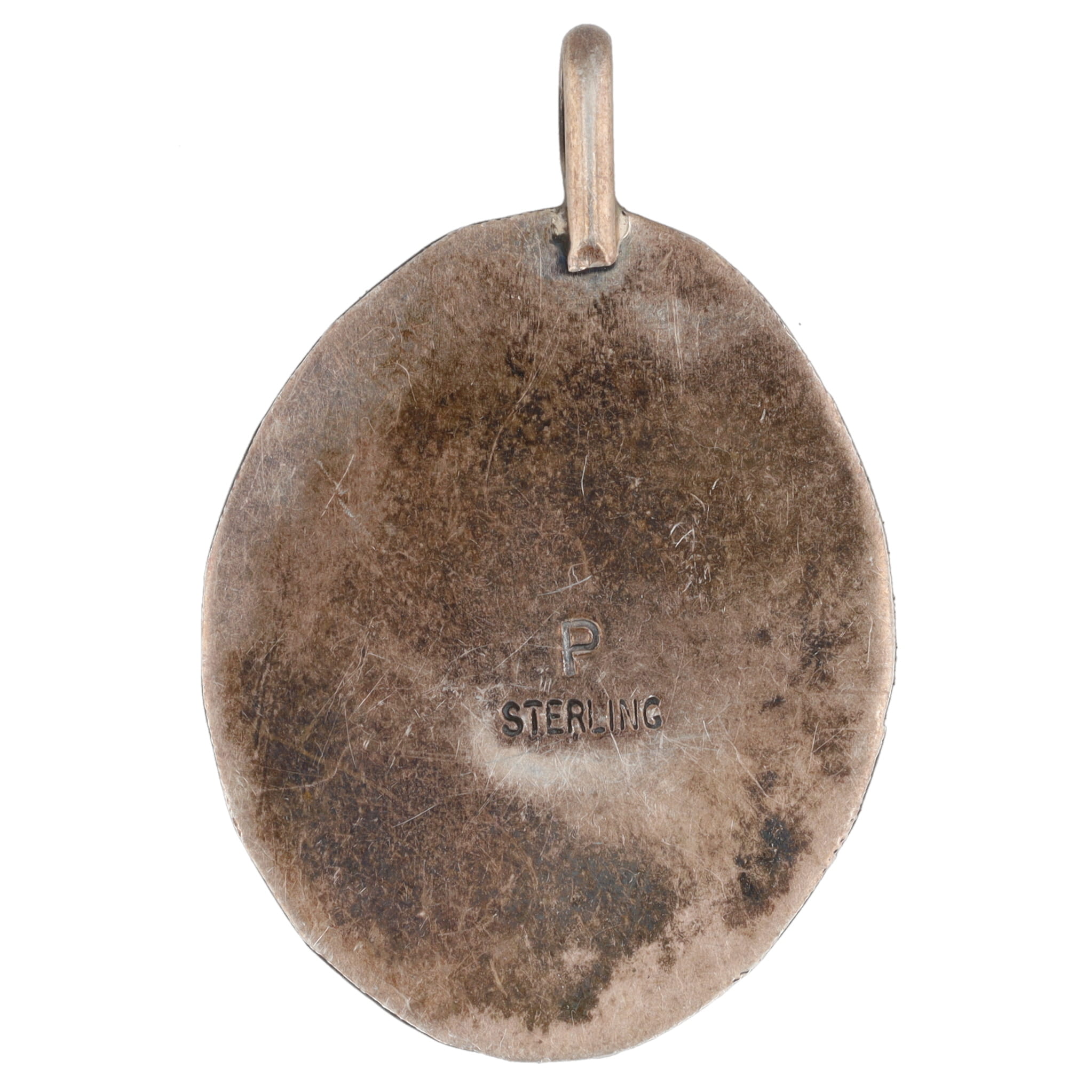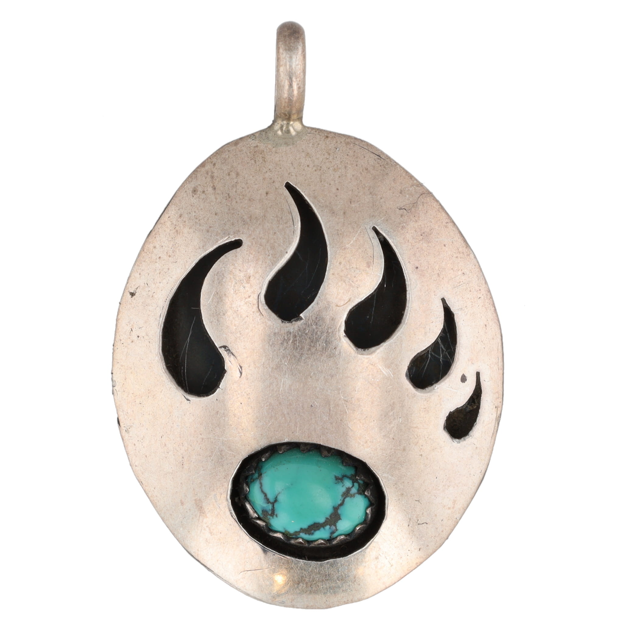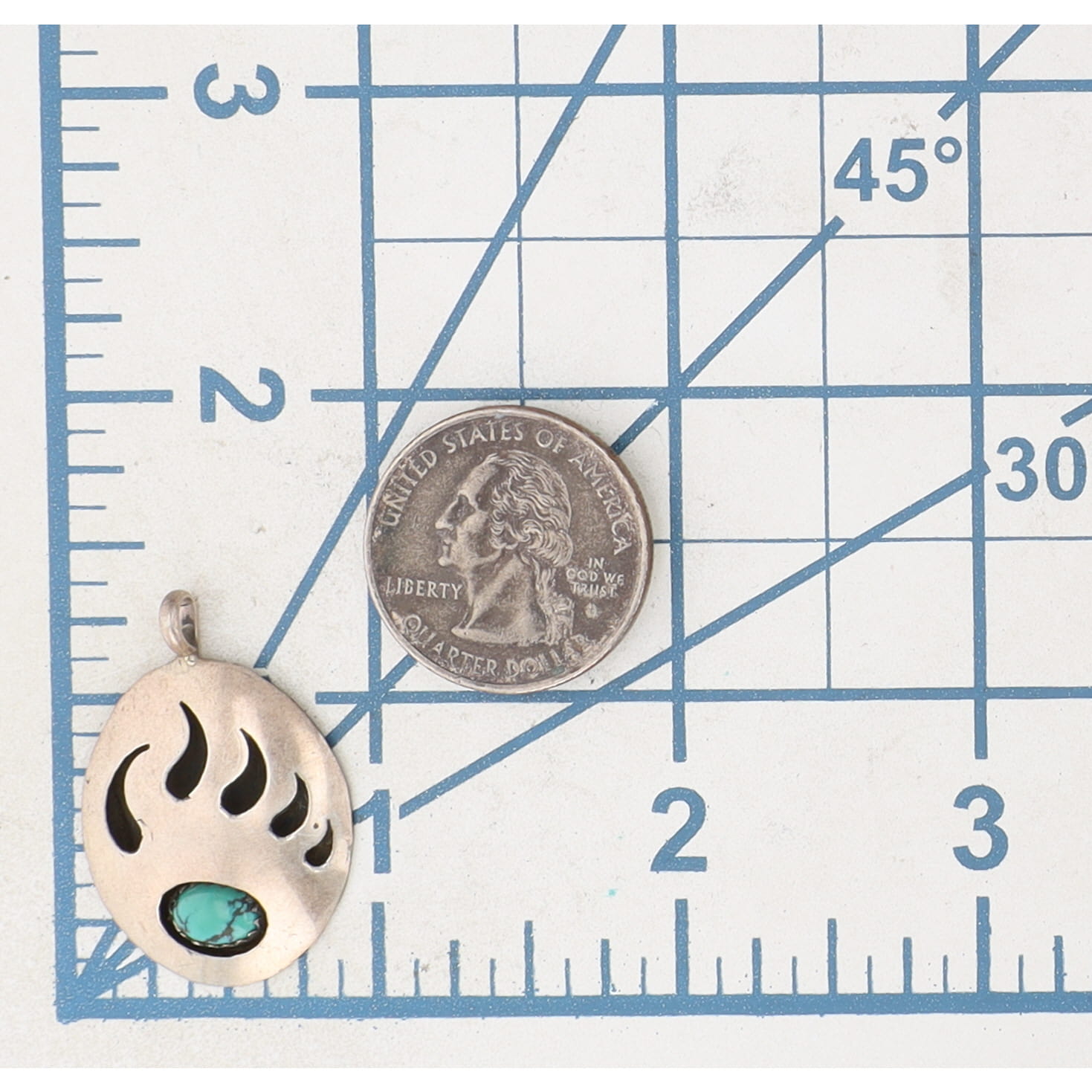 Signed P Navajo Turquoise Sterling Bear Paw Shadow Box Pendant 3g
