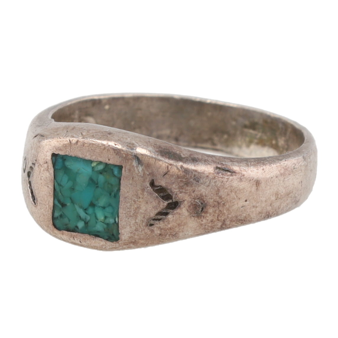 Vintage Navajo Crushed Turquoise Sterling Ring Sz. 5, 3.5g