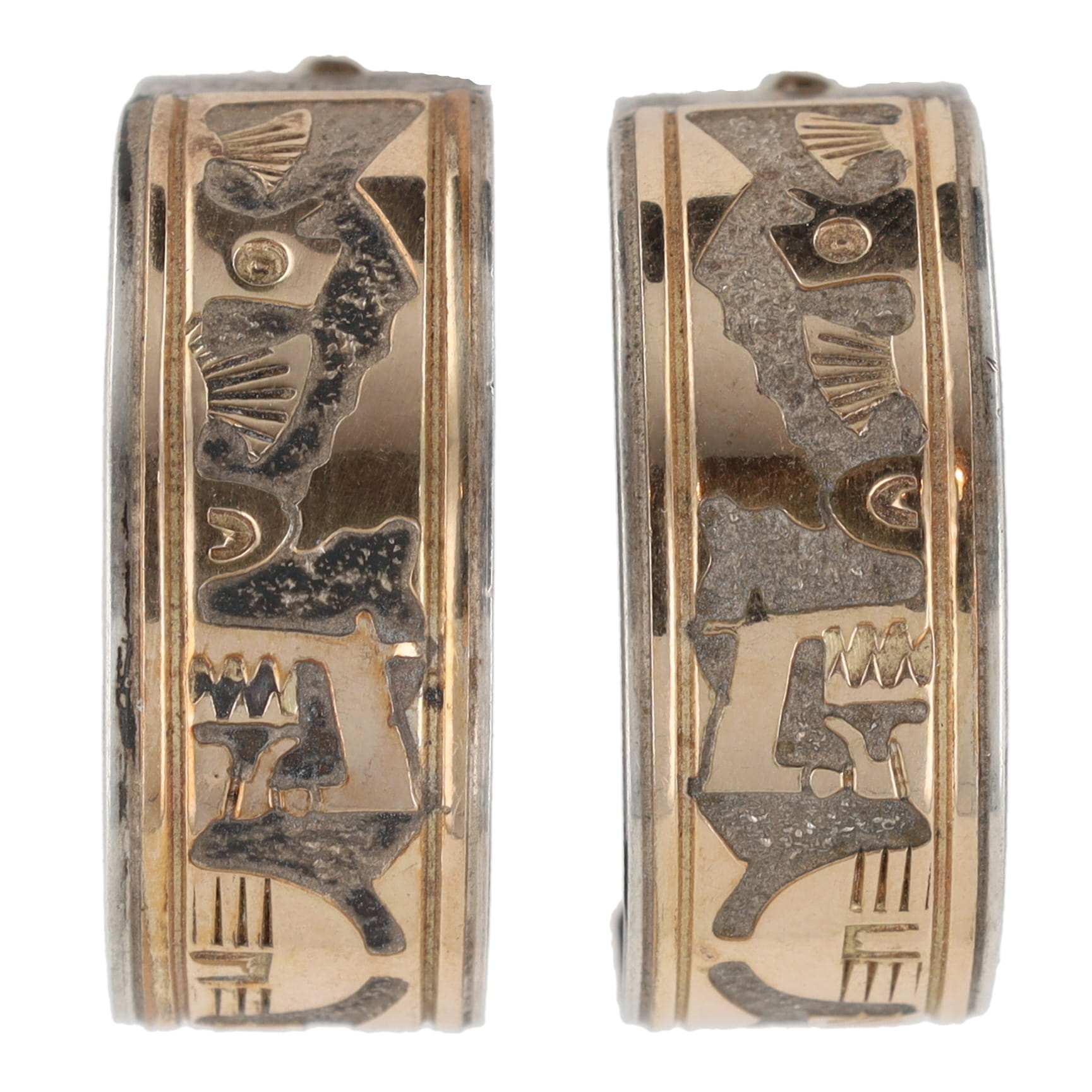 Offina Pino Navajo 12K Gold Filled Sterling Storyteller Hoop Earrings 8g