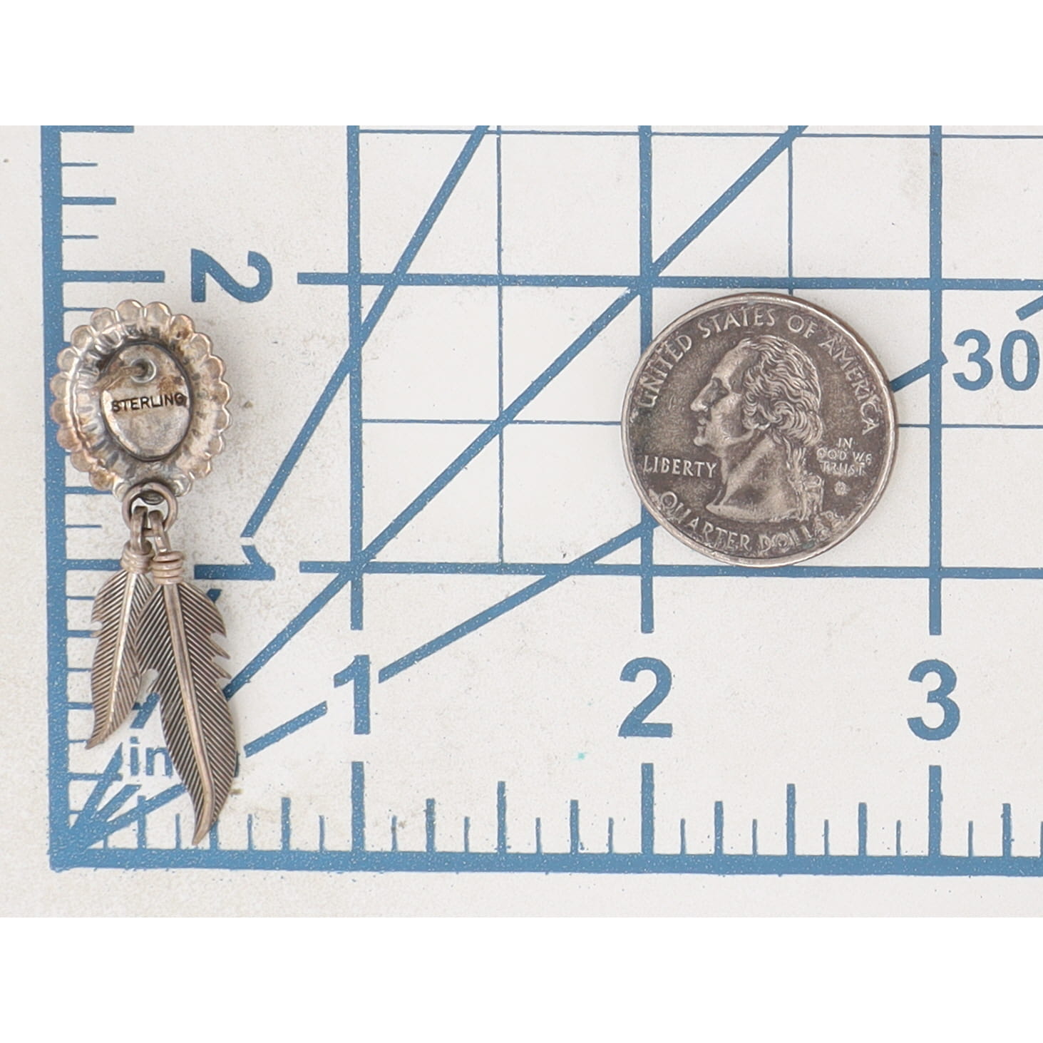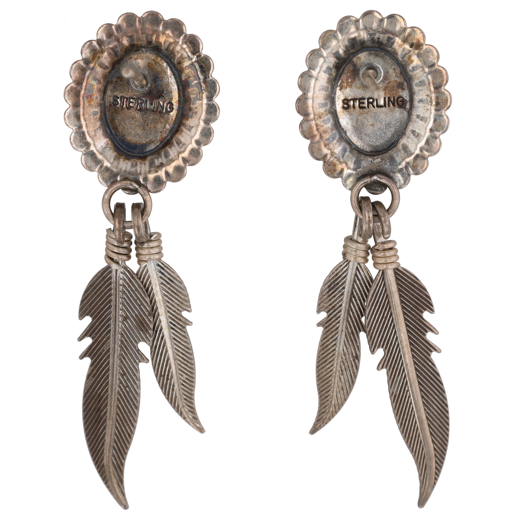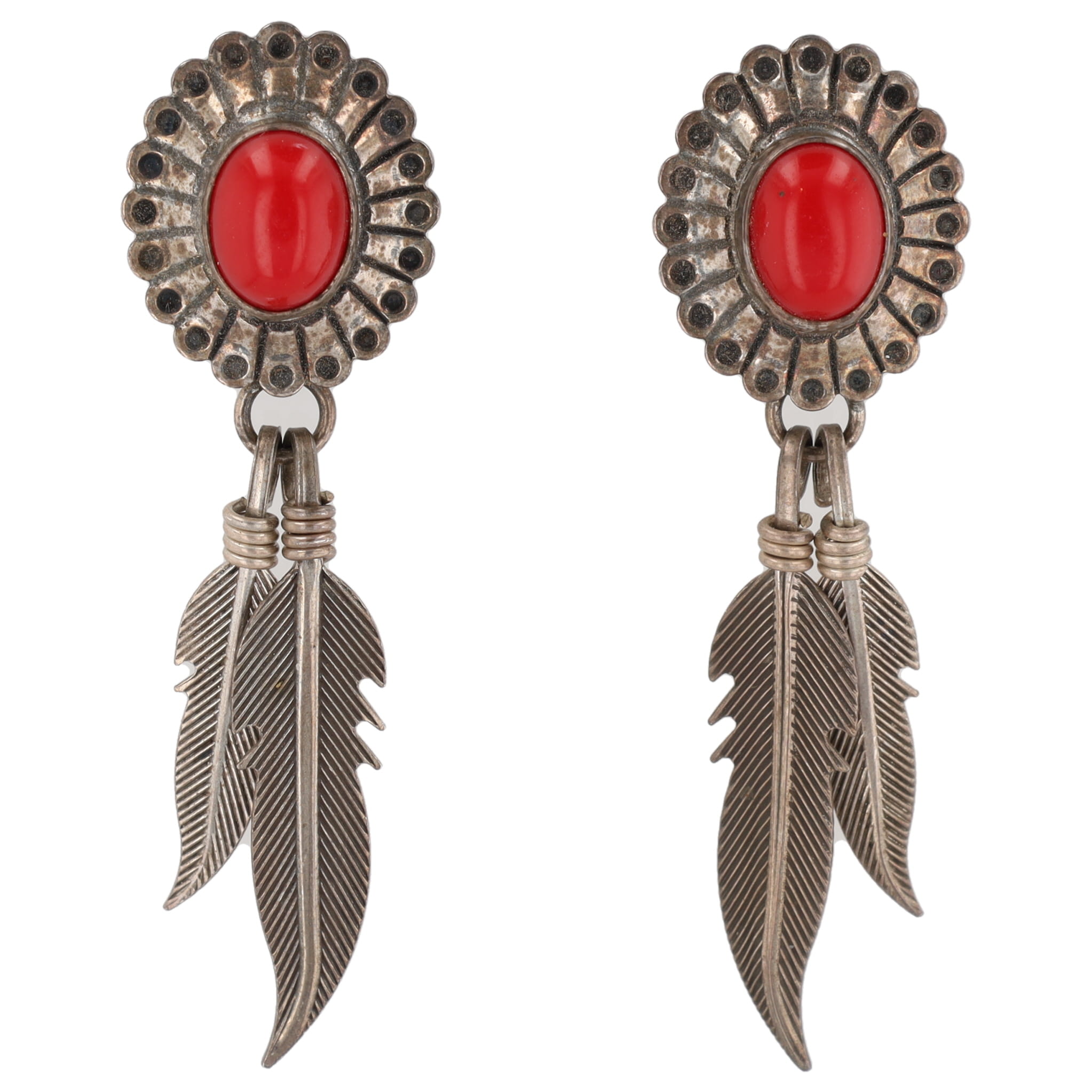 Vintage Navajo Coral Sterling Concho Feather Dangle Earrings 6g