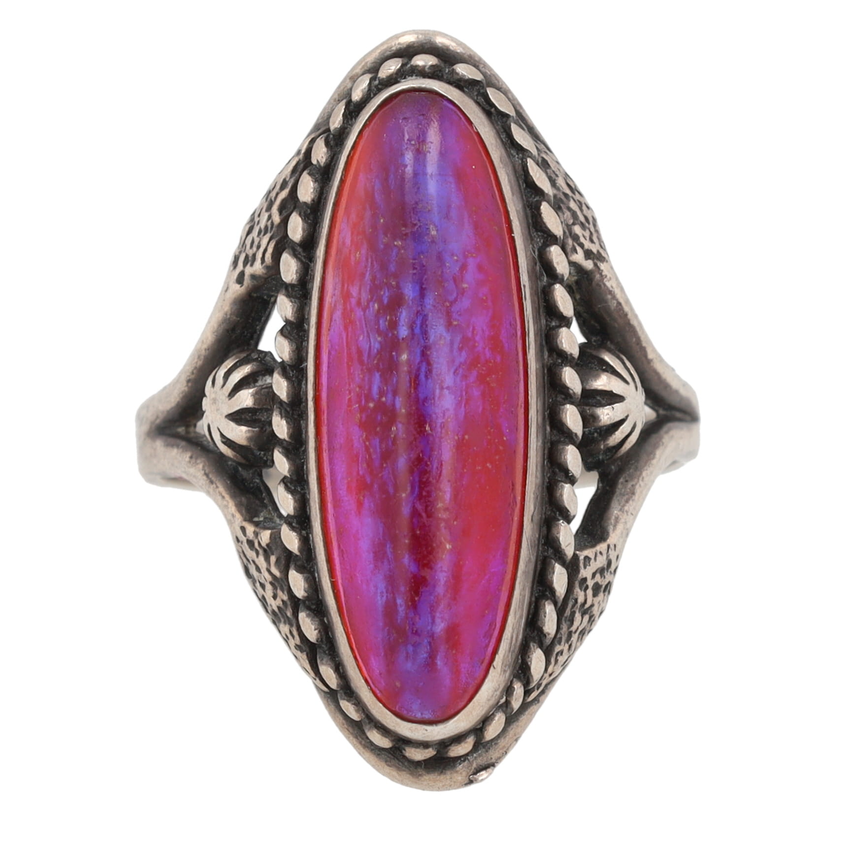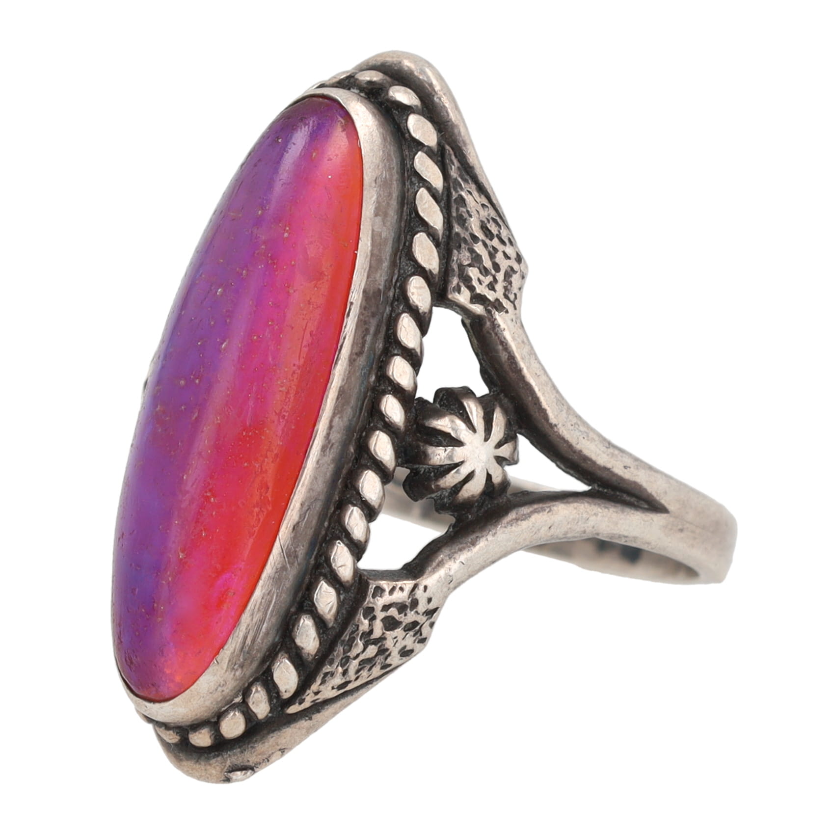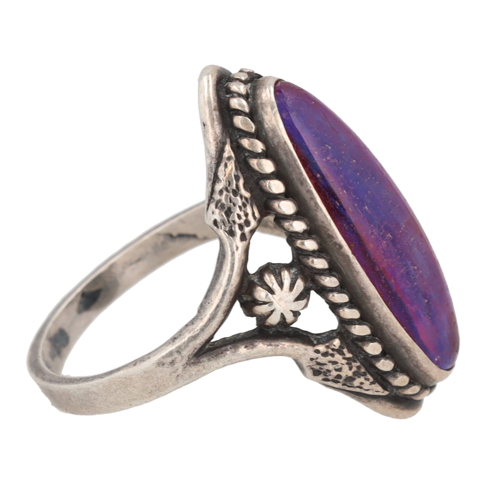 Vintage Navajo Foiled Purple Glass Sterling Ring Sz. 8, 8g