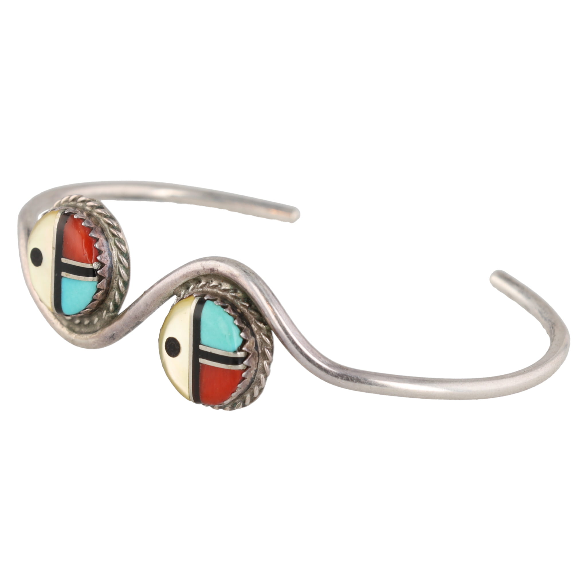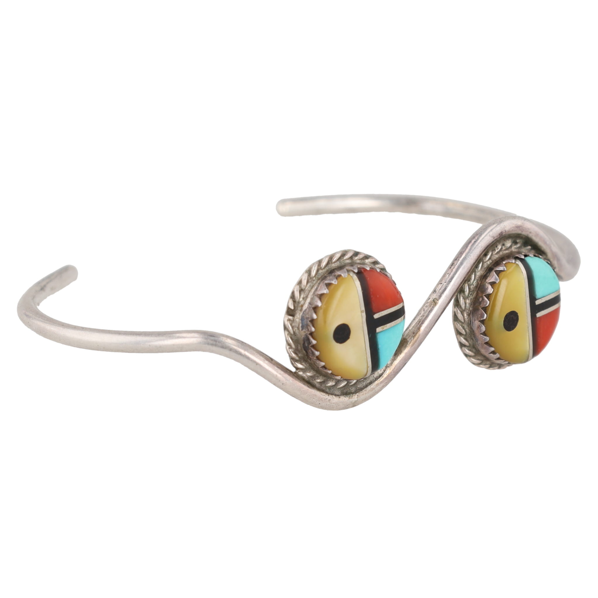 Vintage Zuni Sunface Inlay Cuff Bracelet 7.5g