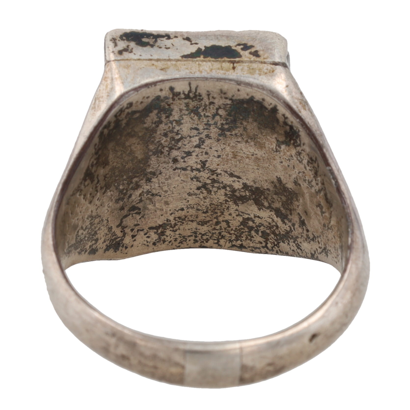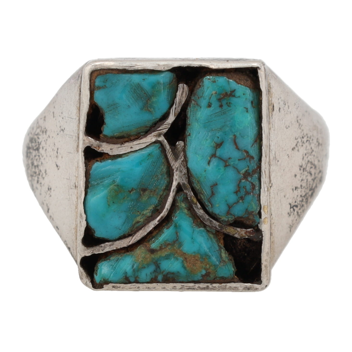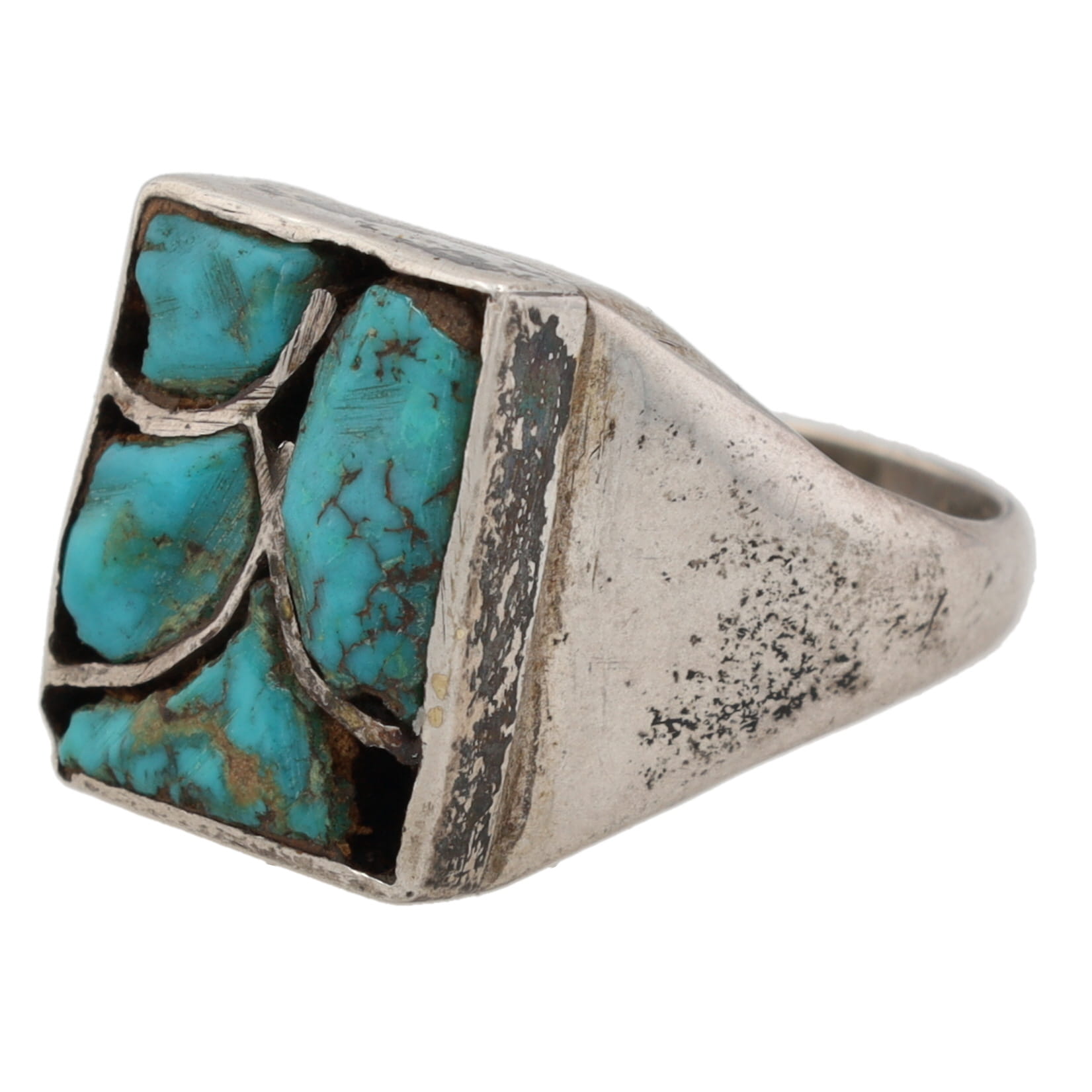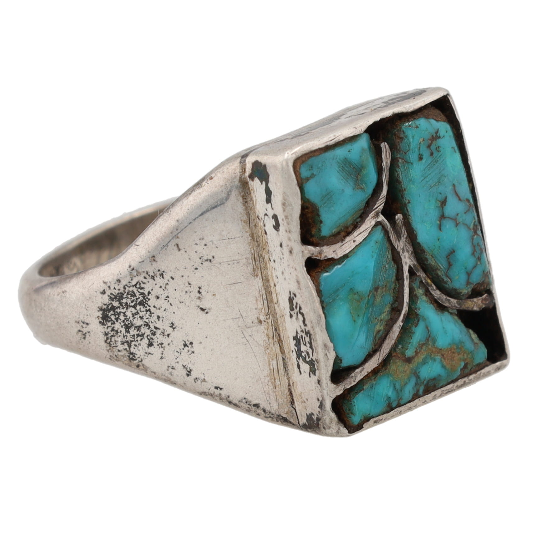 Vintage Navajo Chunk Turquoise Sterling Fish Scale Inlay Ring Sz. 9.75, 11.5g
