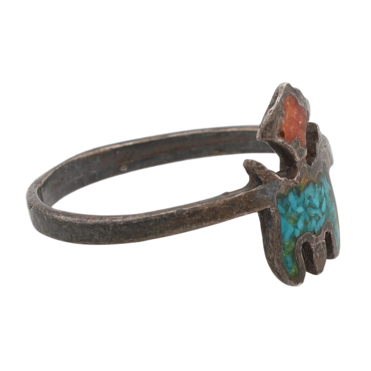 Vintage Navajo Crushed Turquoise Coral Sterling Thunderbird Ring Sz. 5.25, 1g