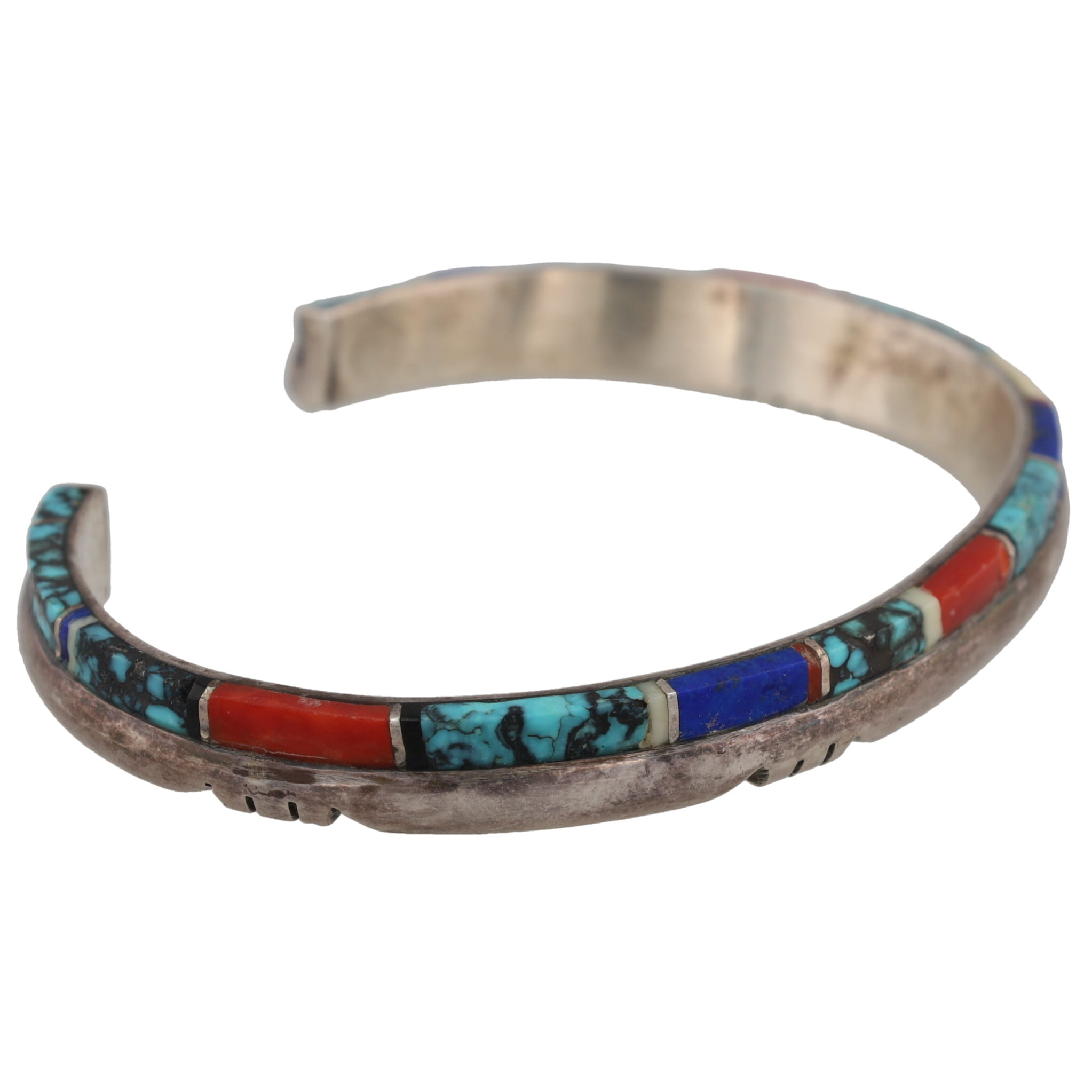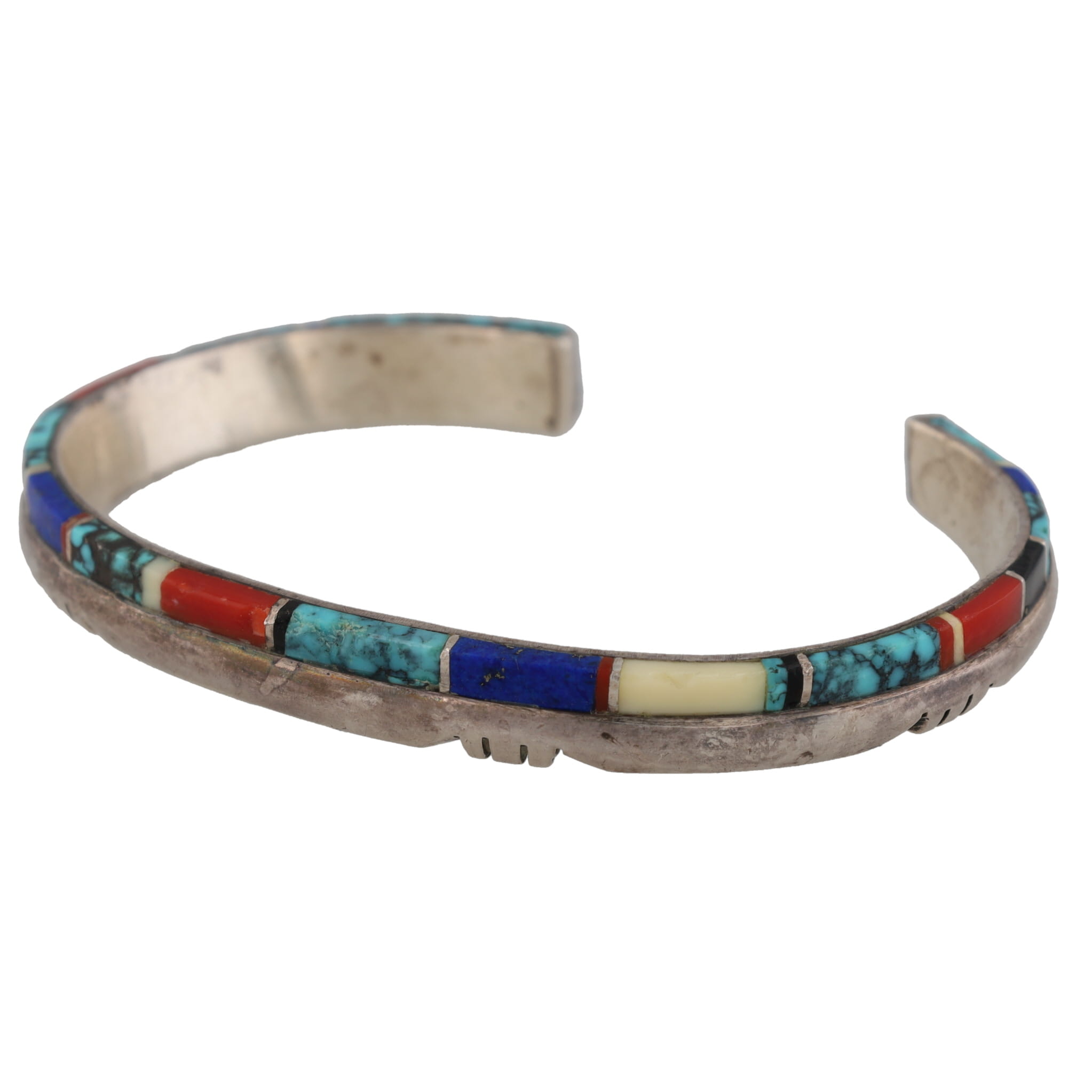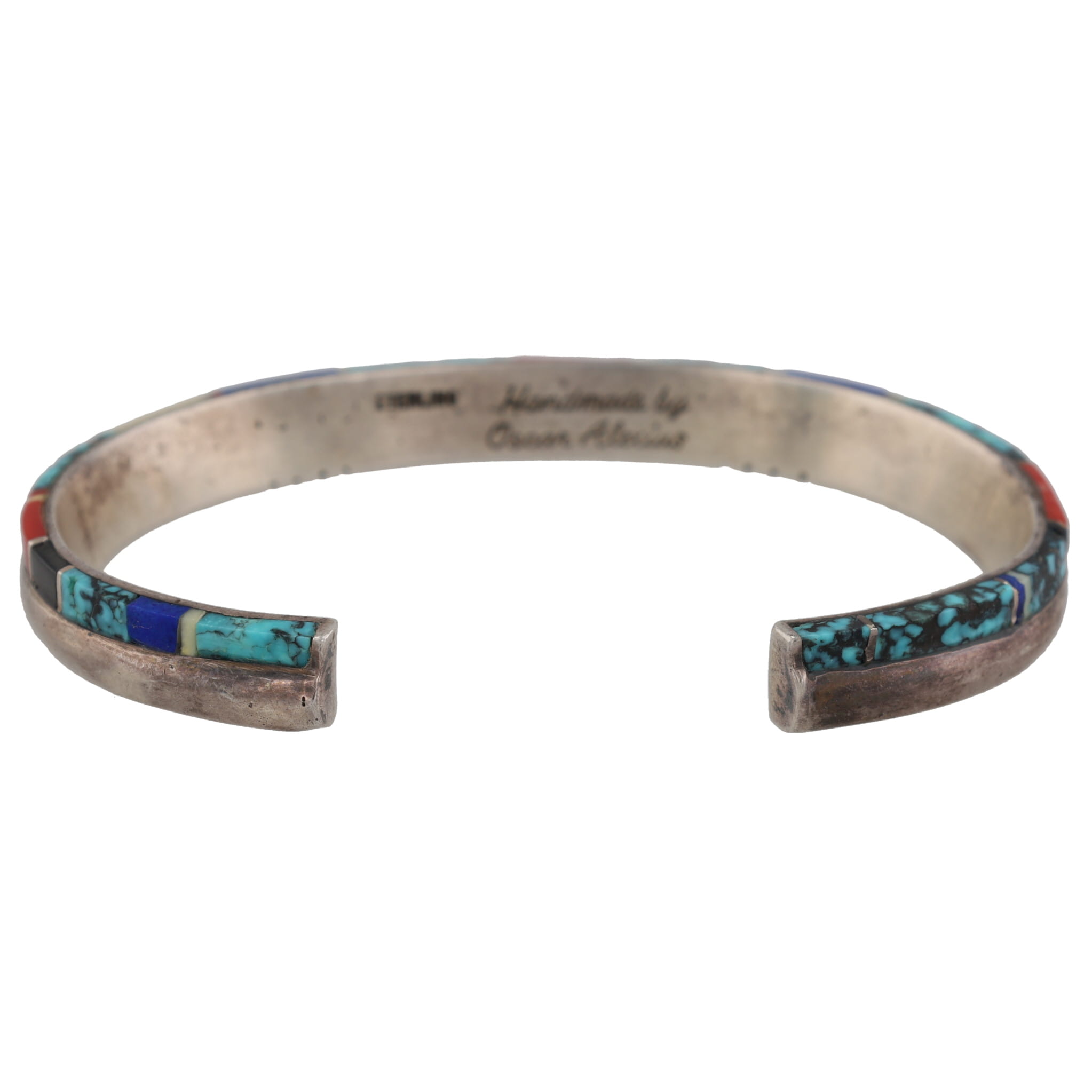 Handmade by Oscar Alexius Navajo Sterling Multi Stone Inlay Cuff Bracelet 20g