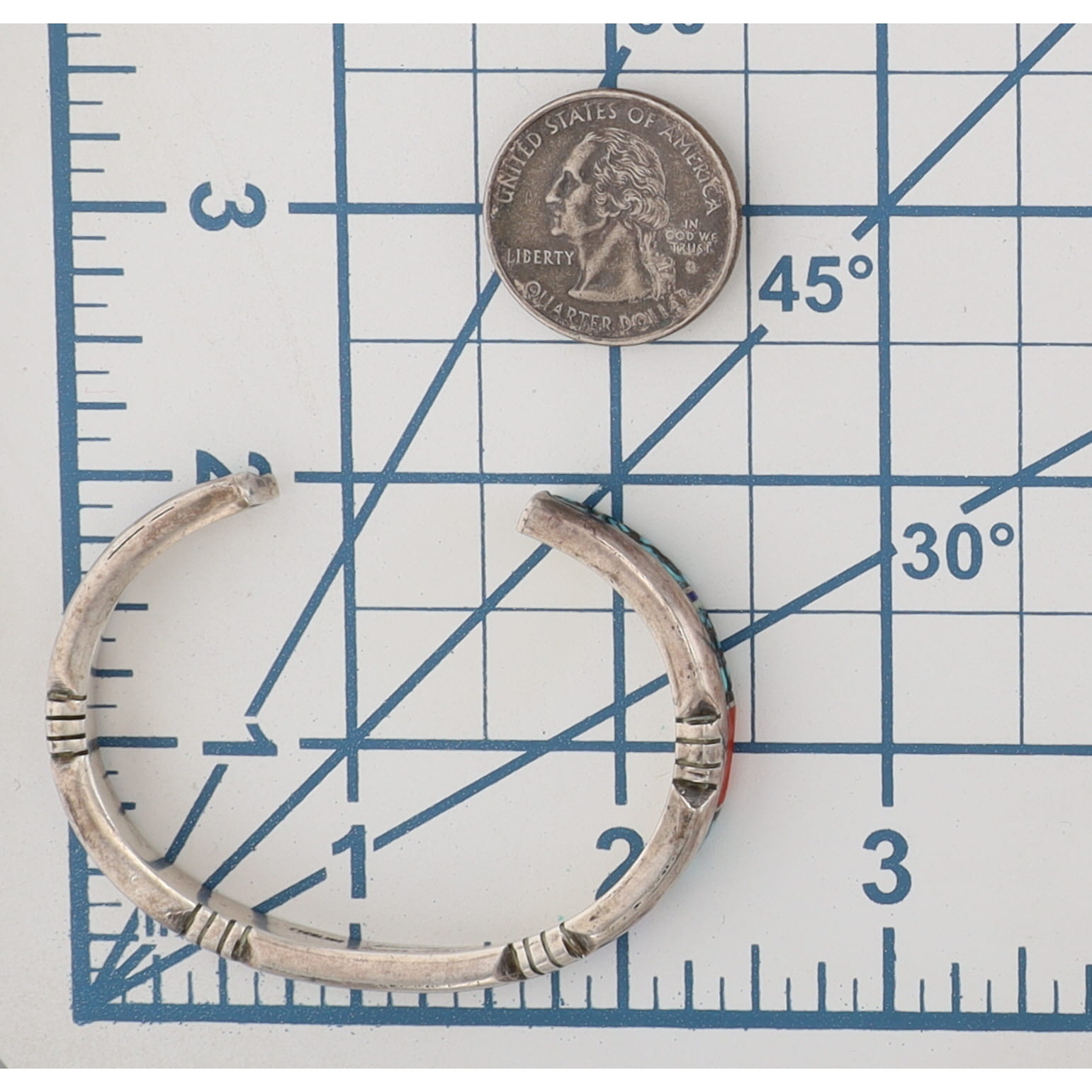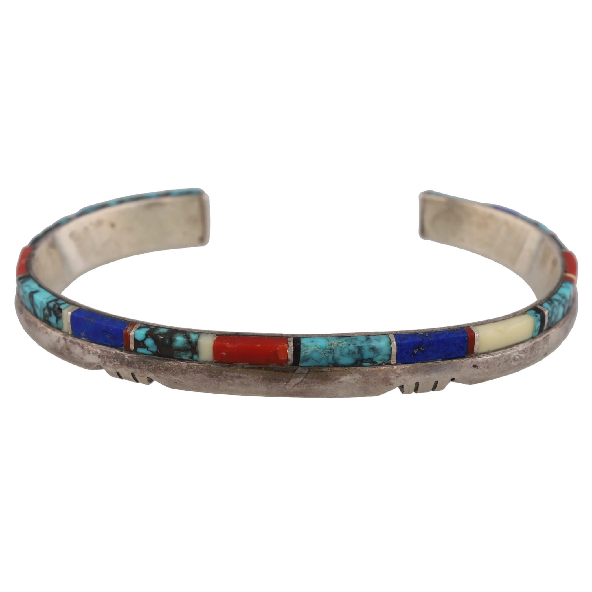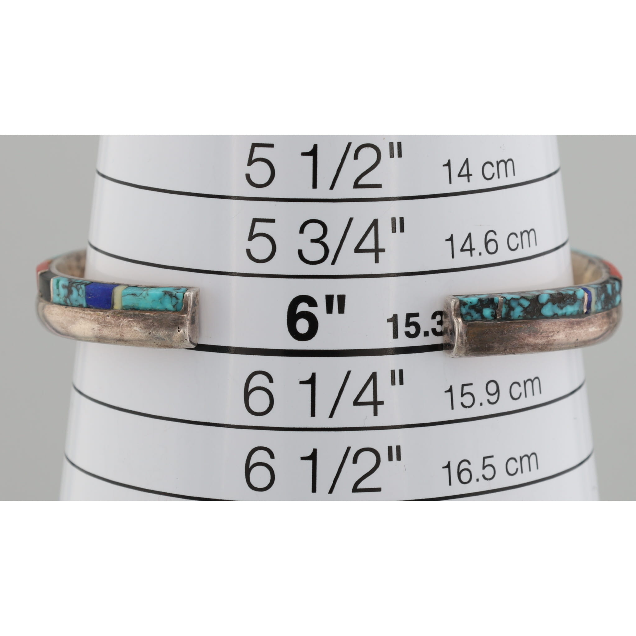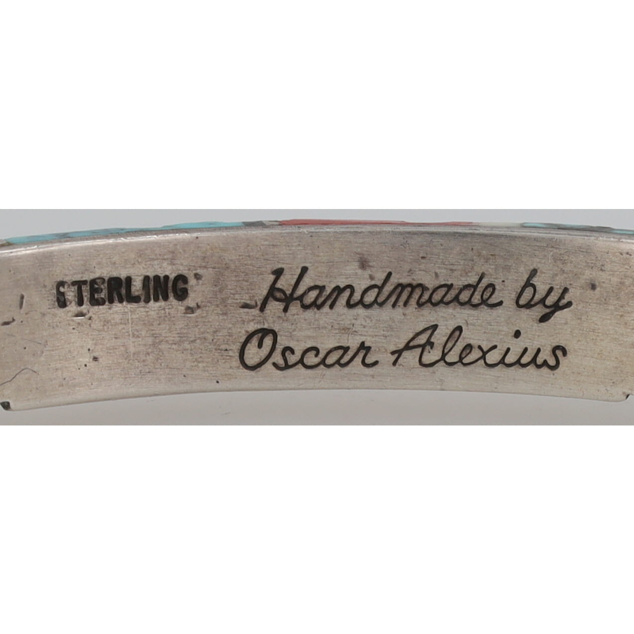 Handmade by Oscar Alexius Navajo Sterling Multi Stone Inlay Cuff Bracelet 20g