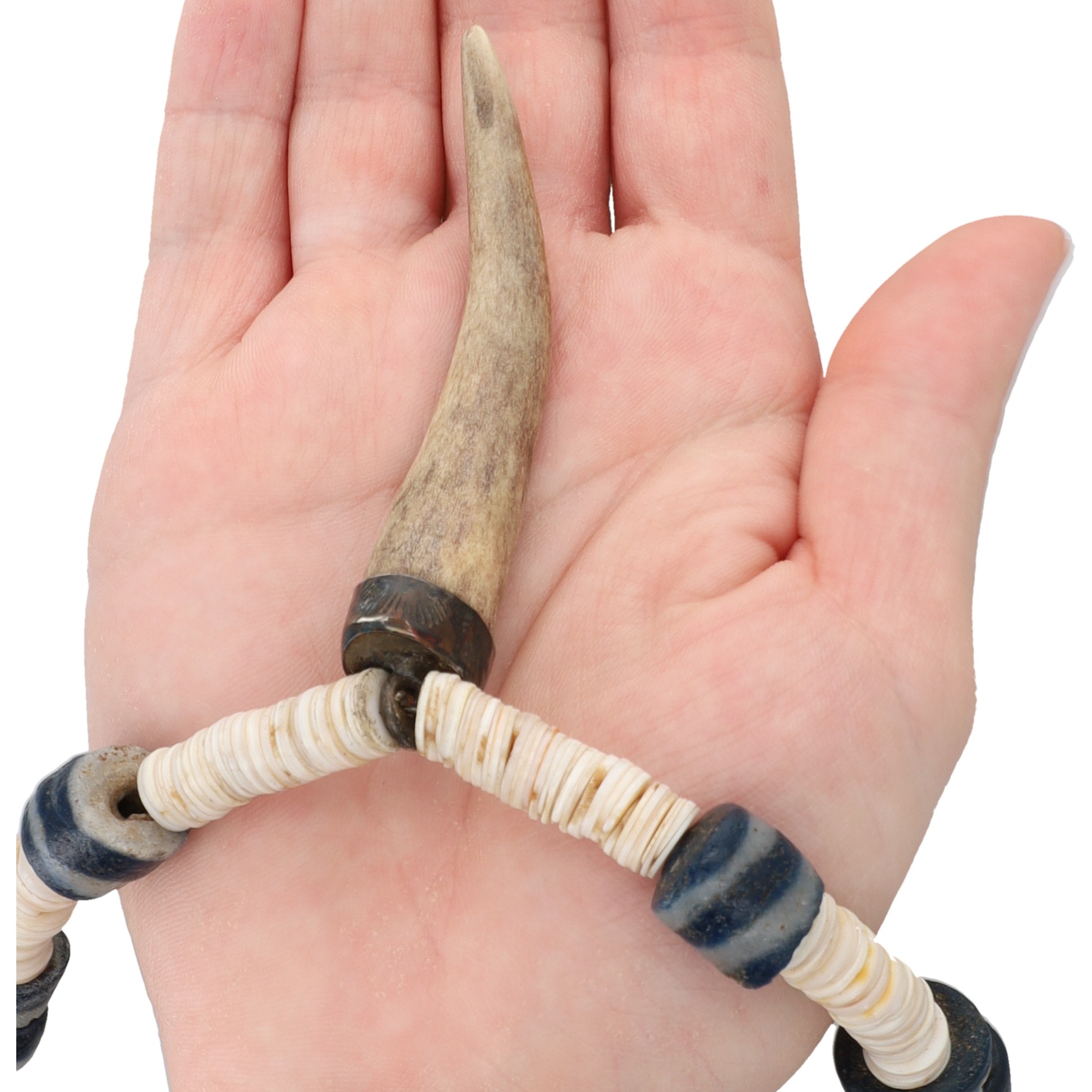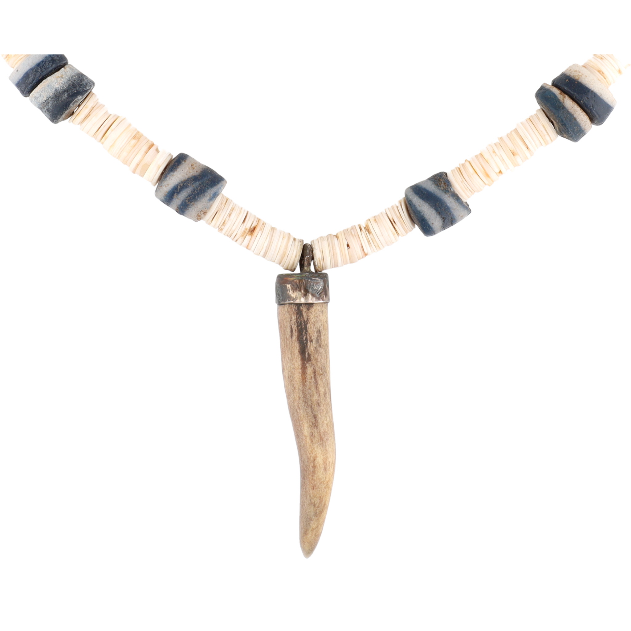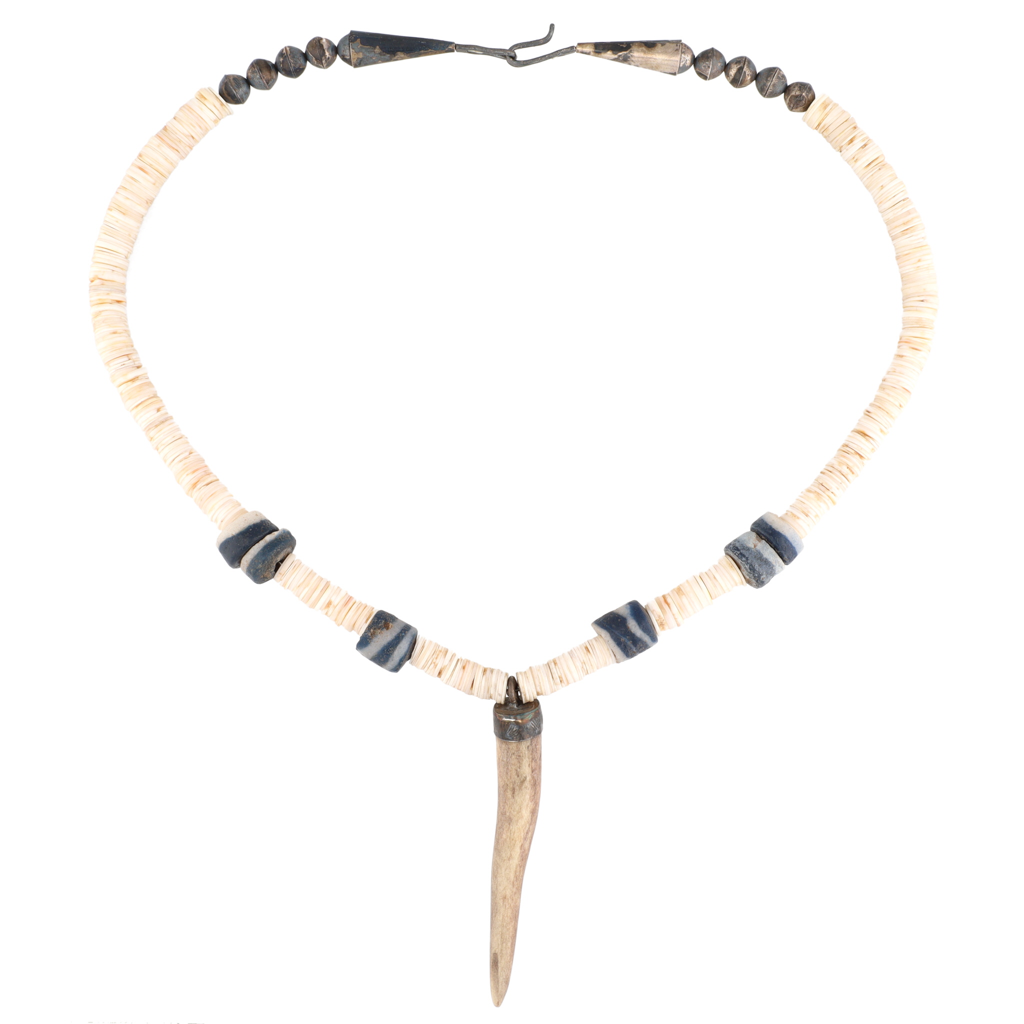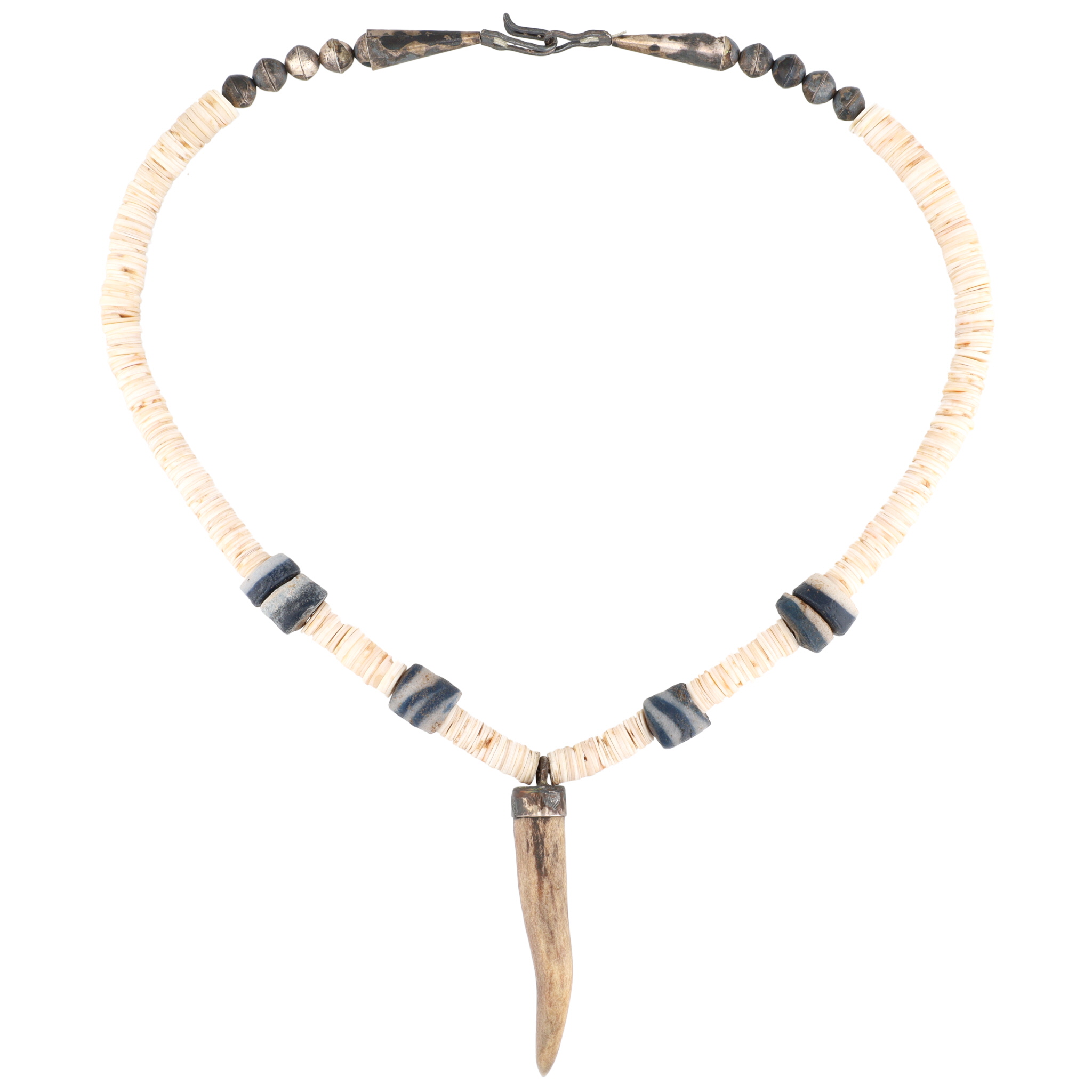 Old Navajo Sterling Shell Stone Elk Antler Heishi Necklace 85g