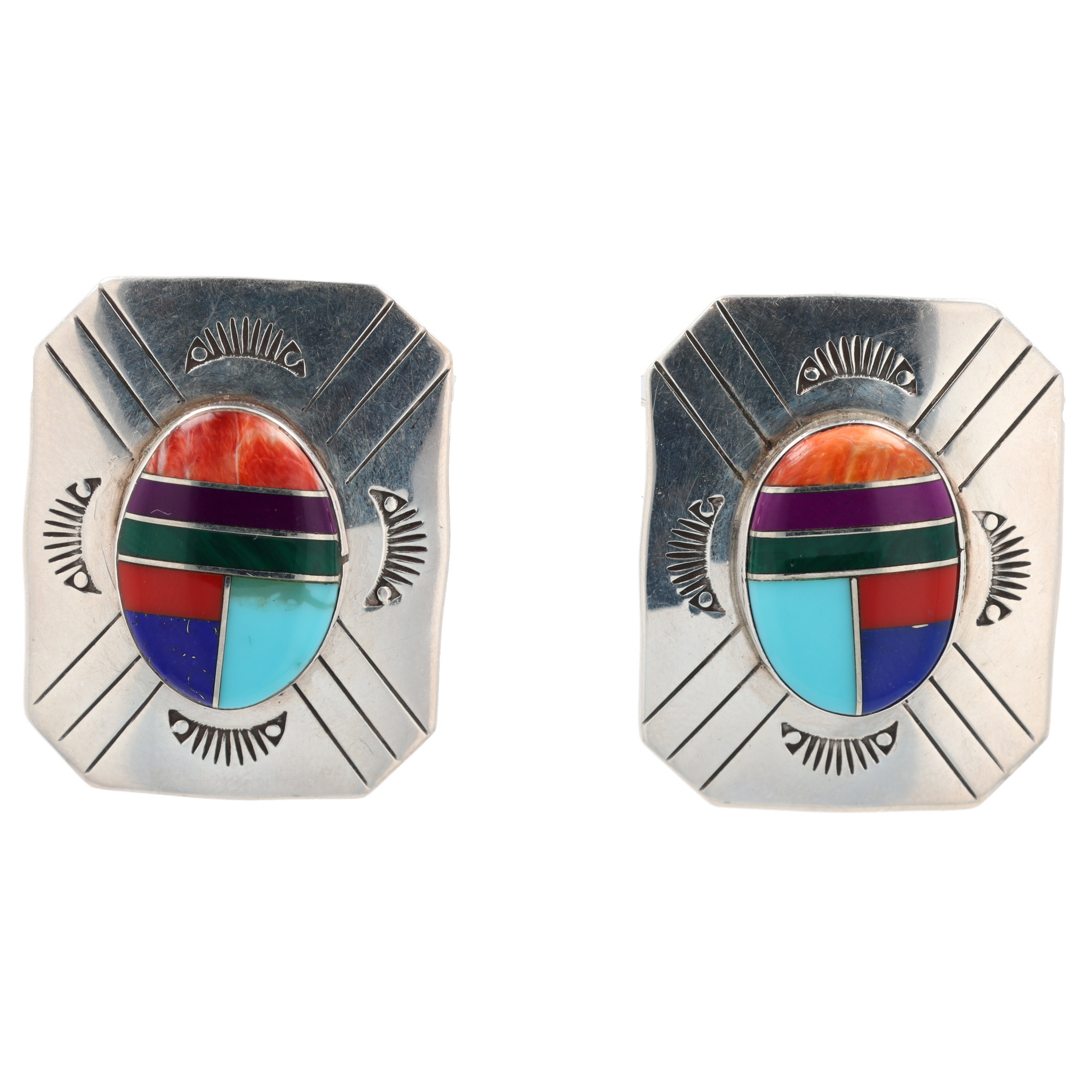 Navajo Sterling Multi Stone Inlay Earrings 13g