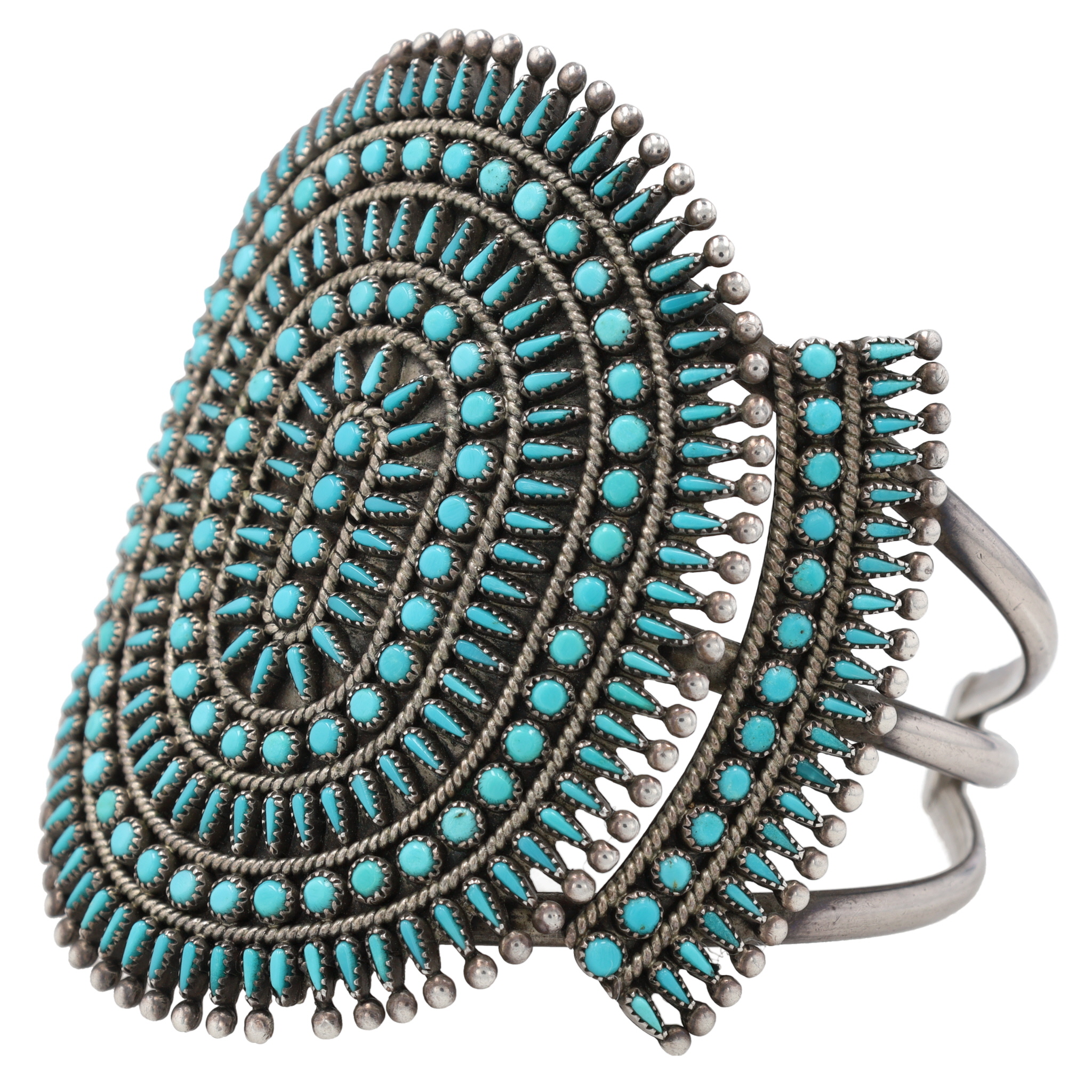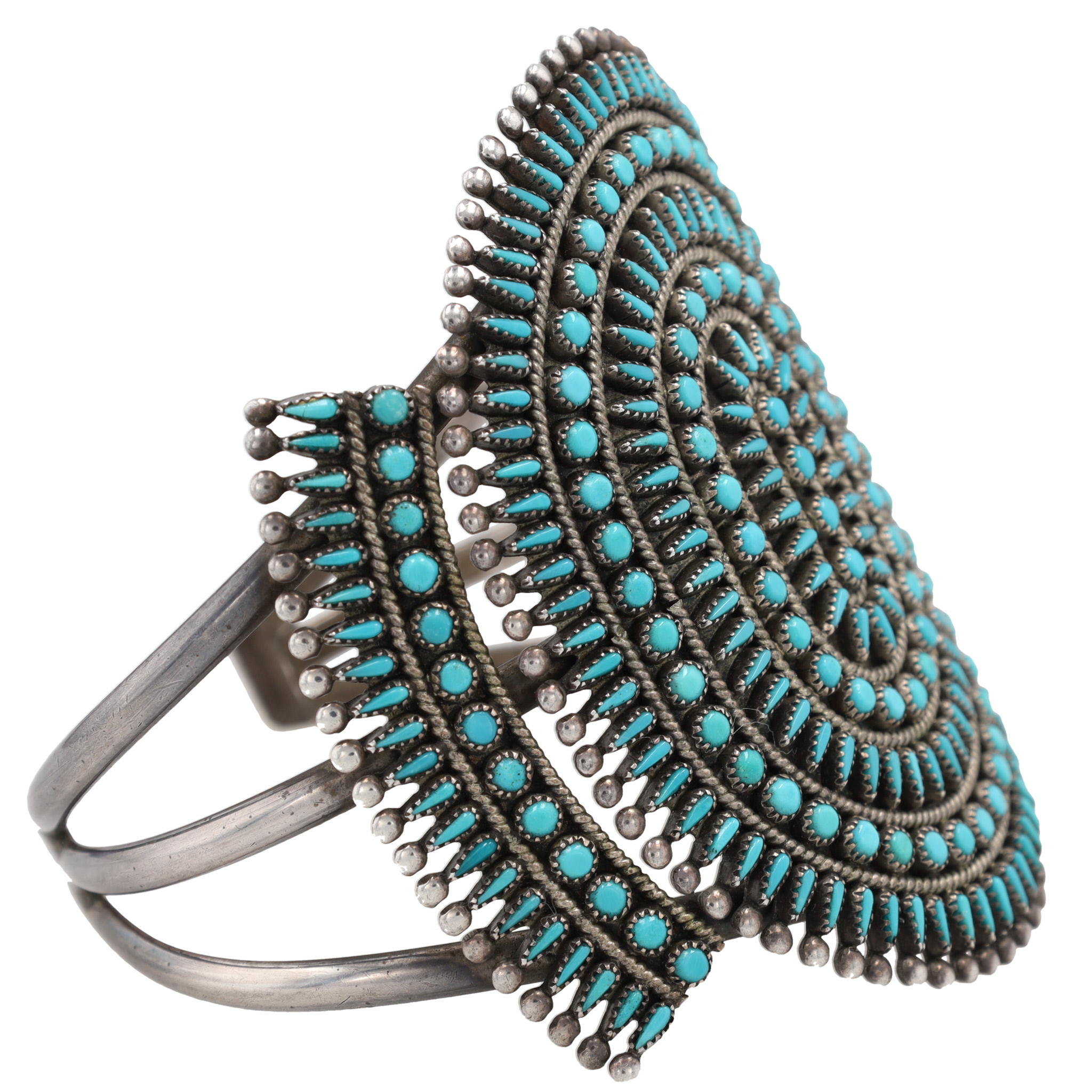 John Quam Zuni Sterling Turquoise Cuff Bracelet, As Is 42g