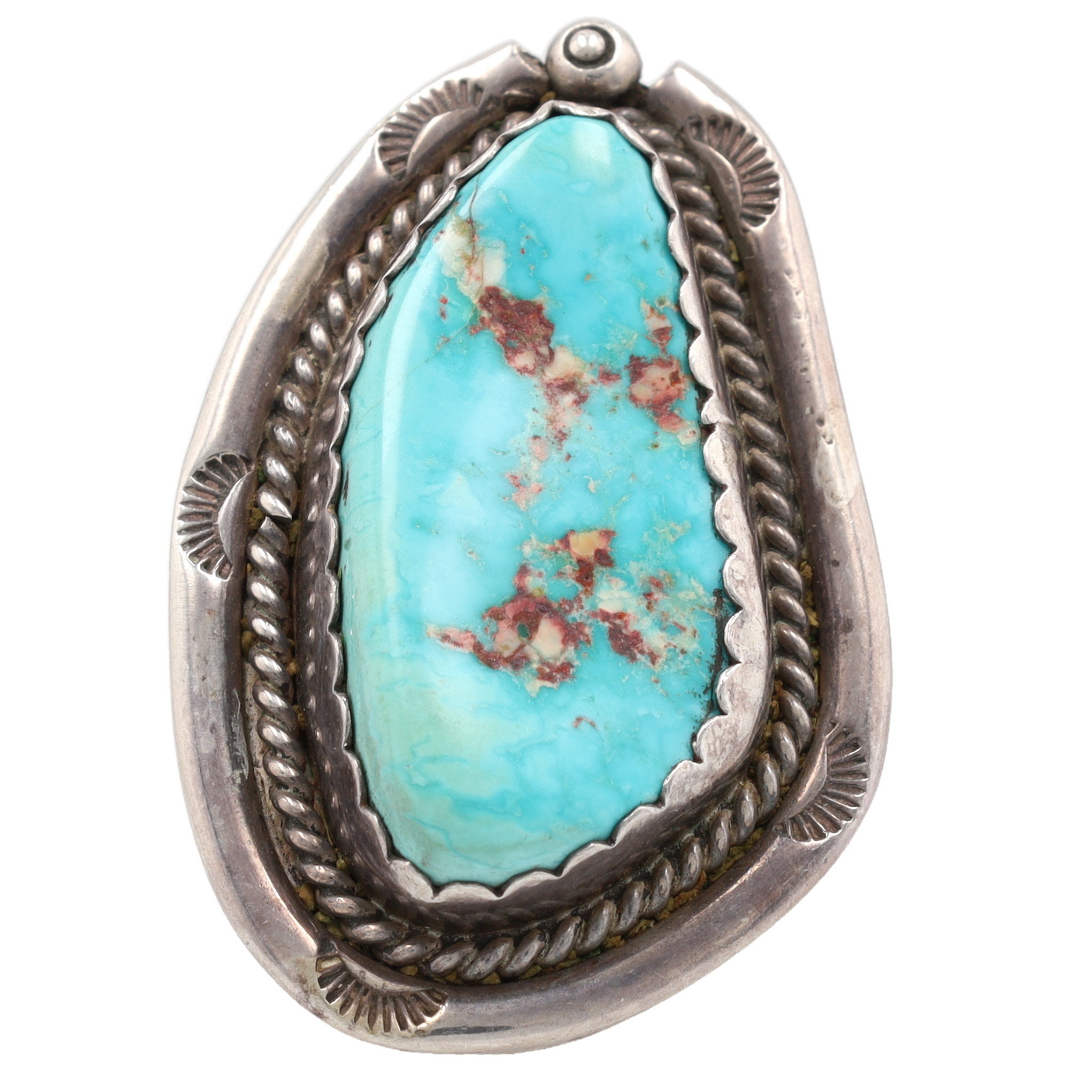 Vintage Navajo Sterling Turquoise Ring Sz. 8.25, 13g