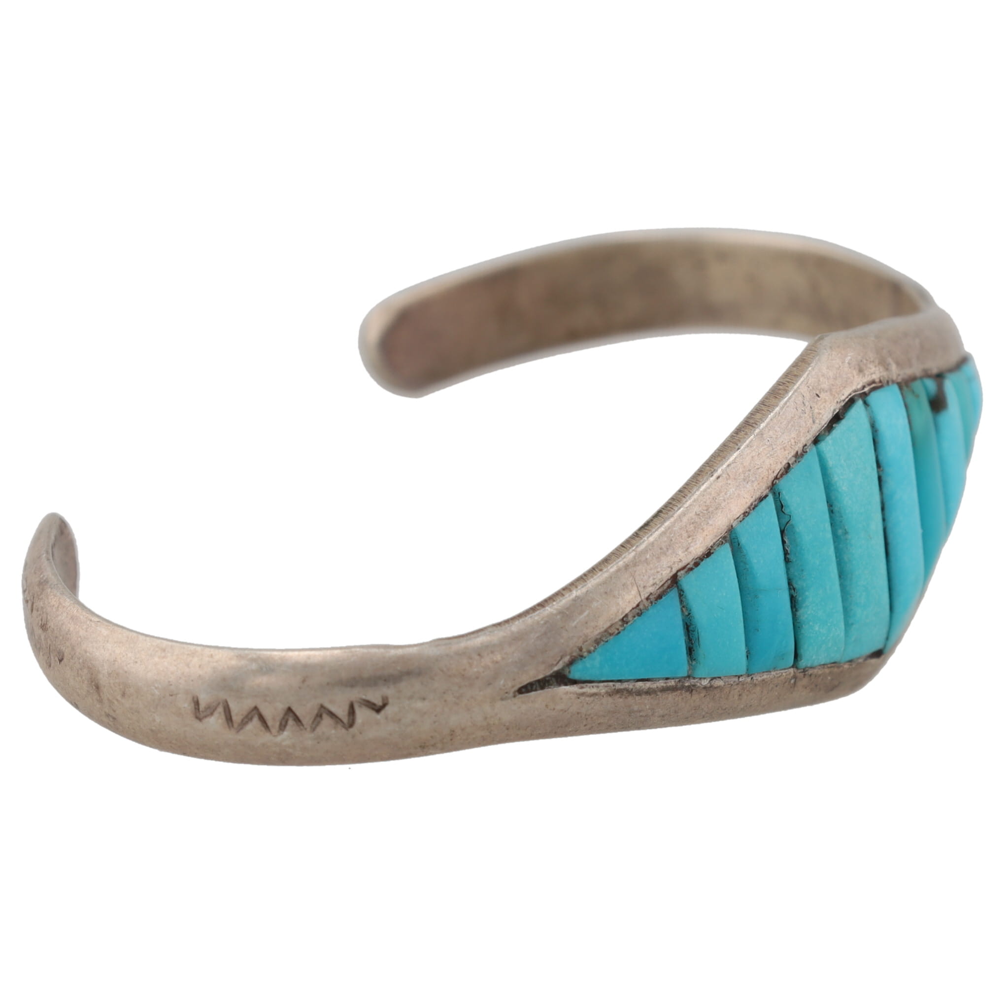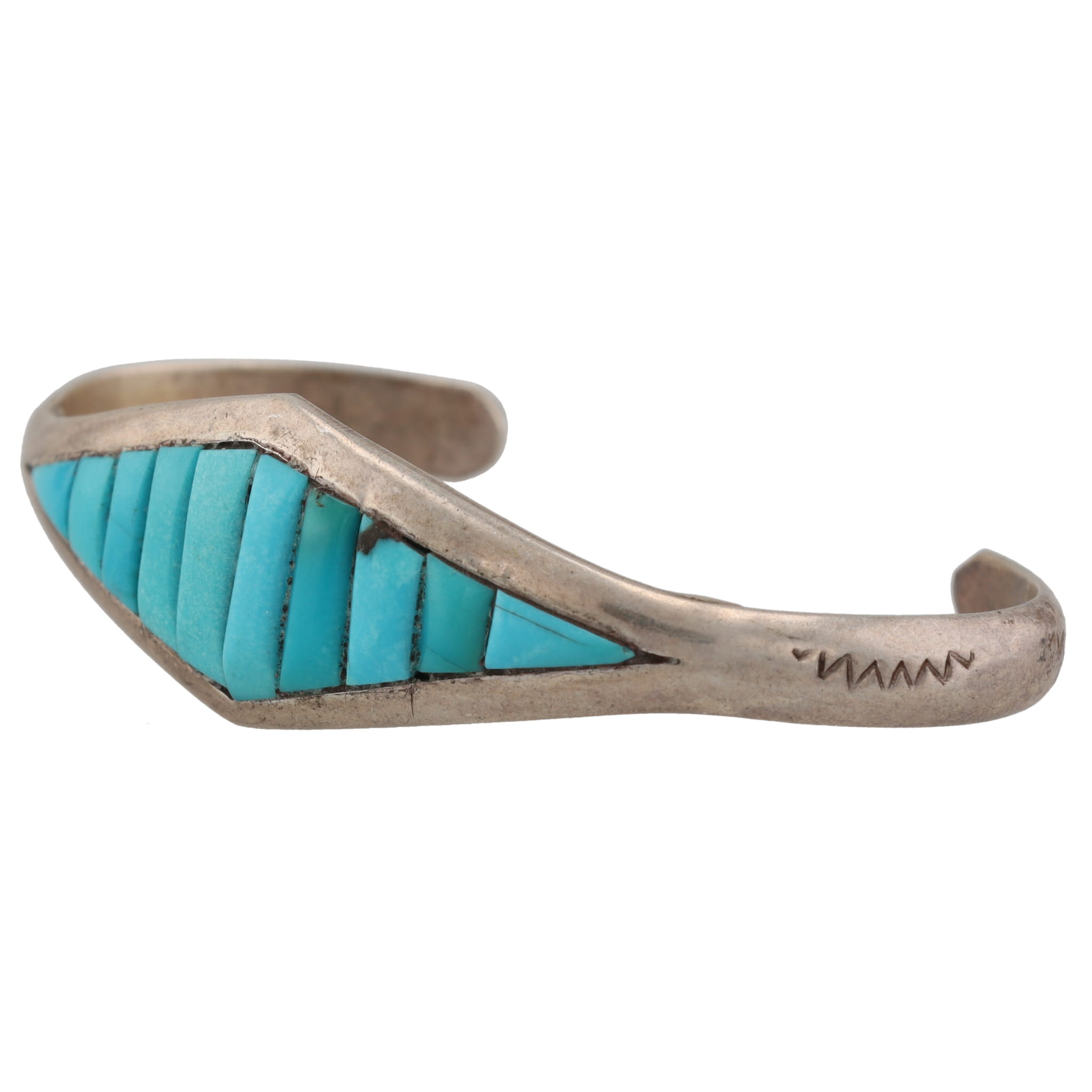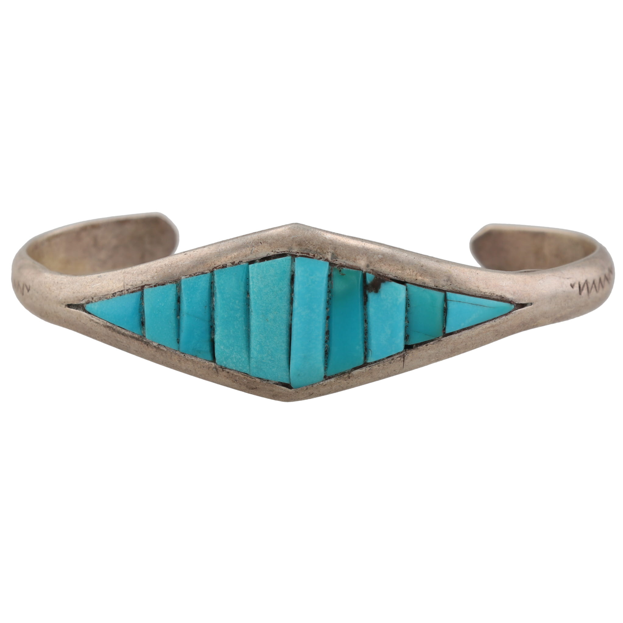 Vintage Navajo Sterling Cobblestone Turquoise Inlay Cuff Bracelet