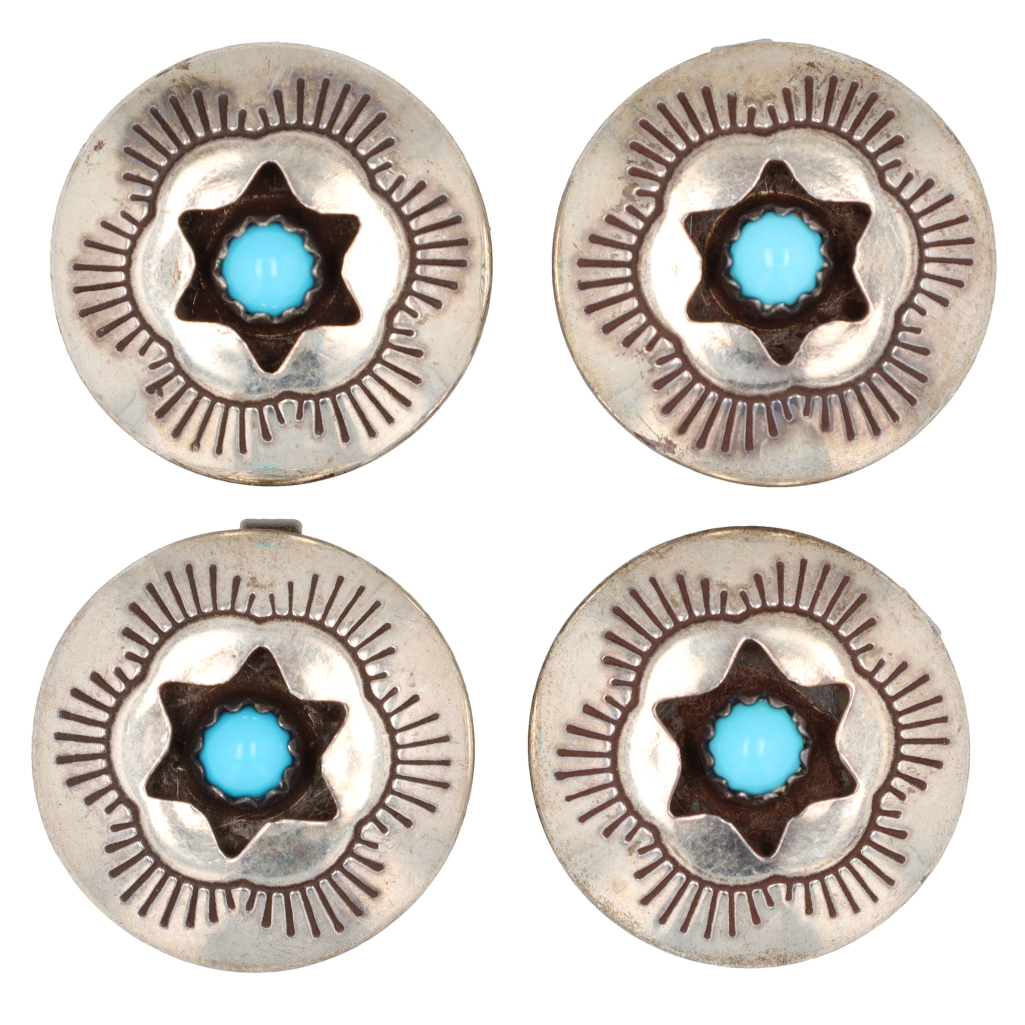 Navajo Sterling Snake Eye Turquoise Shadow Box Button Covers 12.5g