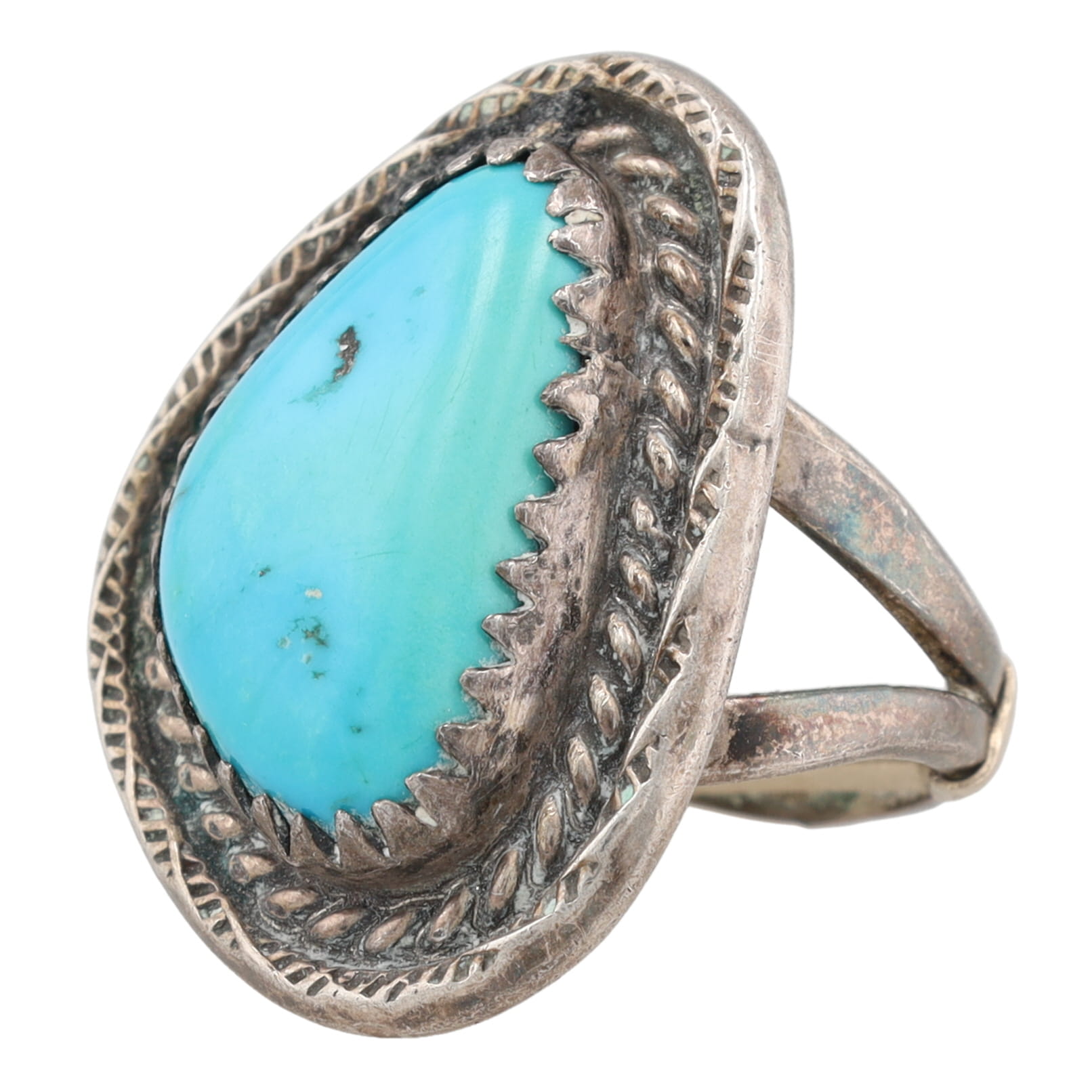 Vintage Navajo Sterling Turquoise Ring Sz. 6.75