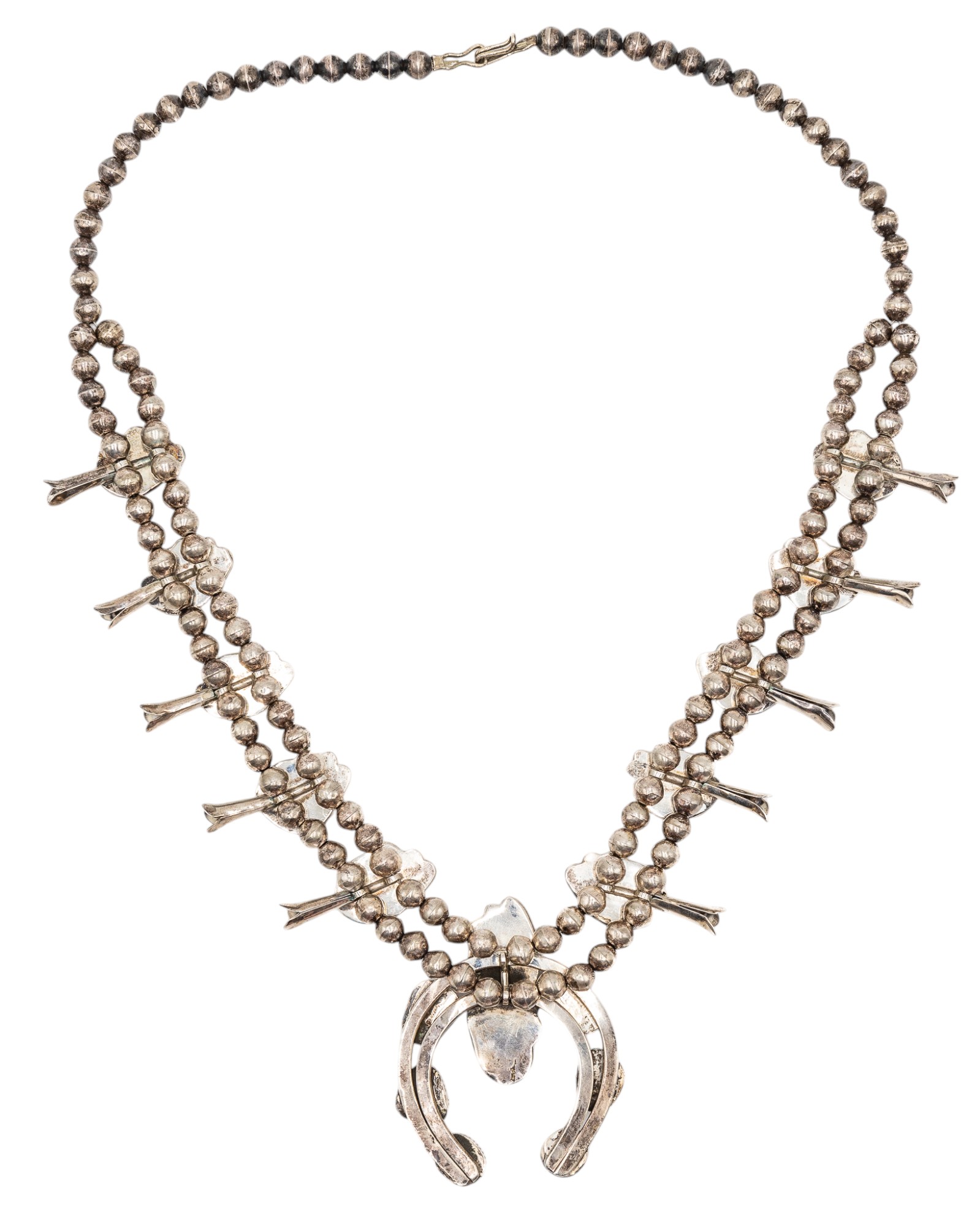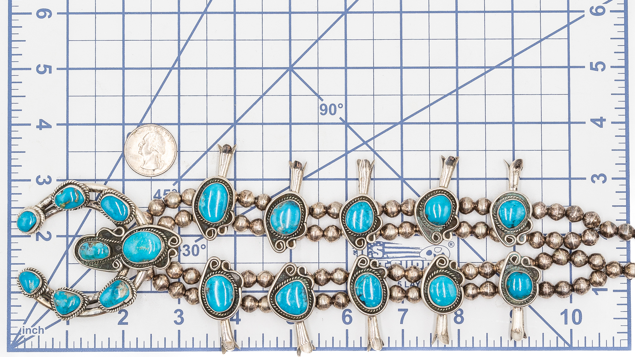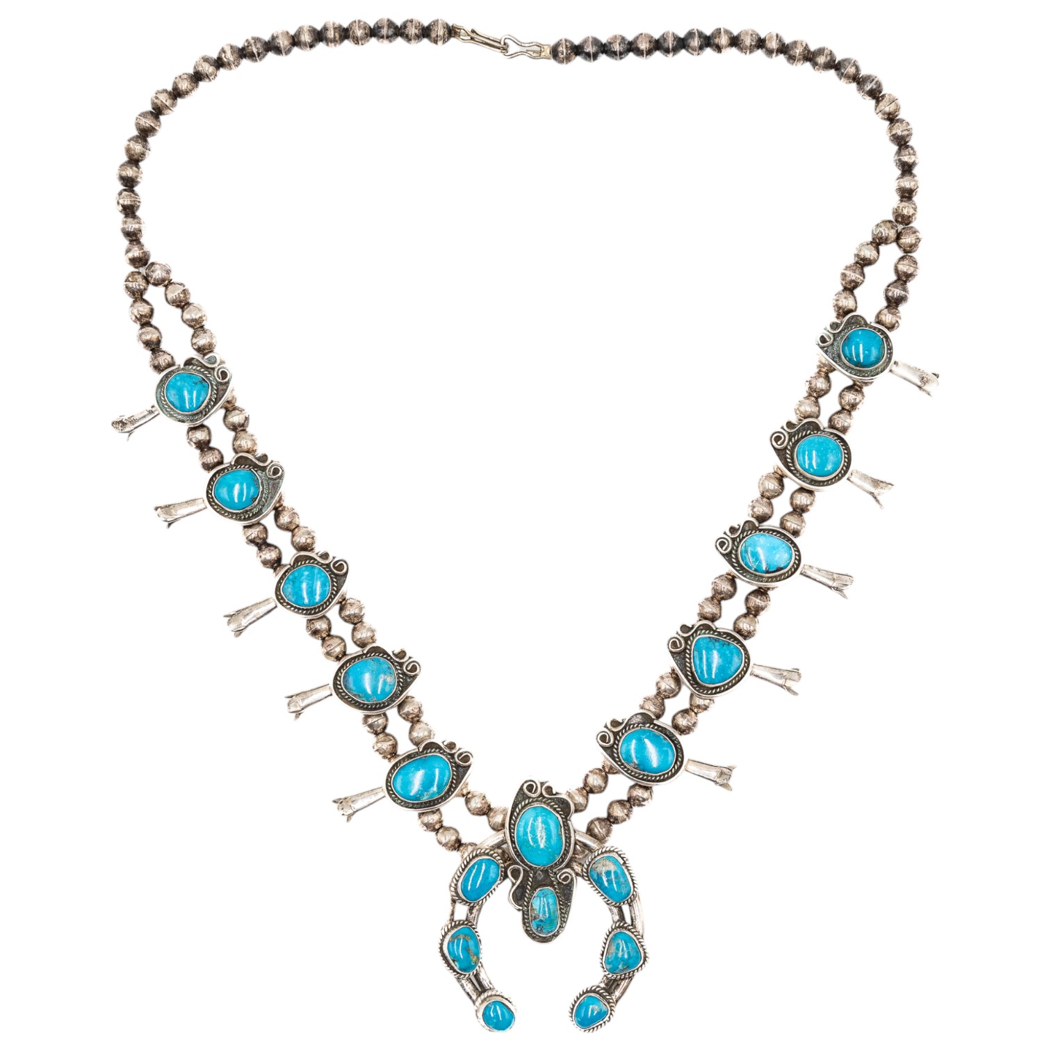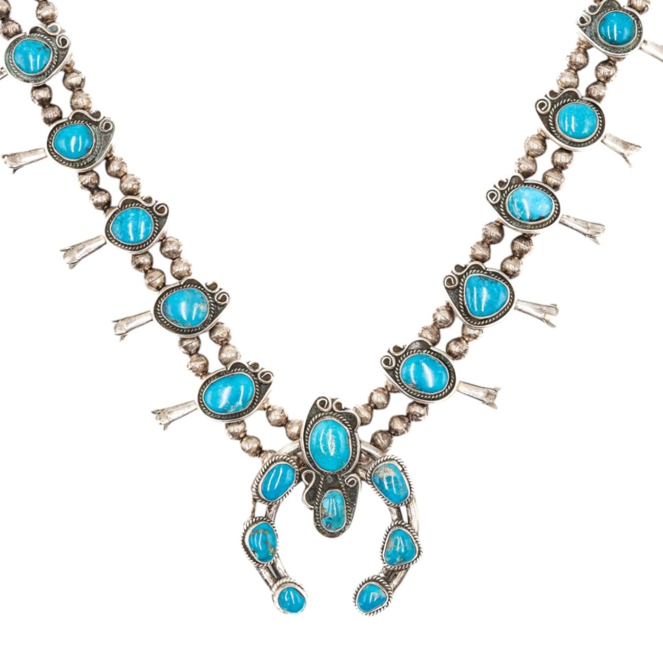 Vintage Navajo Sterling Turquoise Squash Blossom Necklace