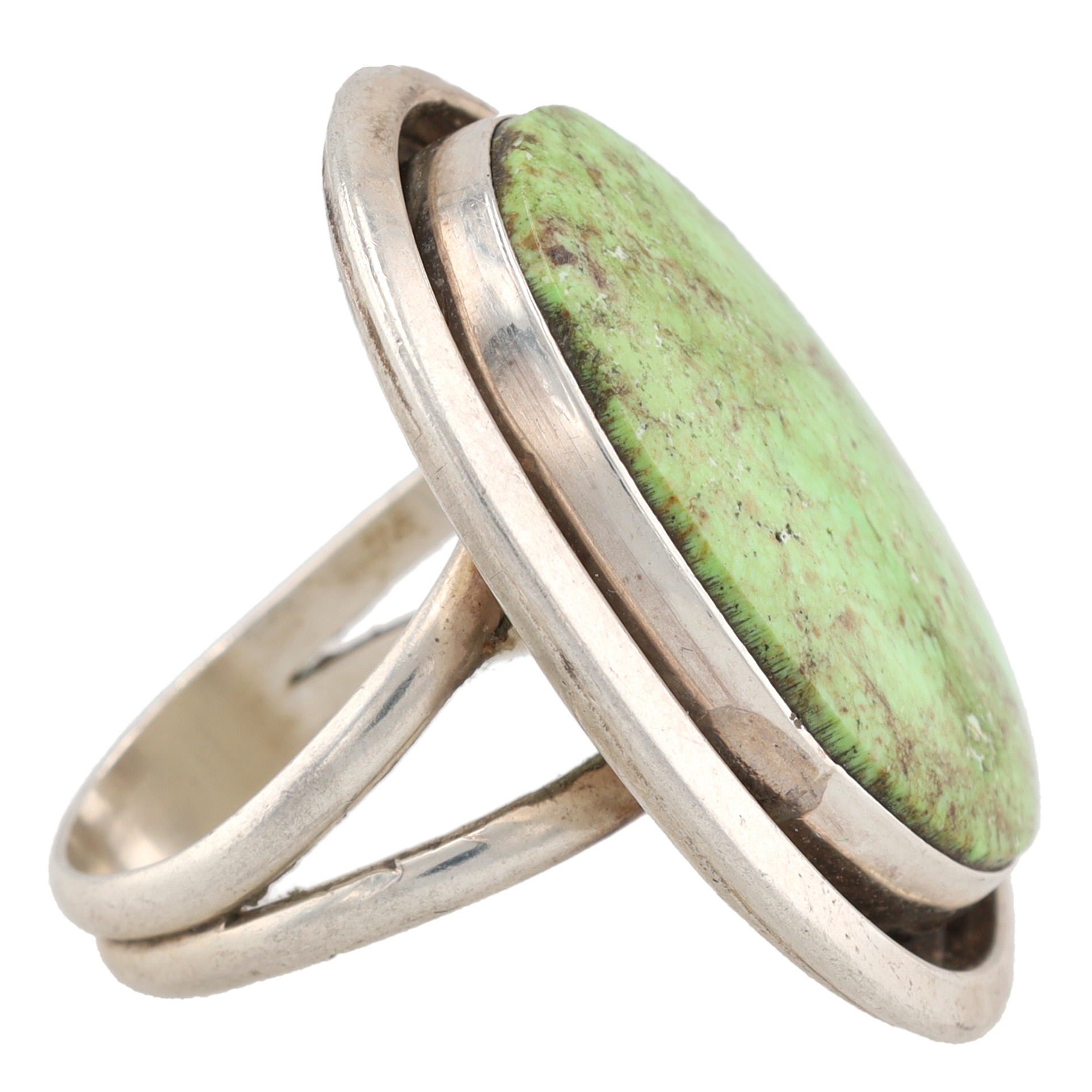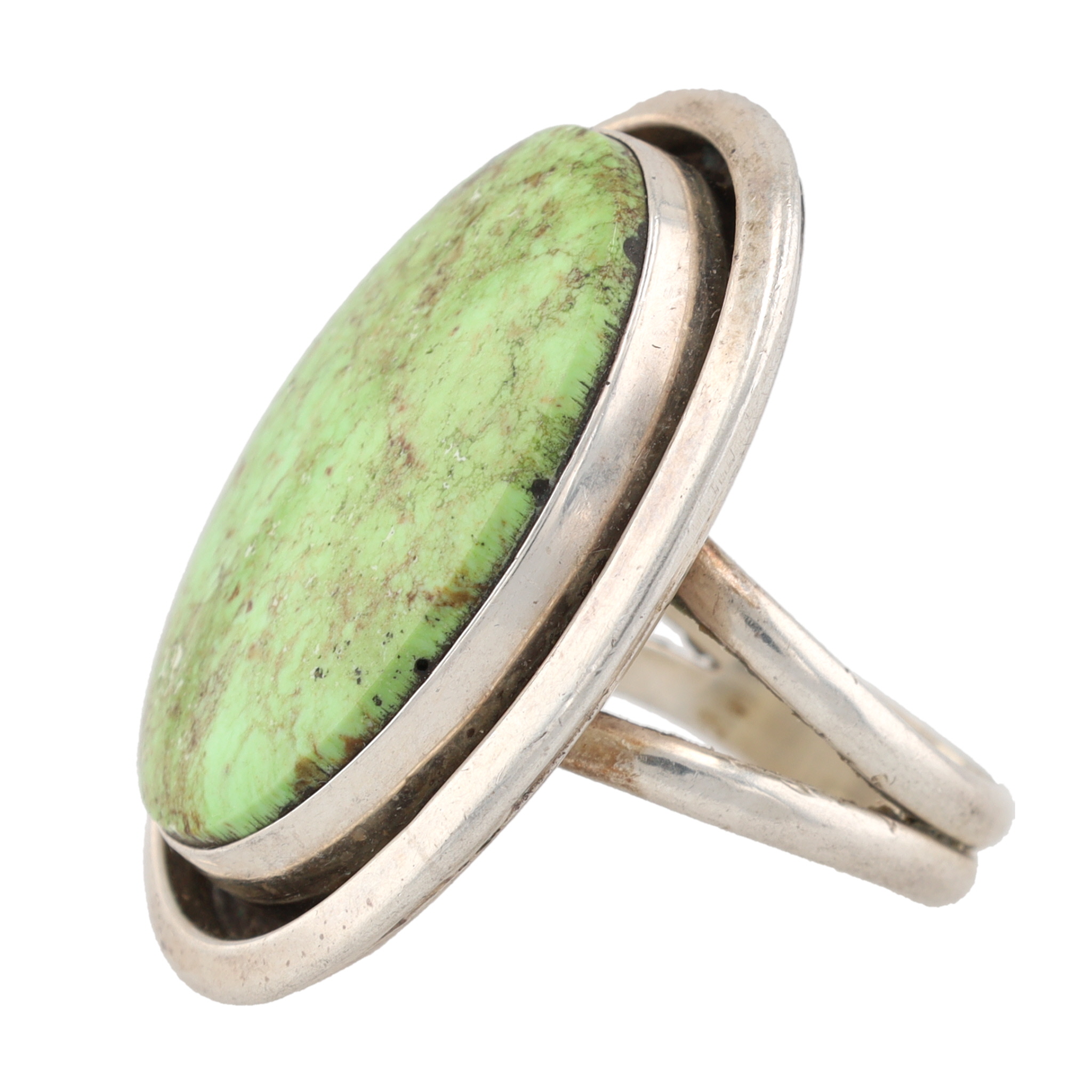 Signed Navajo Sterling Gaspeite Ring Sz. 9