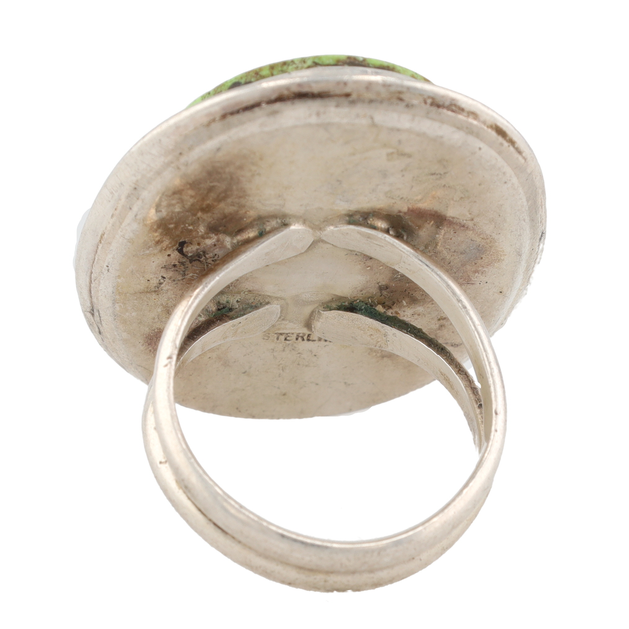 Hand Signed Sarah Navajo Sterling Gaspeite Ring Sz. 9, 18.5g