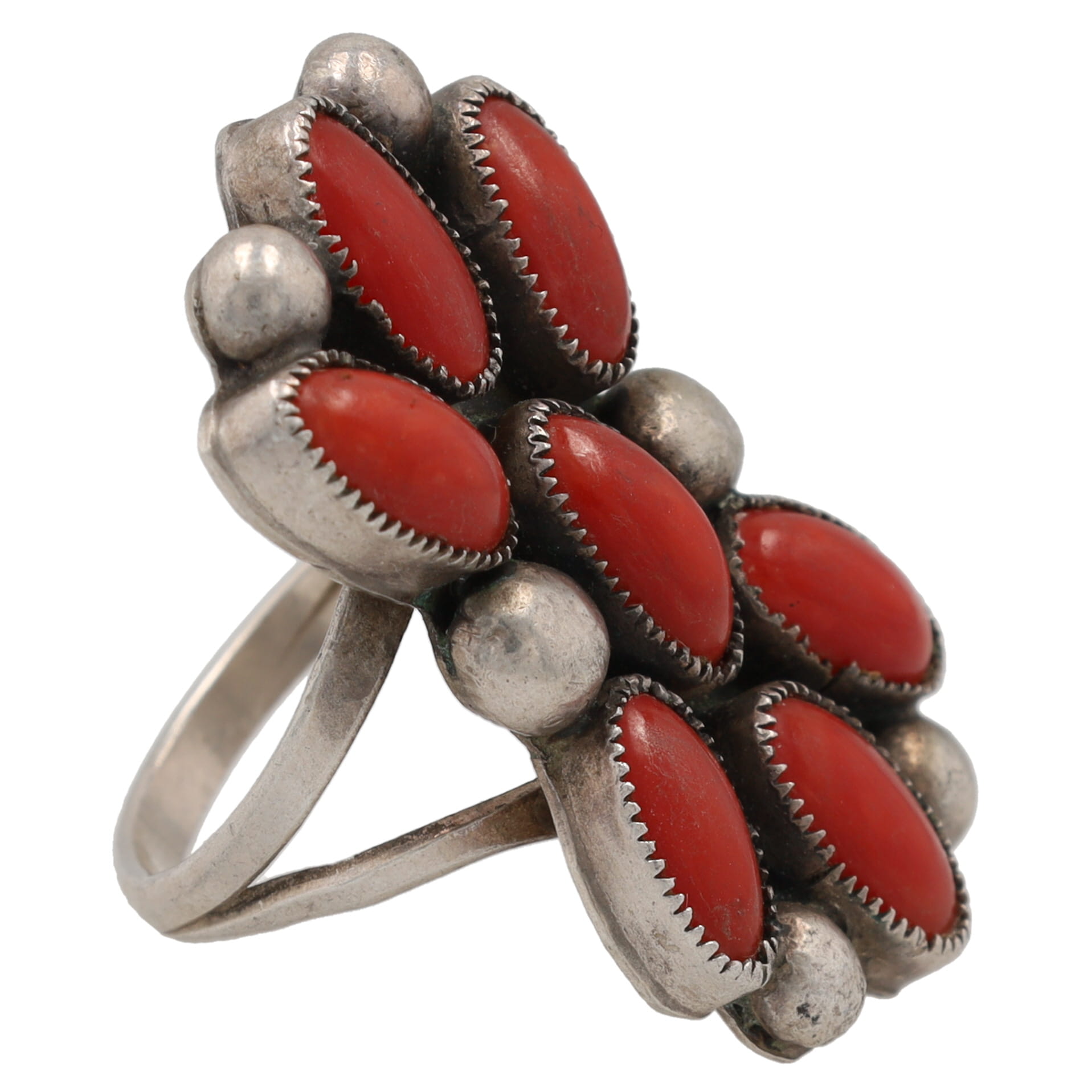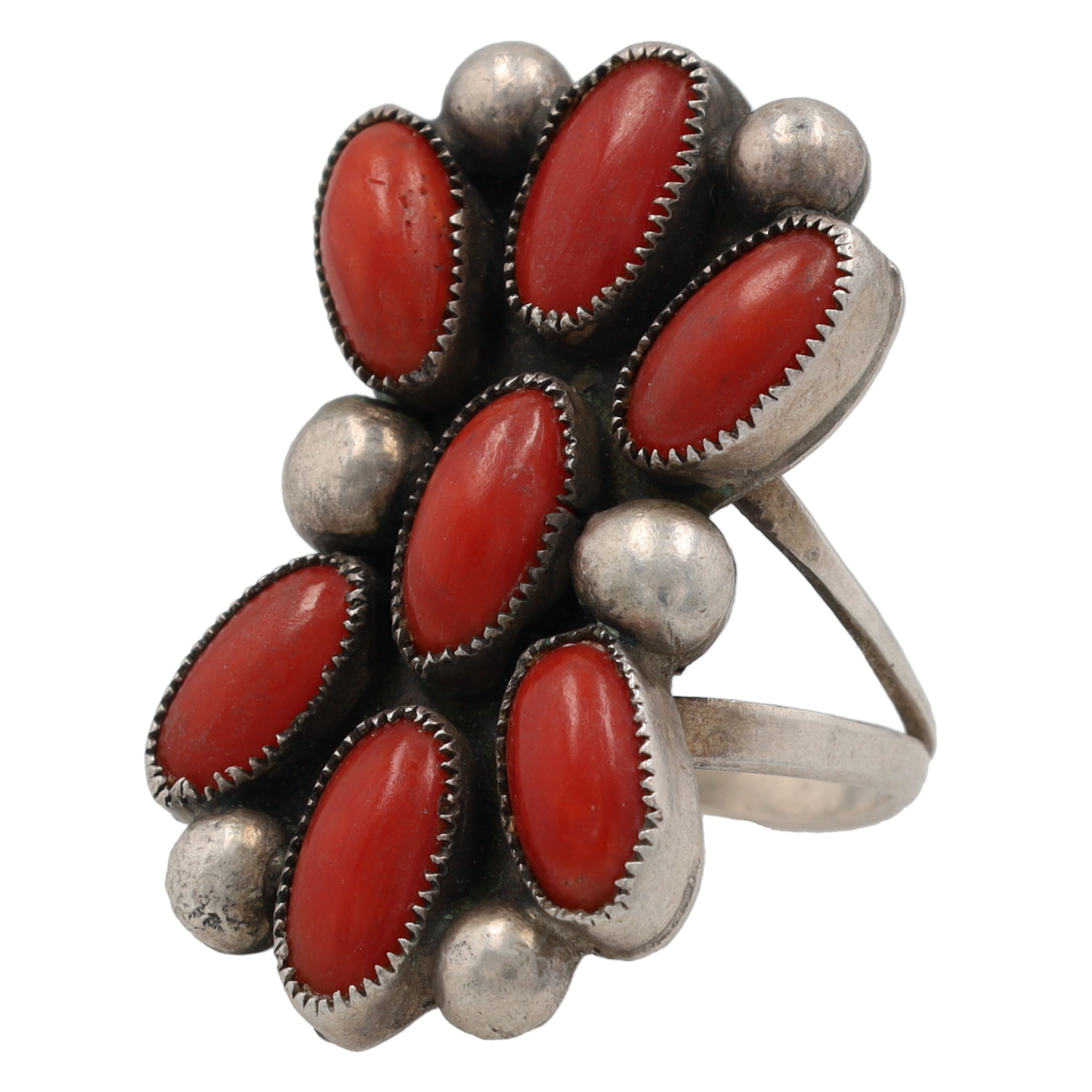Vintage Navajo Sterling Coral Cluster Ring Sz. 8.25, 10g