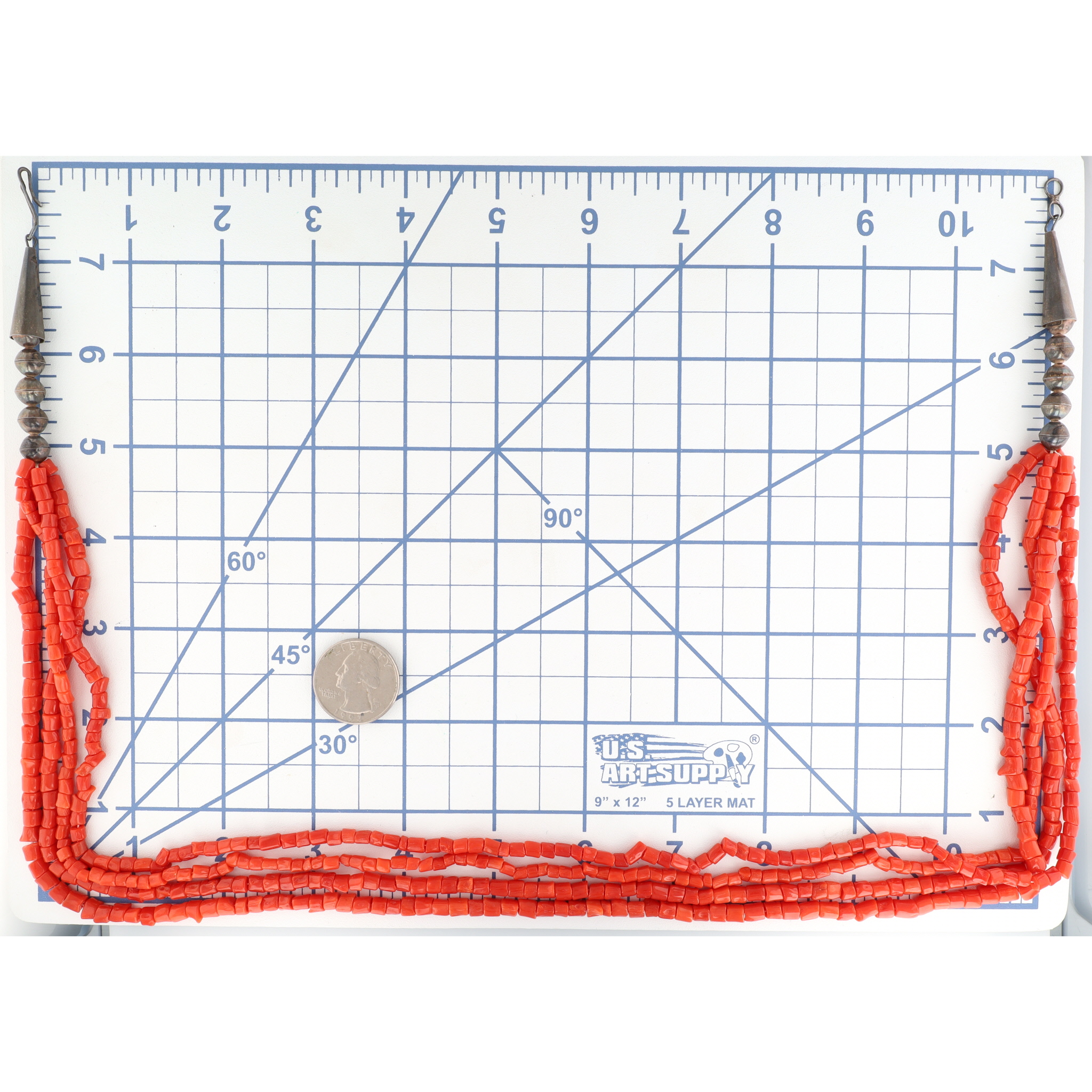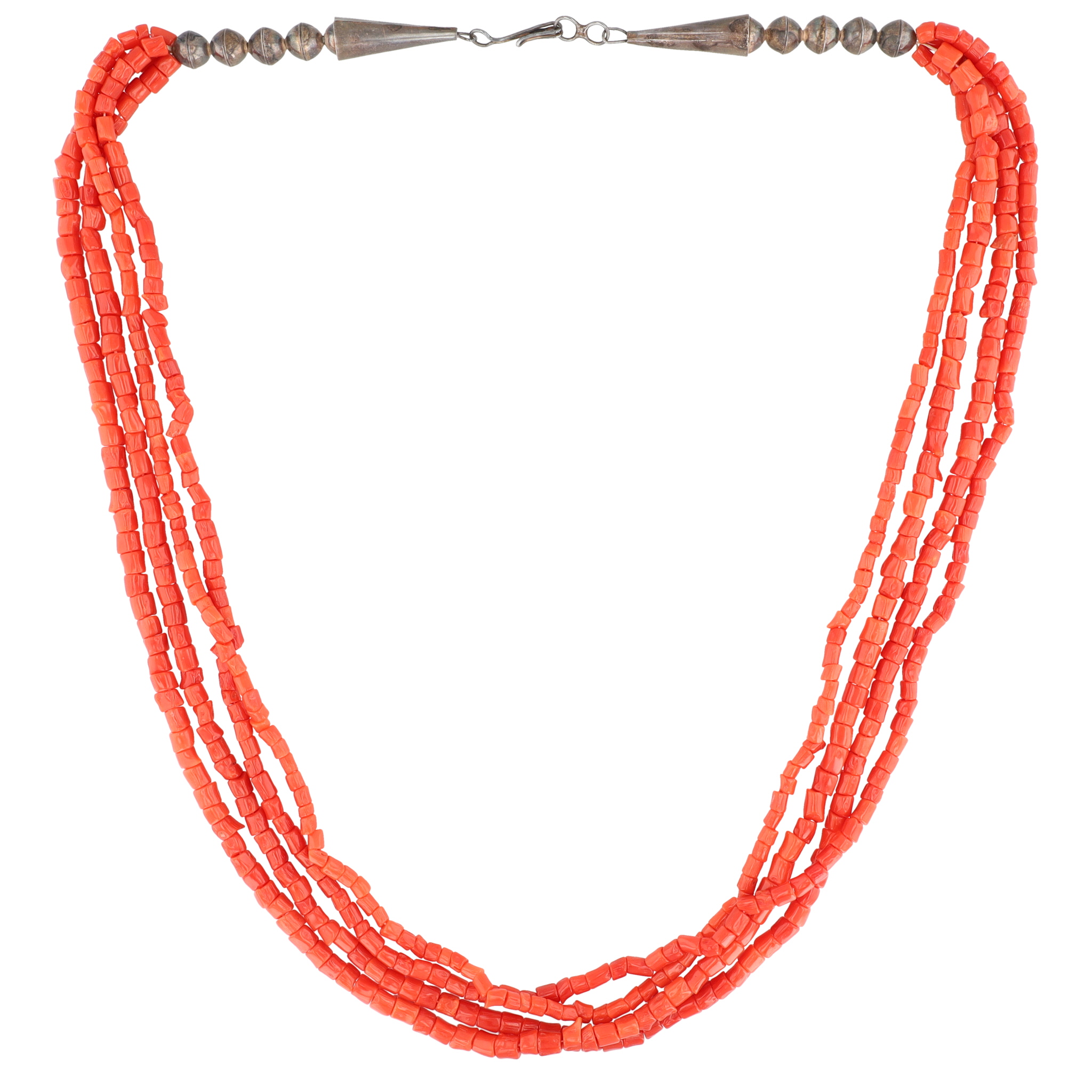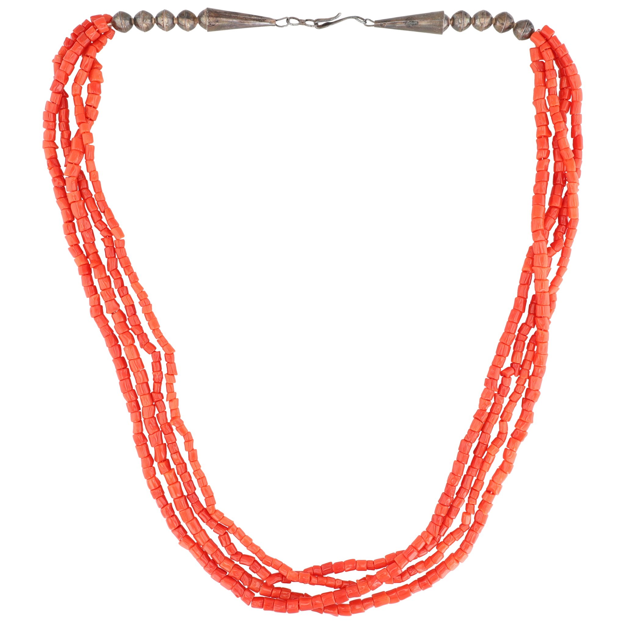 Santo Domingo 4 Strand Mediterranean Coral Sterling Necklace 74.5g