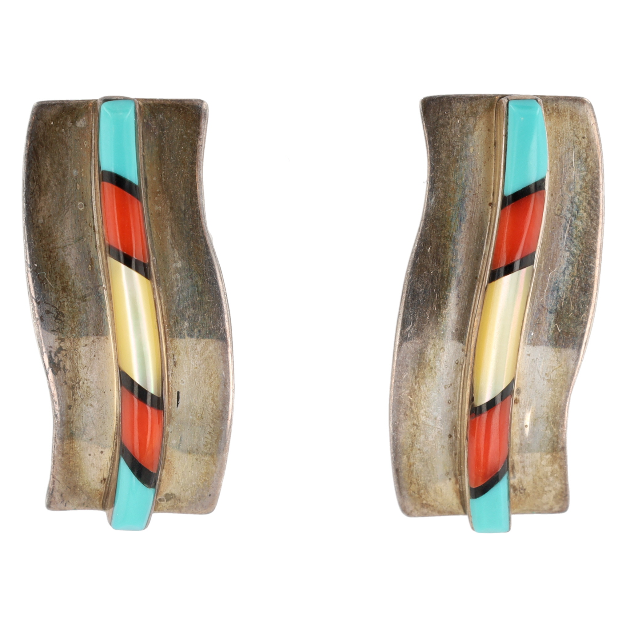 Signed M Navajo Sterling Raised Inlay Earrings 6g