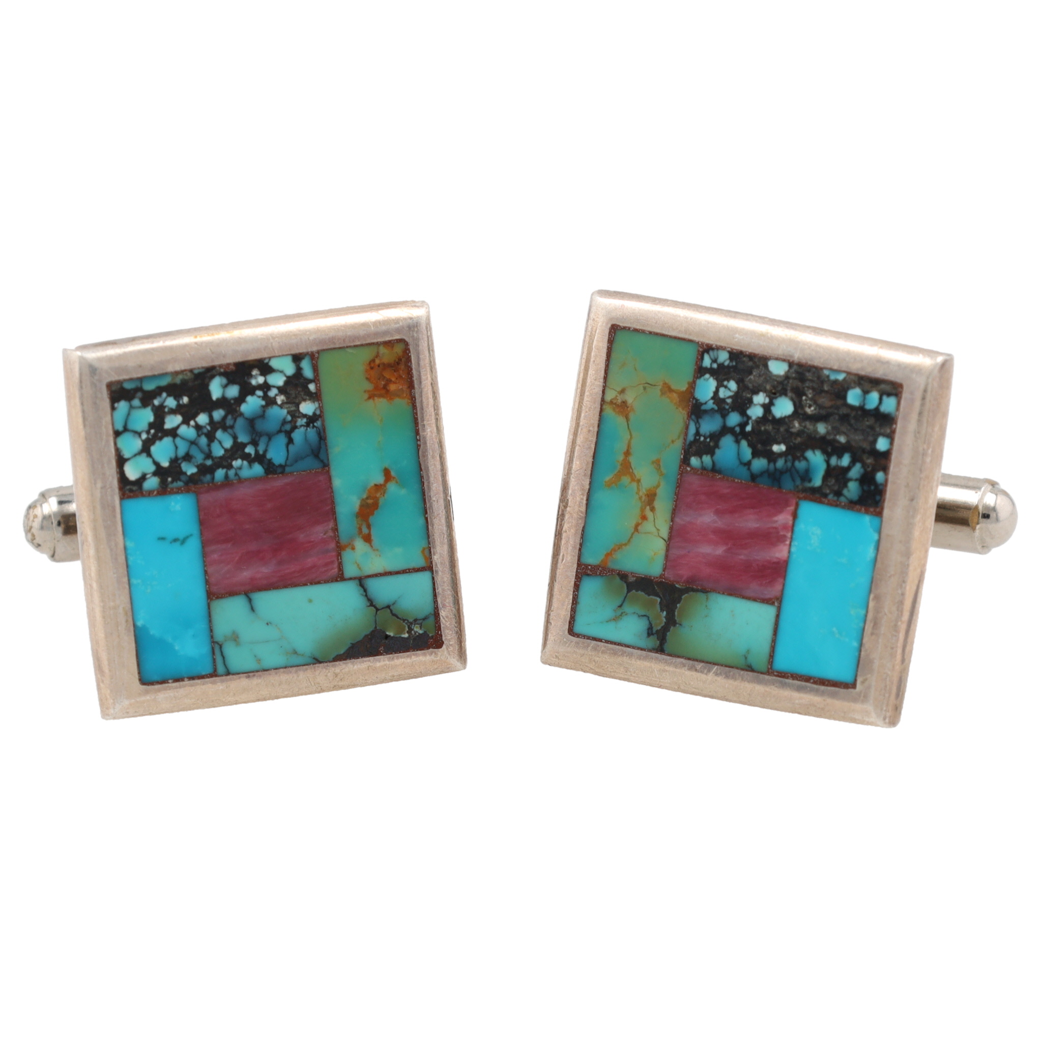 Vintage Navajo Sterling Multi Stone Inlay Cufflinks 16g