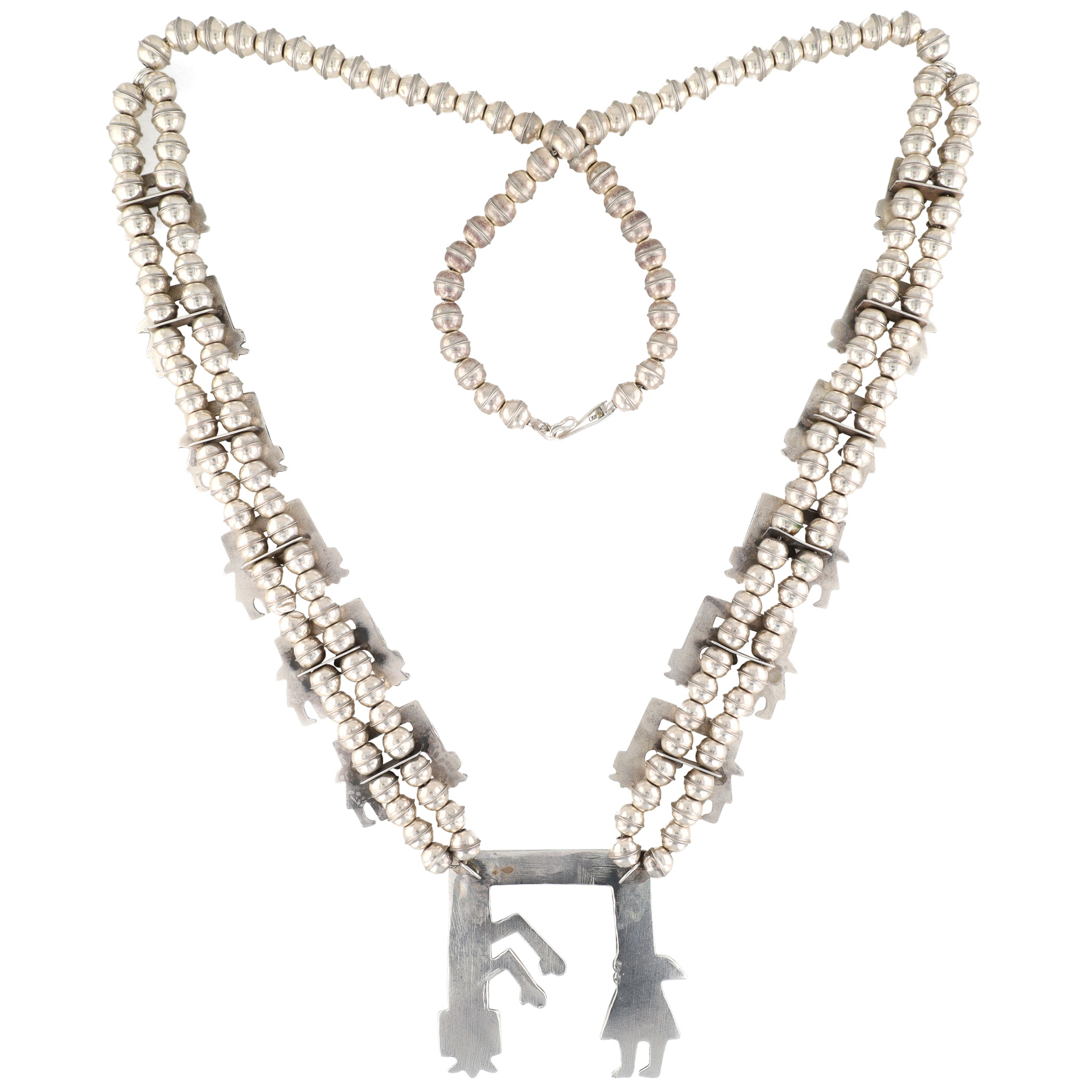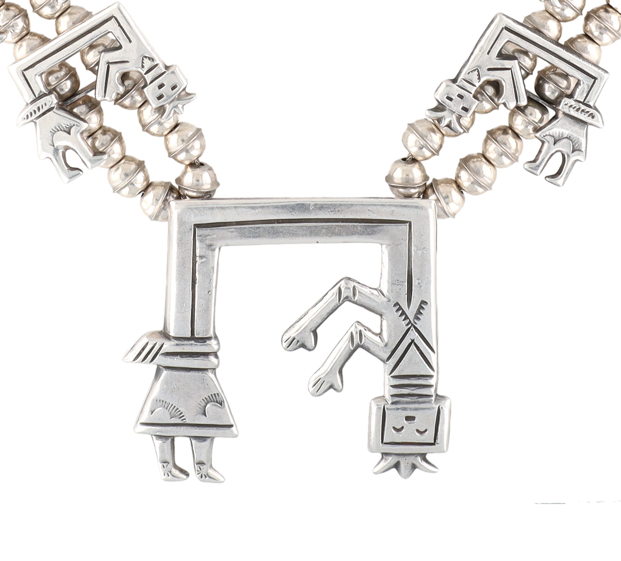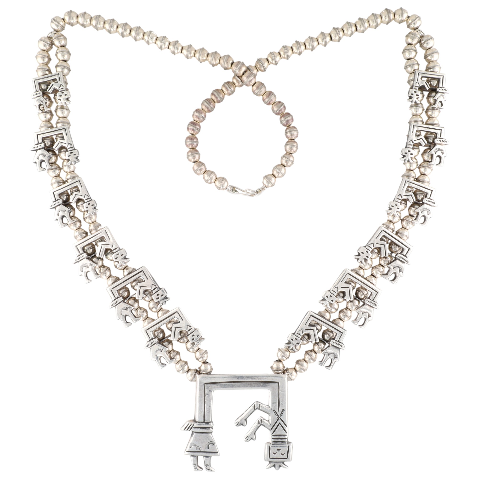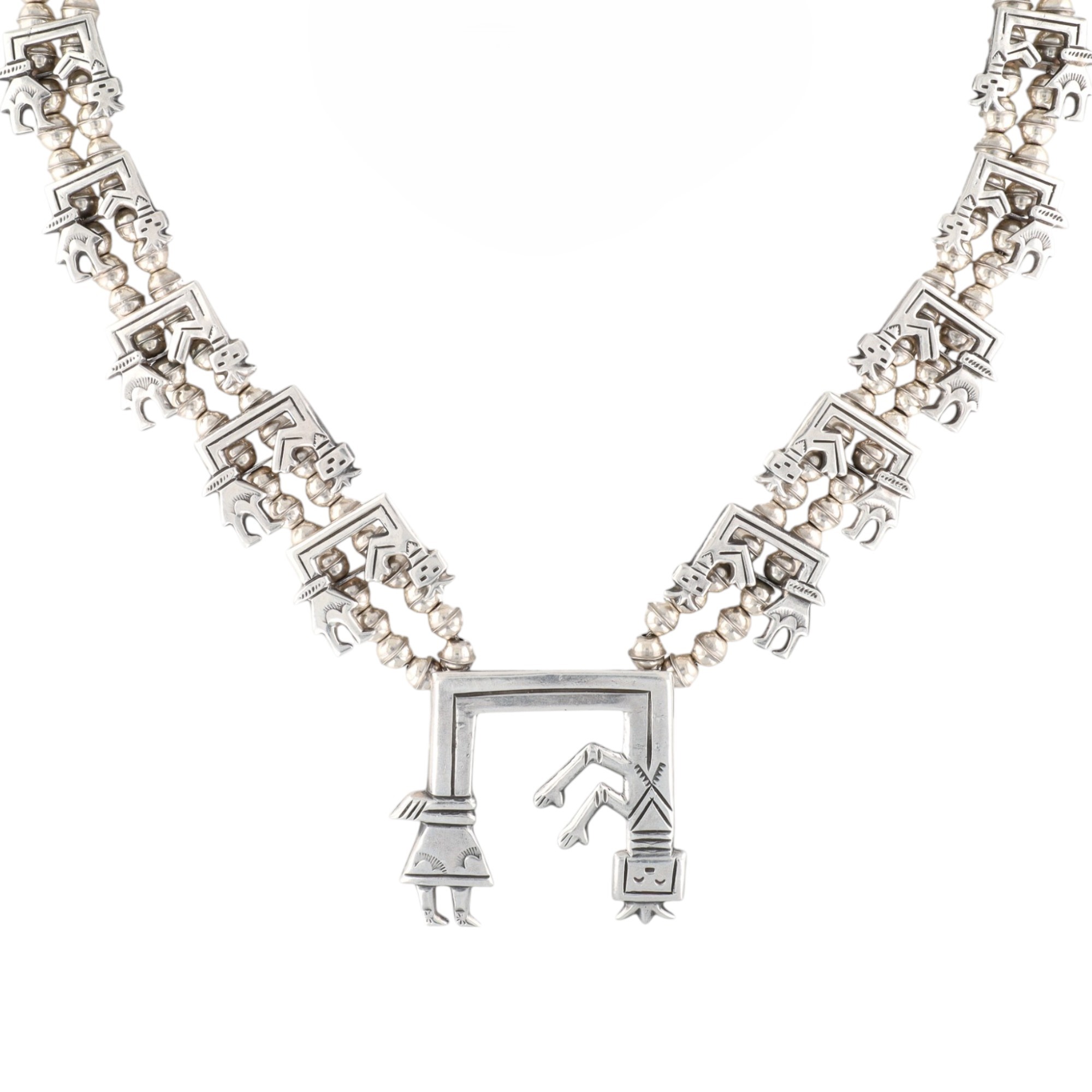 Navajo Sterling Rainbow Man Squash Blossom Necklace 121g