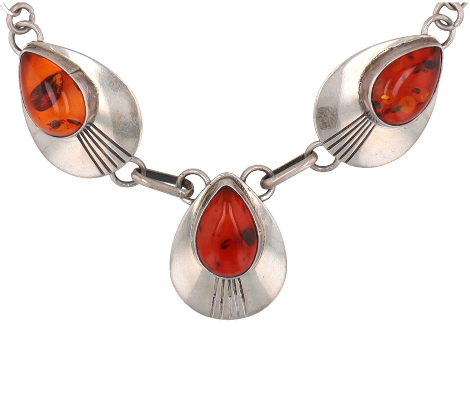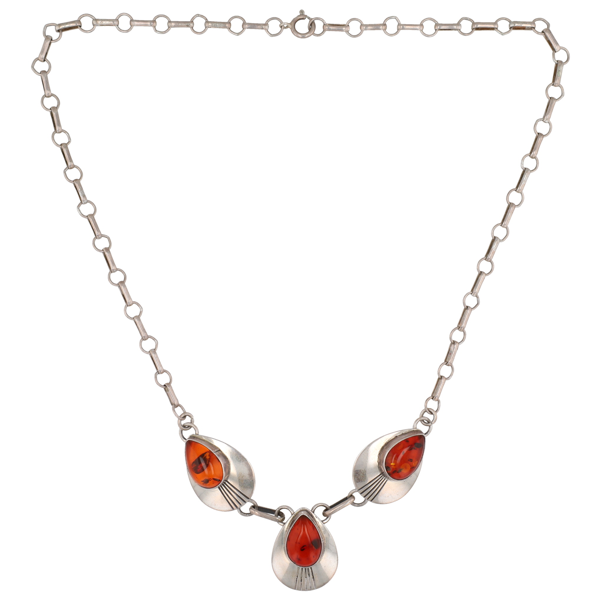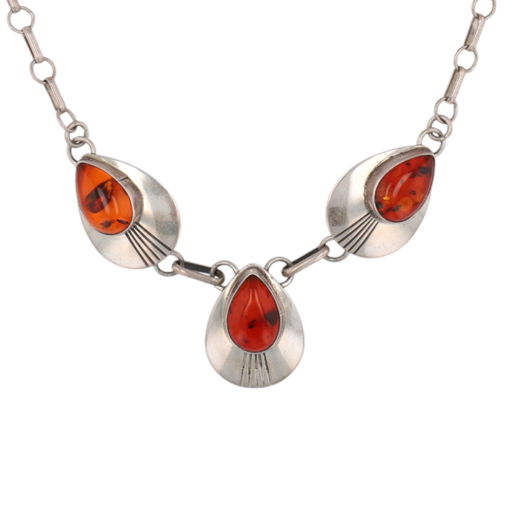 Vintage Navajo Sterling Amber Necklace 15g