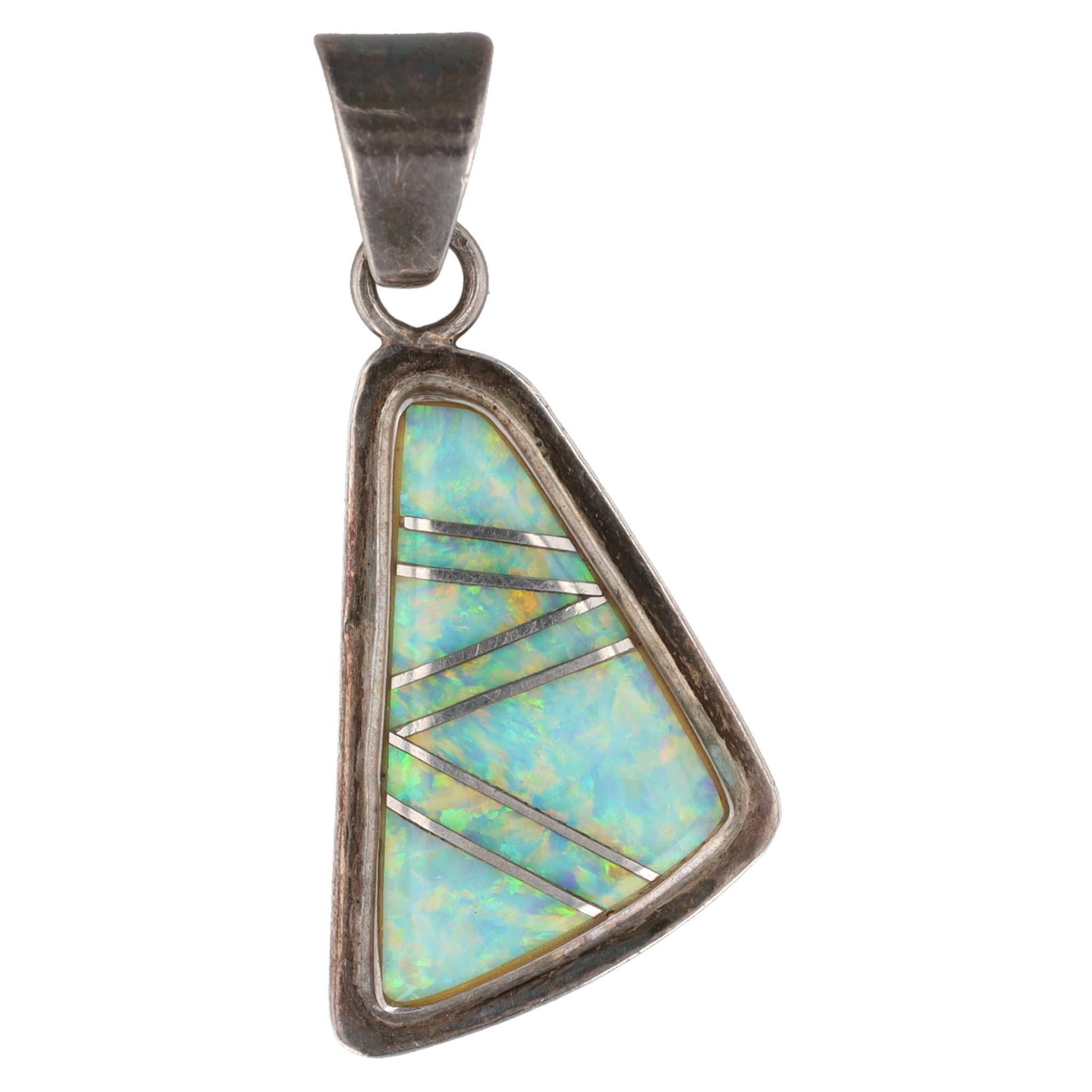 Signed Zuni Sterling Opal Inlay Pendant 2g
