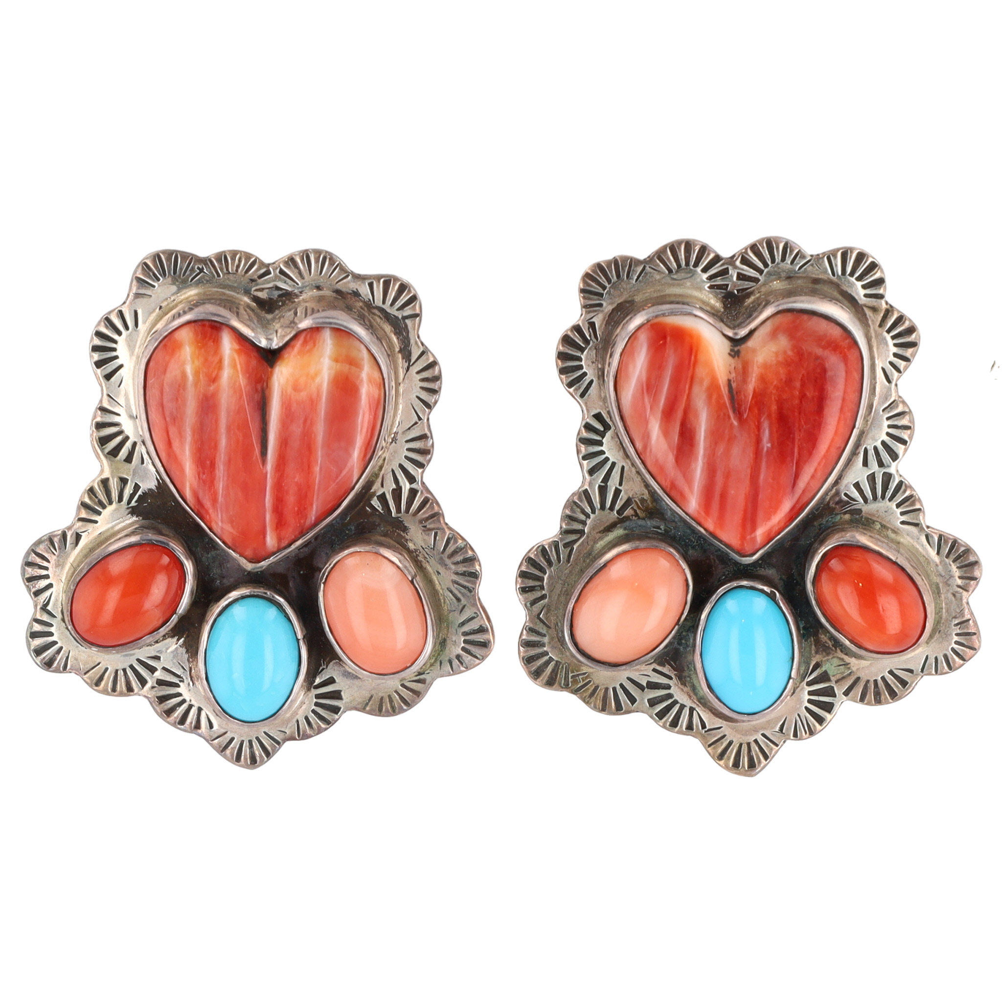 Vintage Carol Felley Sterling Multi Stone Heart Earrings 12g