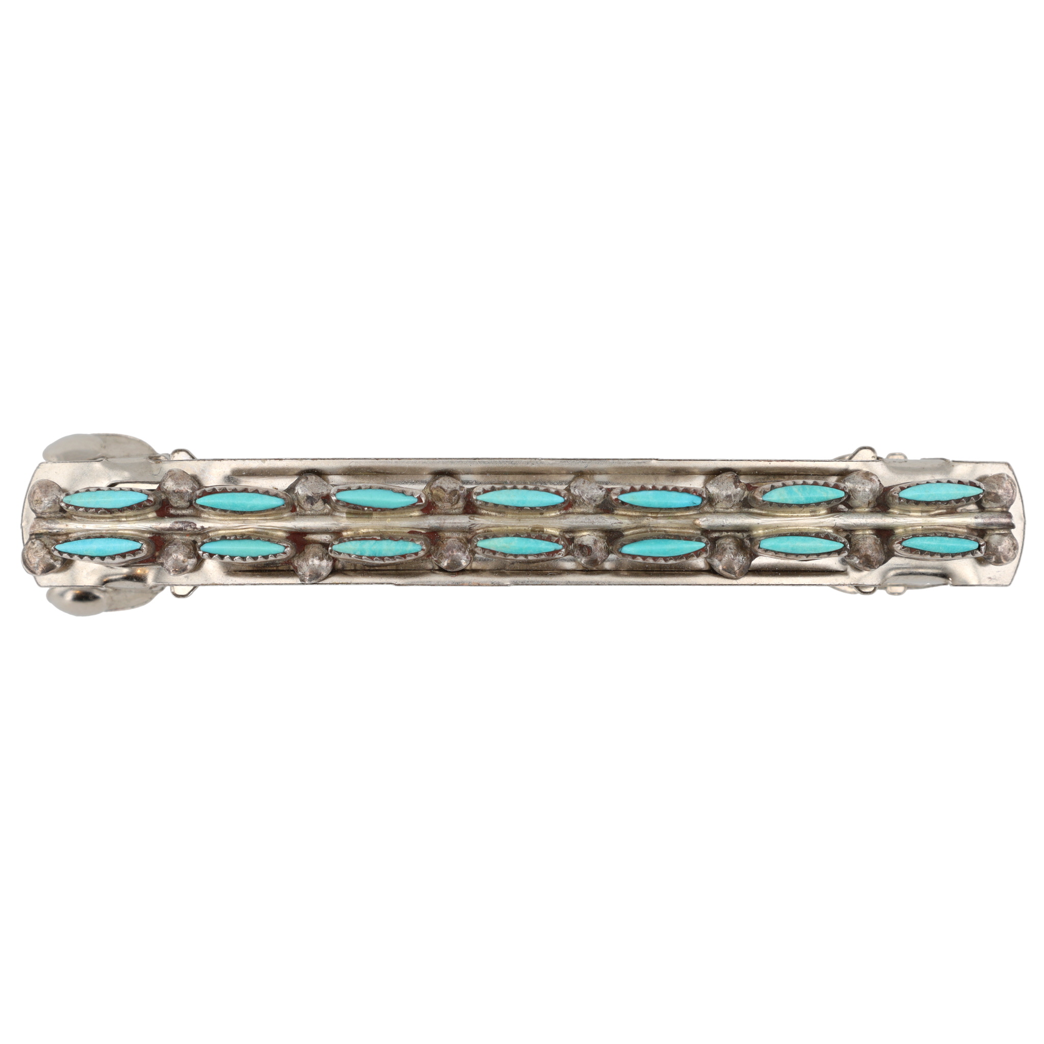 Zuni Sterling Needlepoint Turquoise Hair Clip 5g
