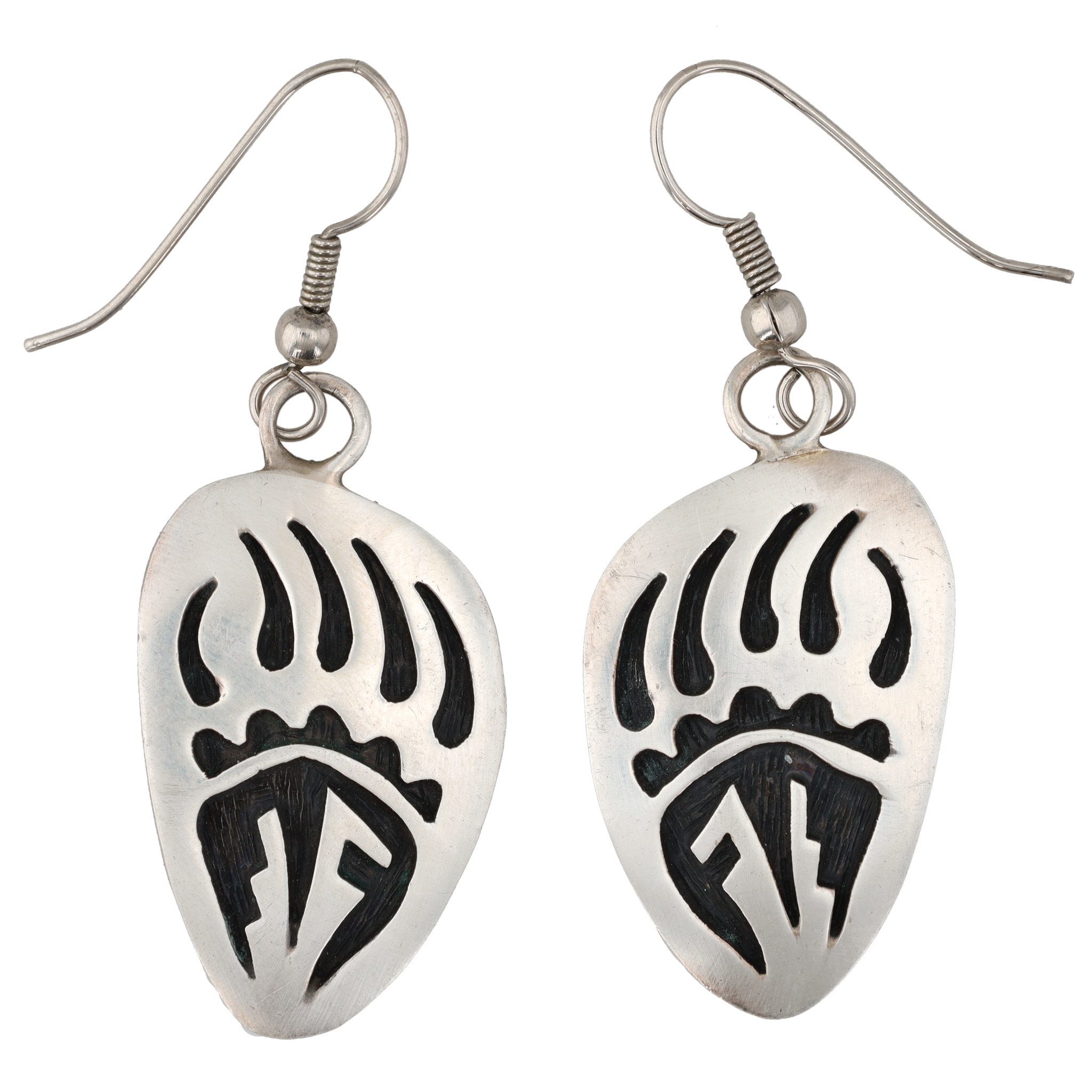 Signed Hopi Sterling Bear Paw Overlay Drop Earrings 12g