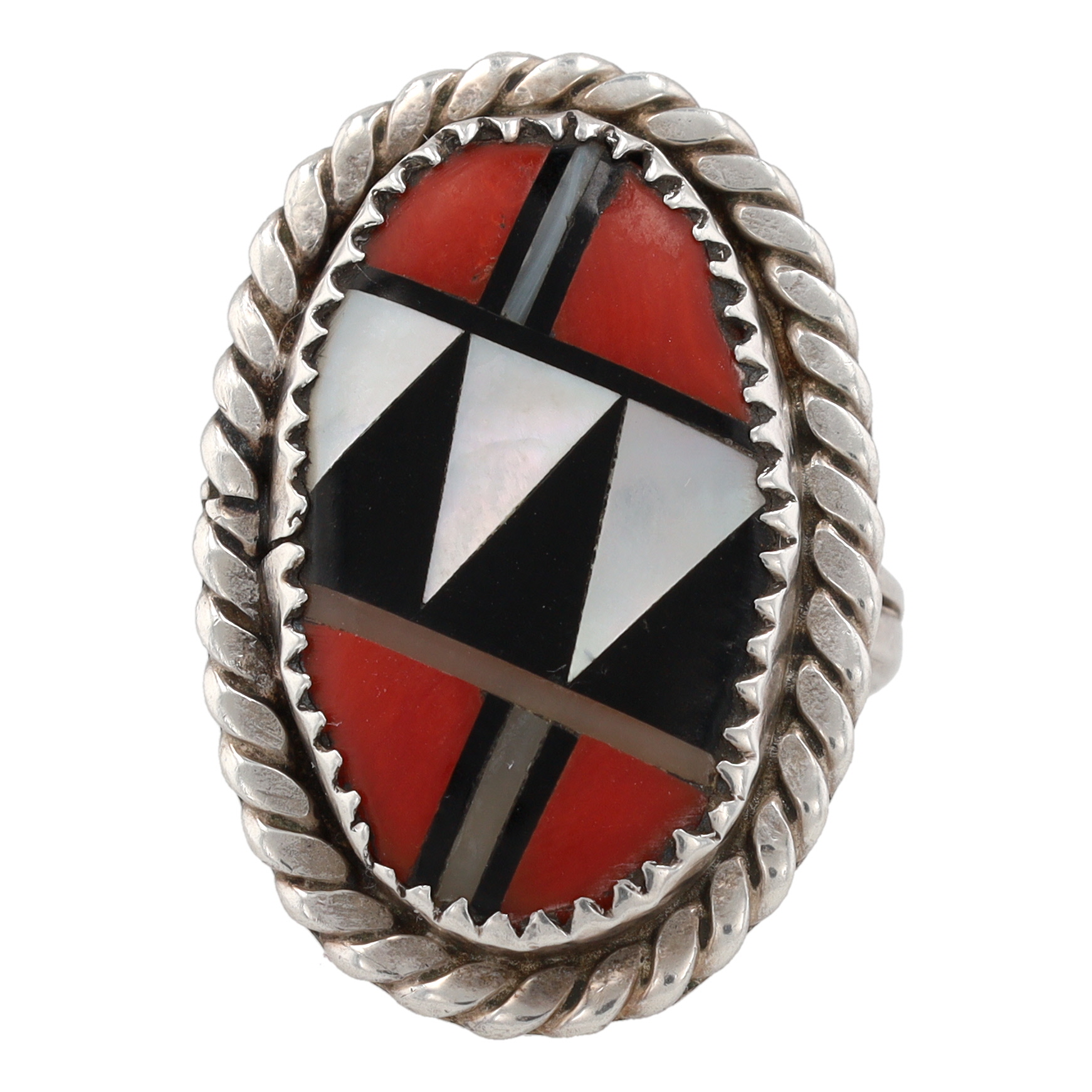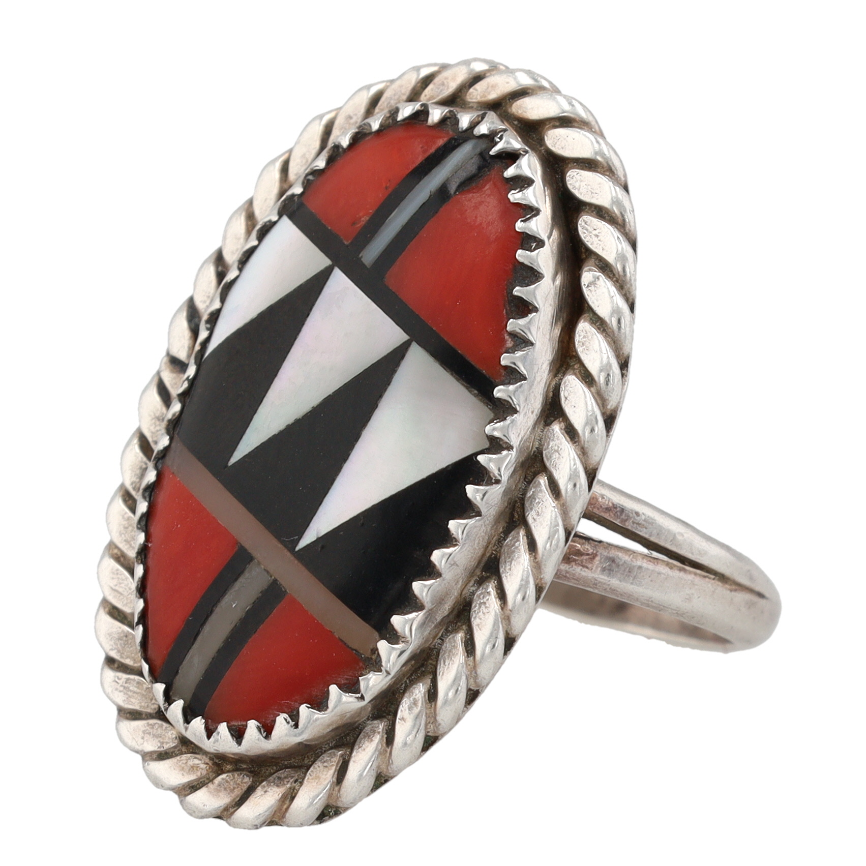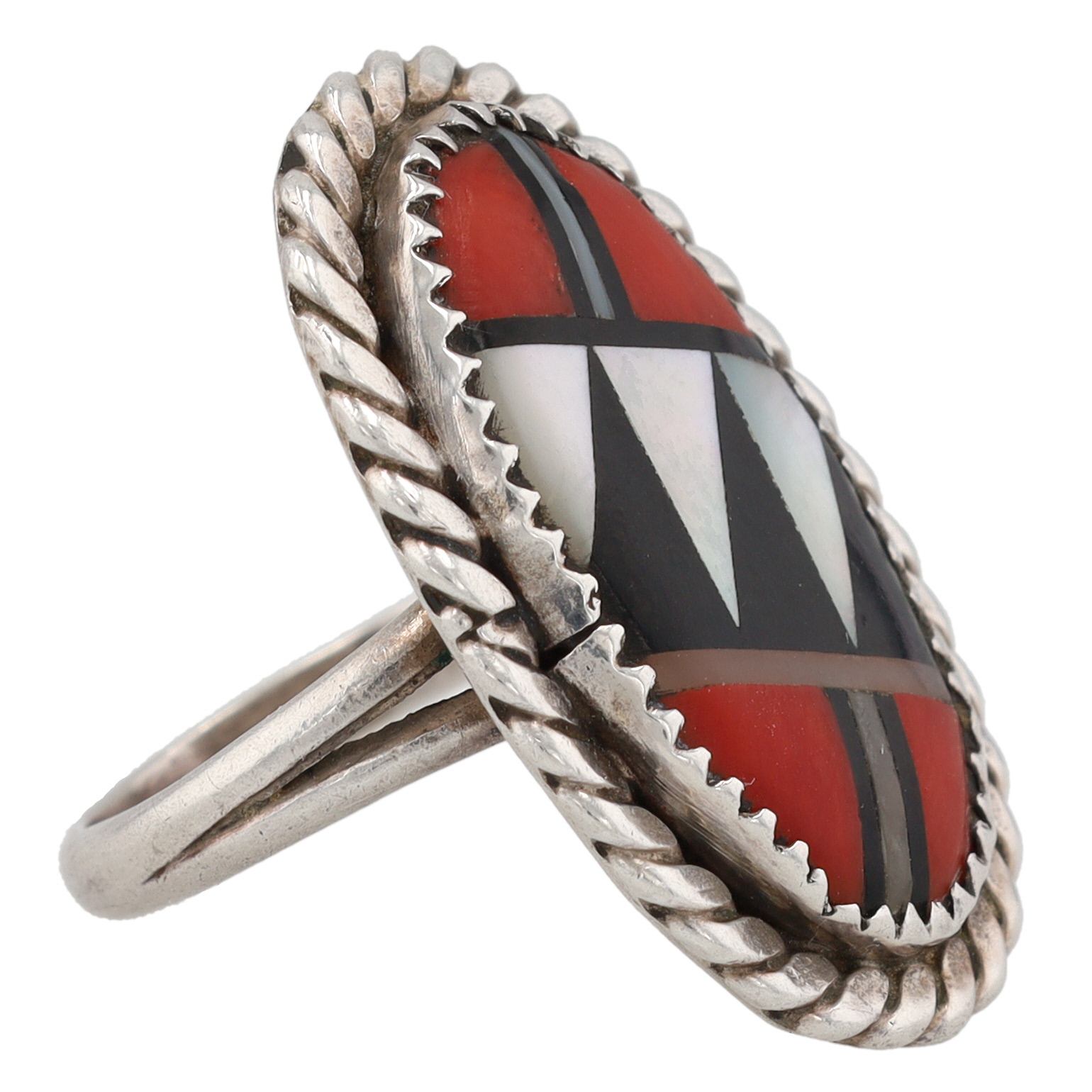 Vintage Zuni Sterling Multi Stone Inlay Ring Sz. 6.25, 6g