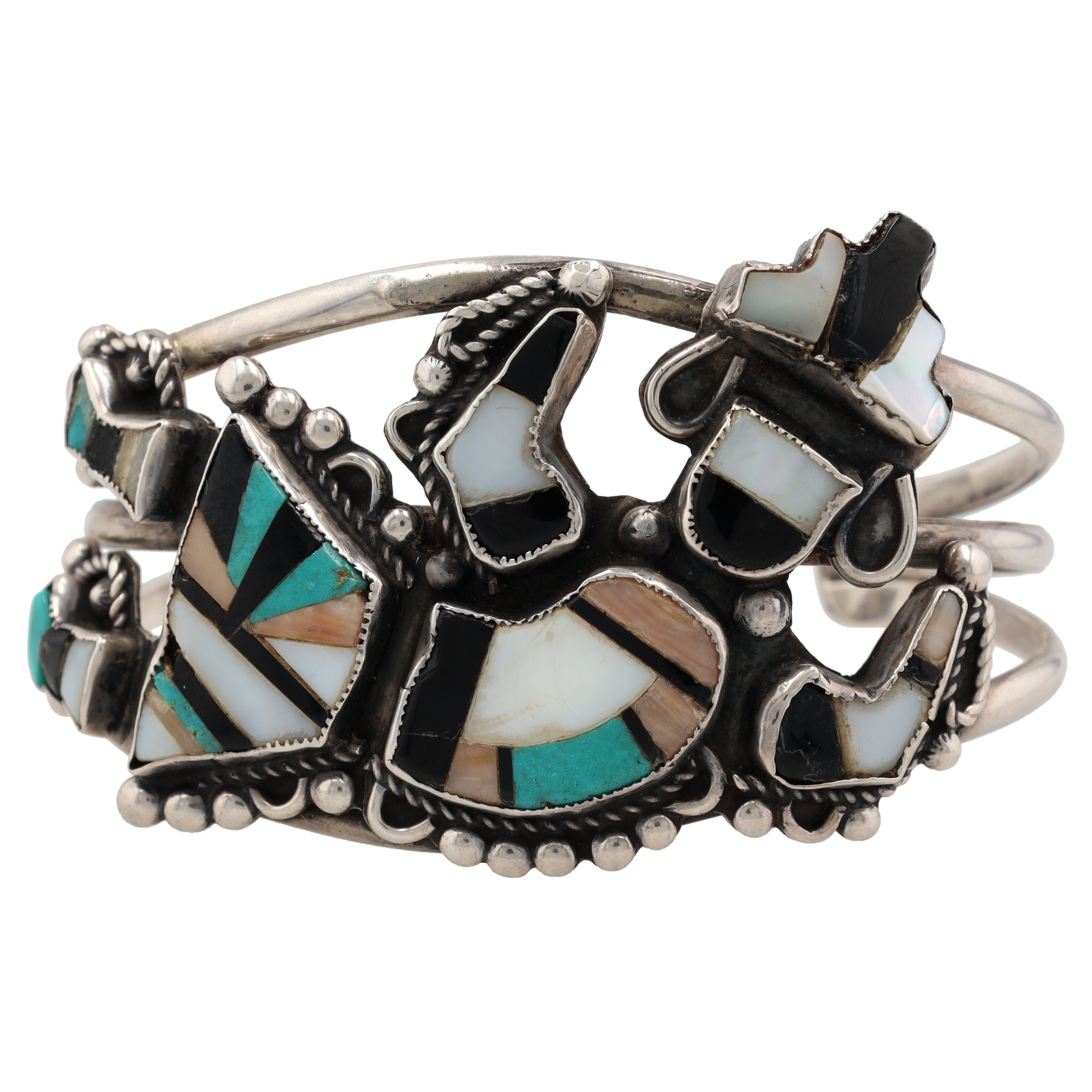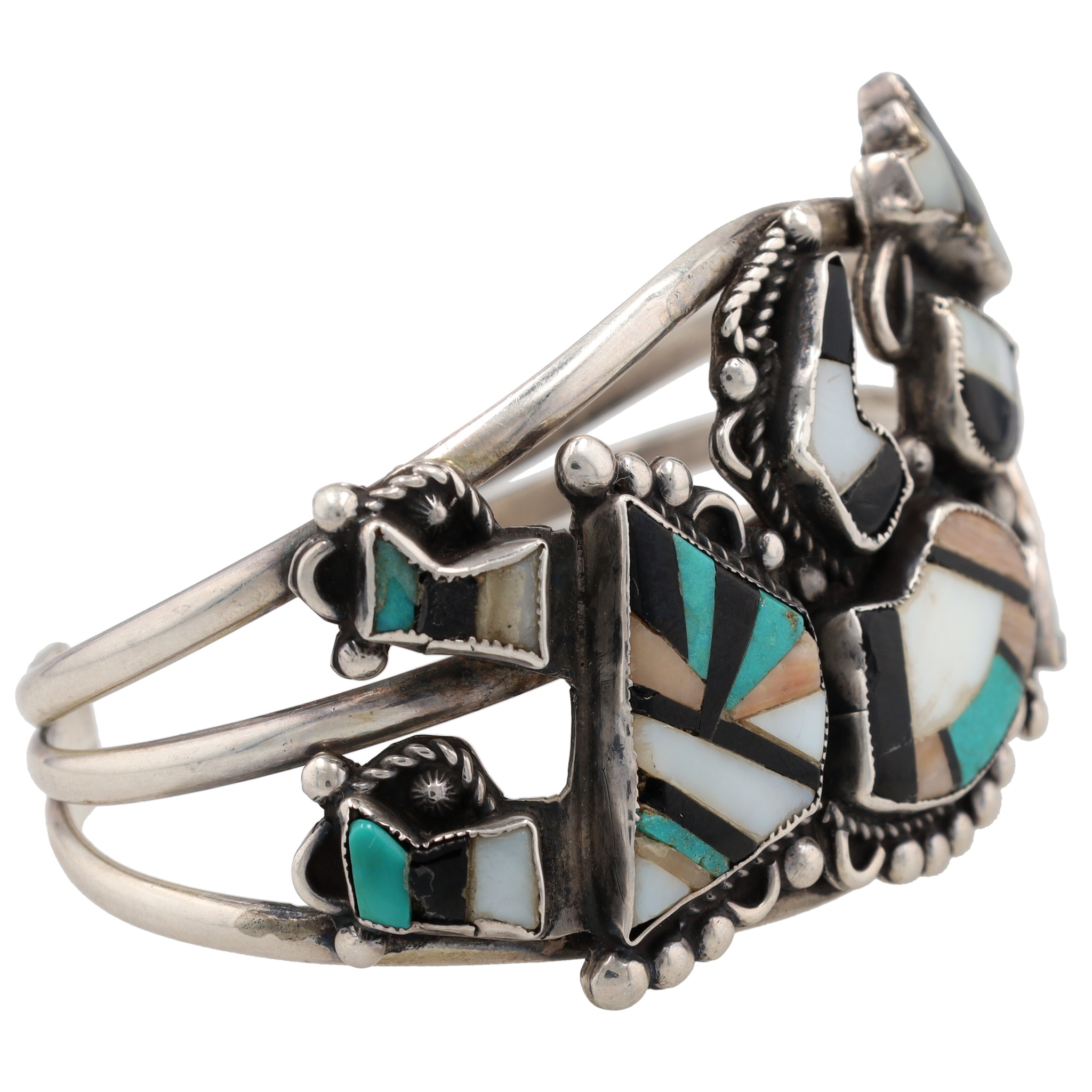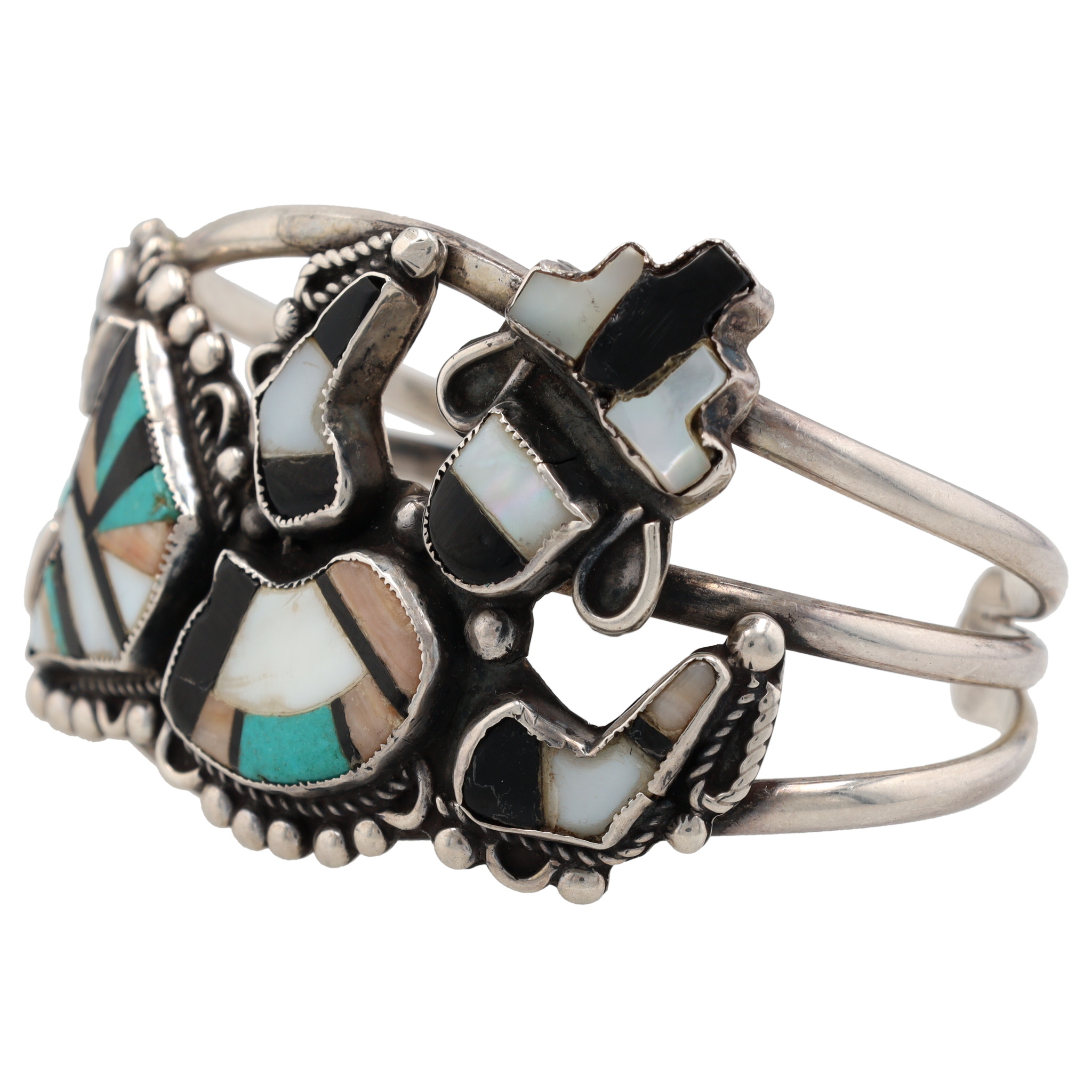Vintage Zuni Sterling Multi Stone Inlay Rainbow Man Cuff Bracelet 37g