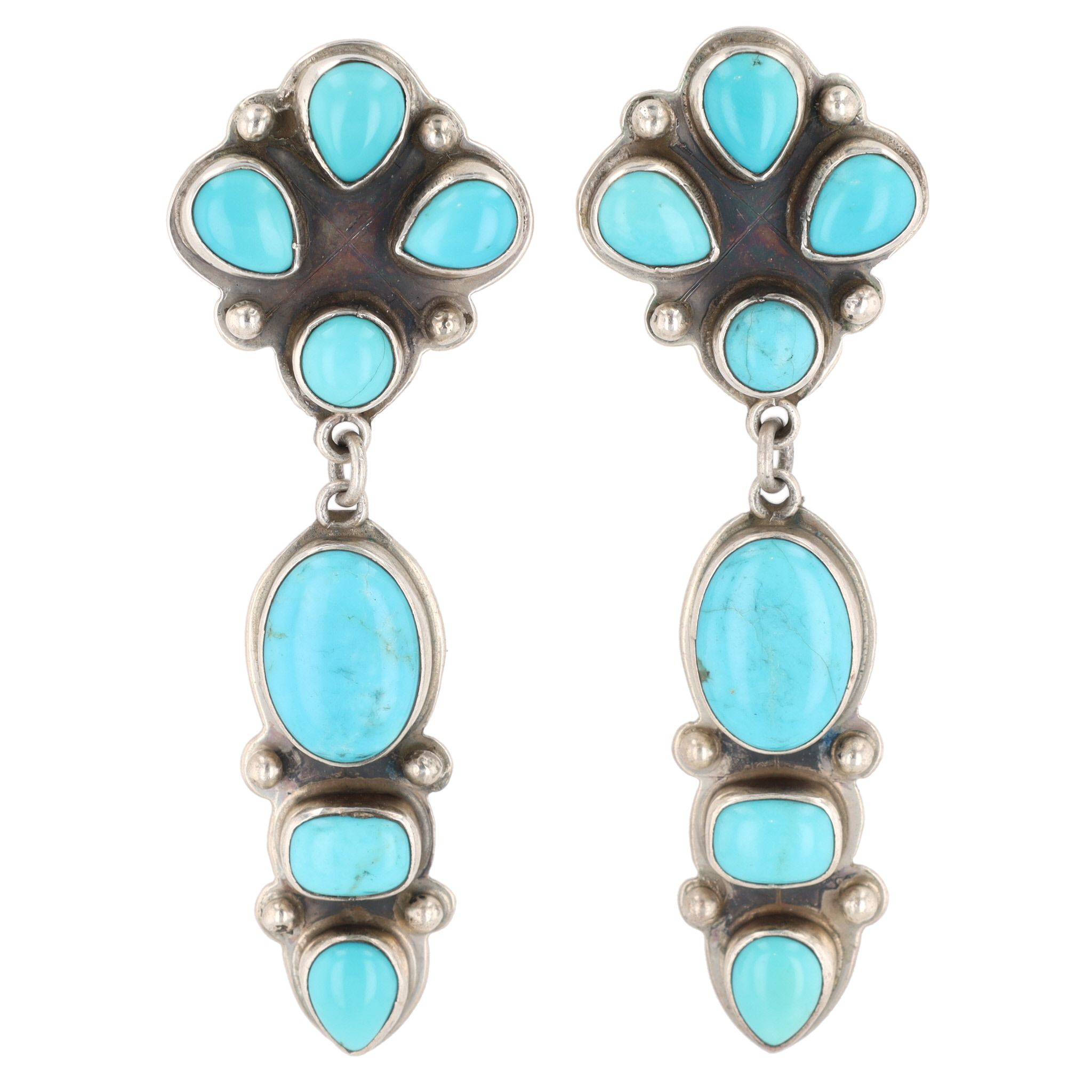 Carolyne ‘Nabiho’ Apachito Navajo Sterling Turquoise Drop Earrings 18g
