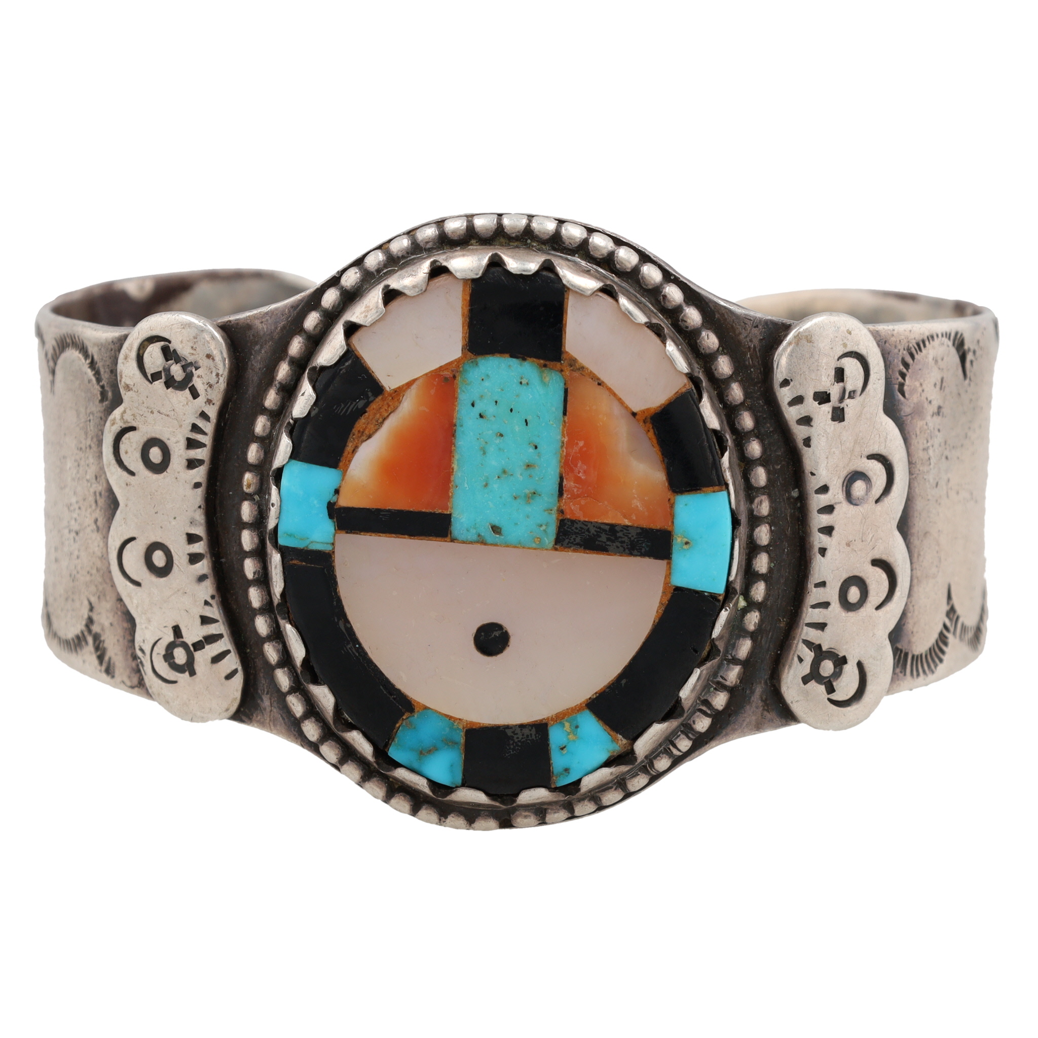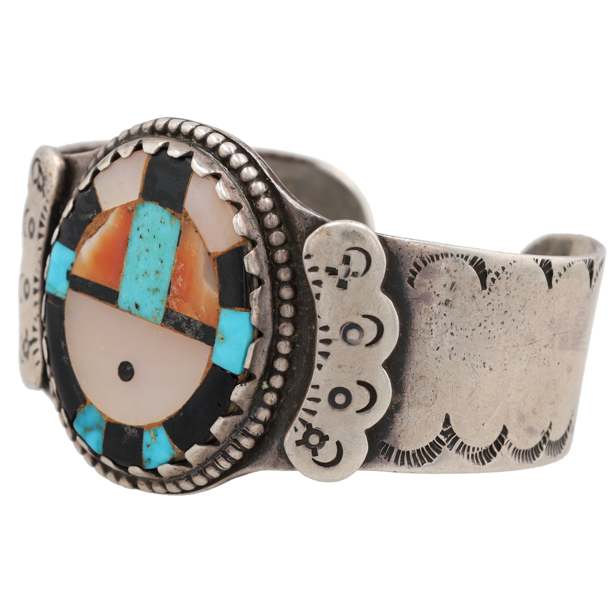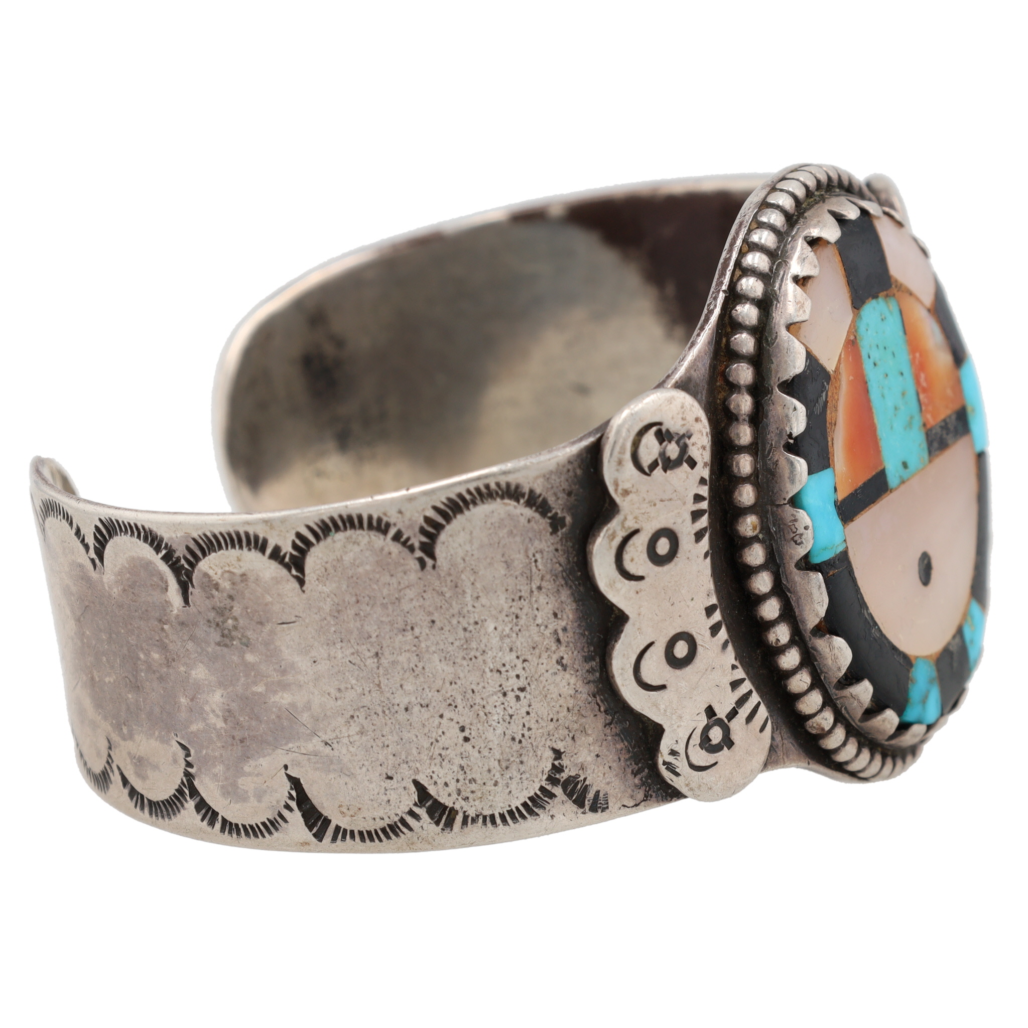 Gorgeous Vintage Zuni Sterling Multi Stone Sunface Inlay Cuff Bracelet 54g