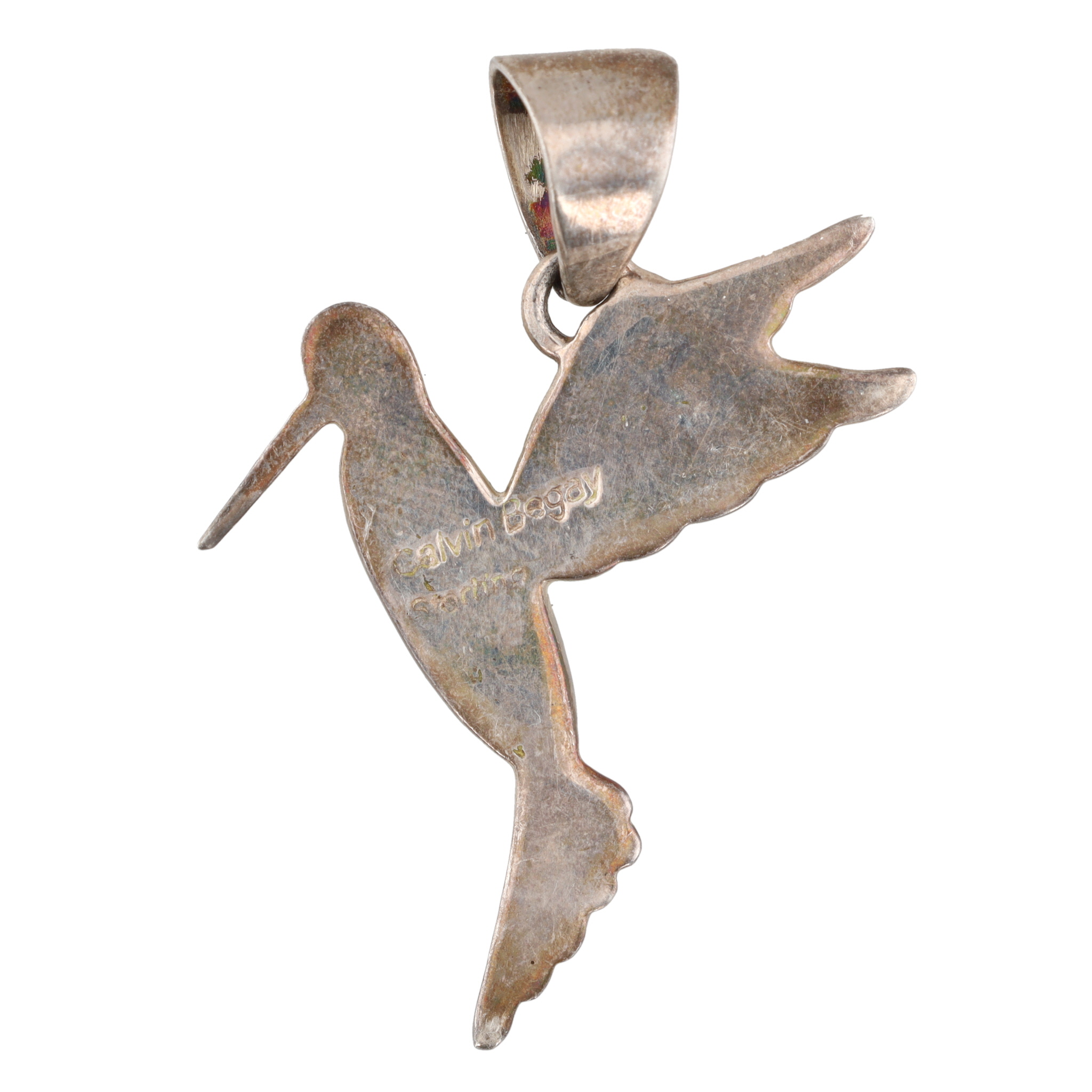 Calvin Begay Navajo Sterling Turquoise Hummingbird Inlay Pendant 6g