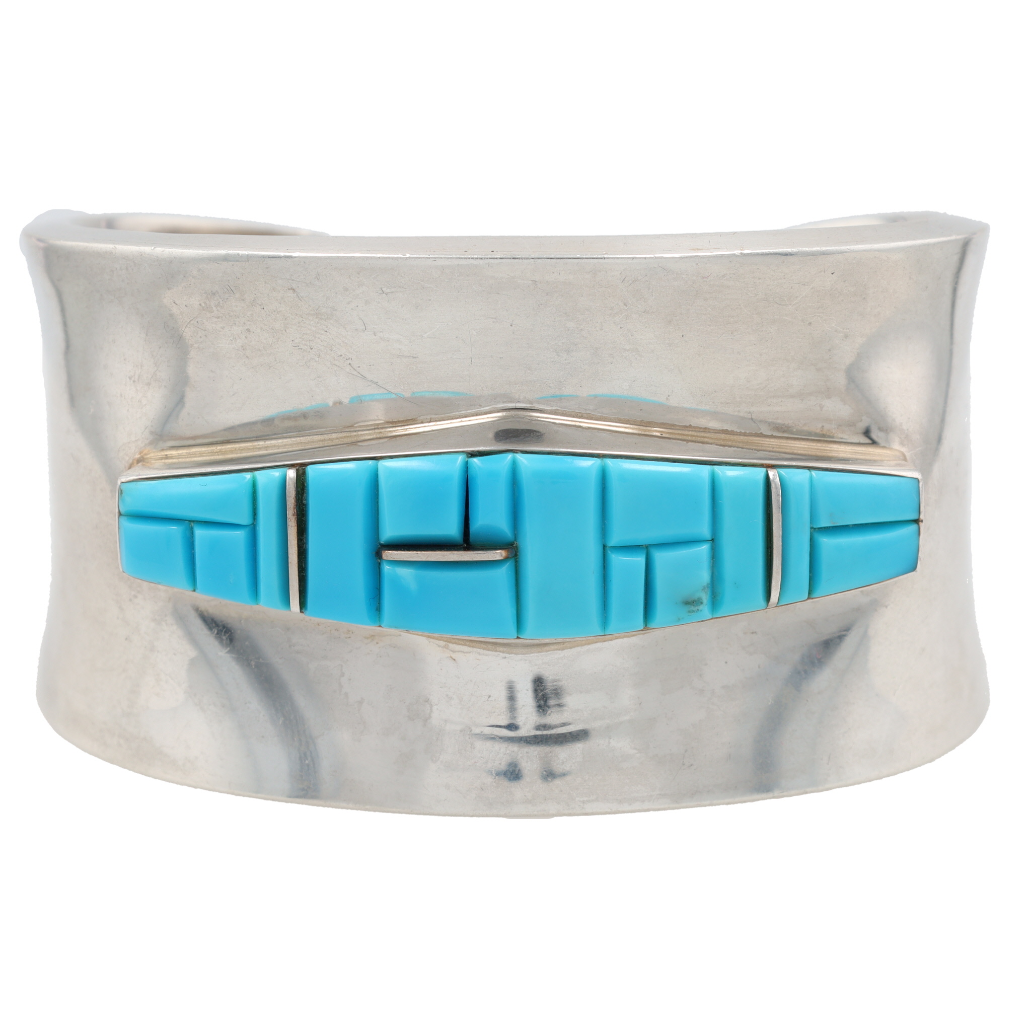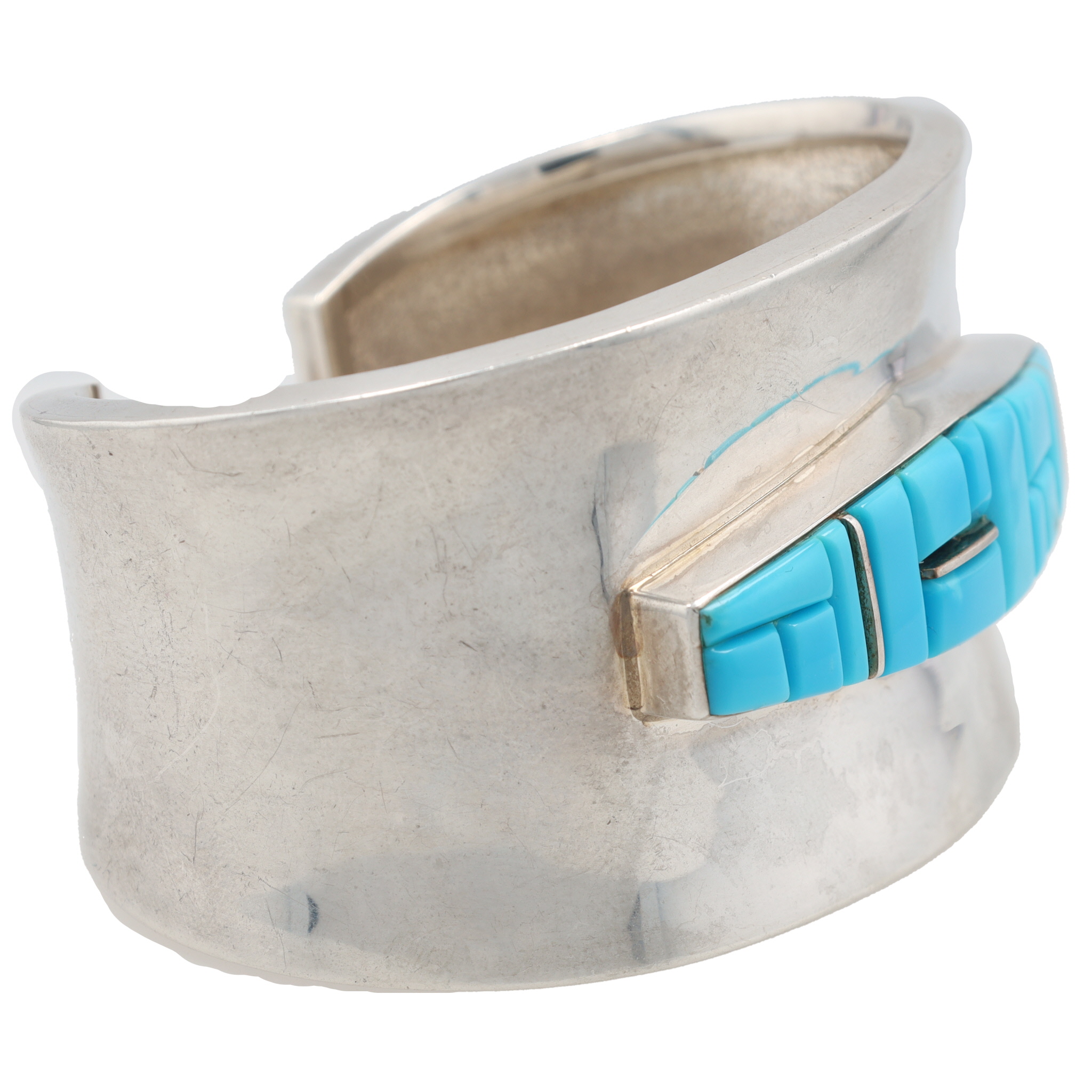 Double Signed Navajo Sterling Turquoise Cobblestone Turquoise Cuff Bracelet 68g