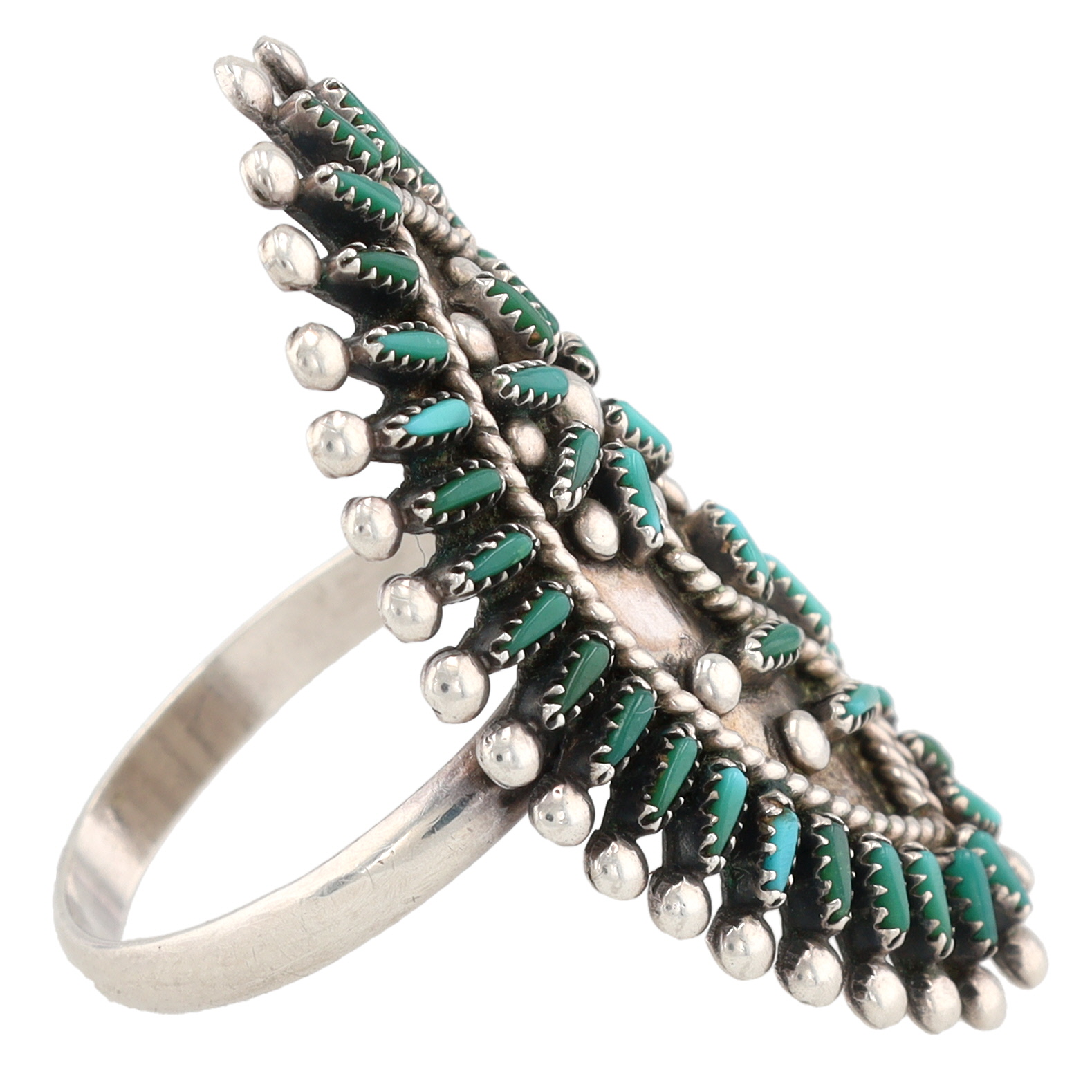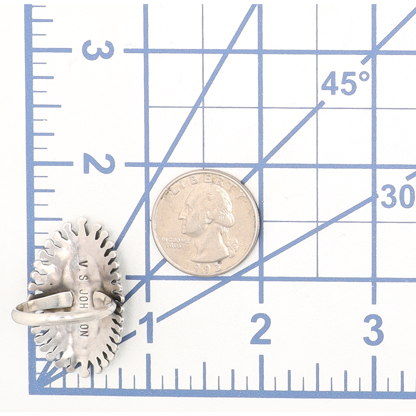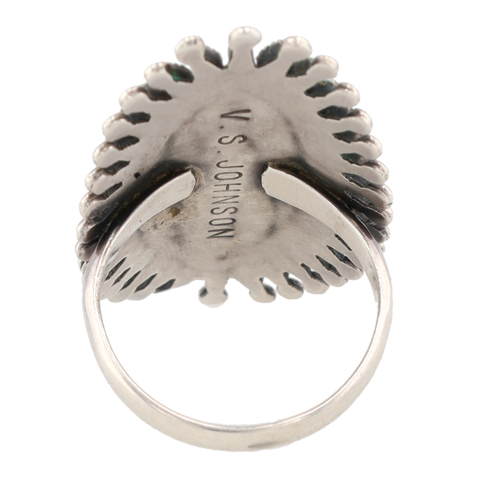 Vincent Socorro Johnson Zuni Sterling Needlepoint Turquoise Flower Ring Sz 8, 6g