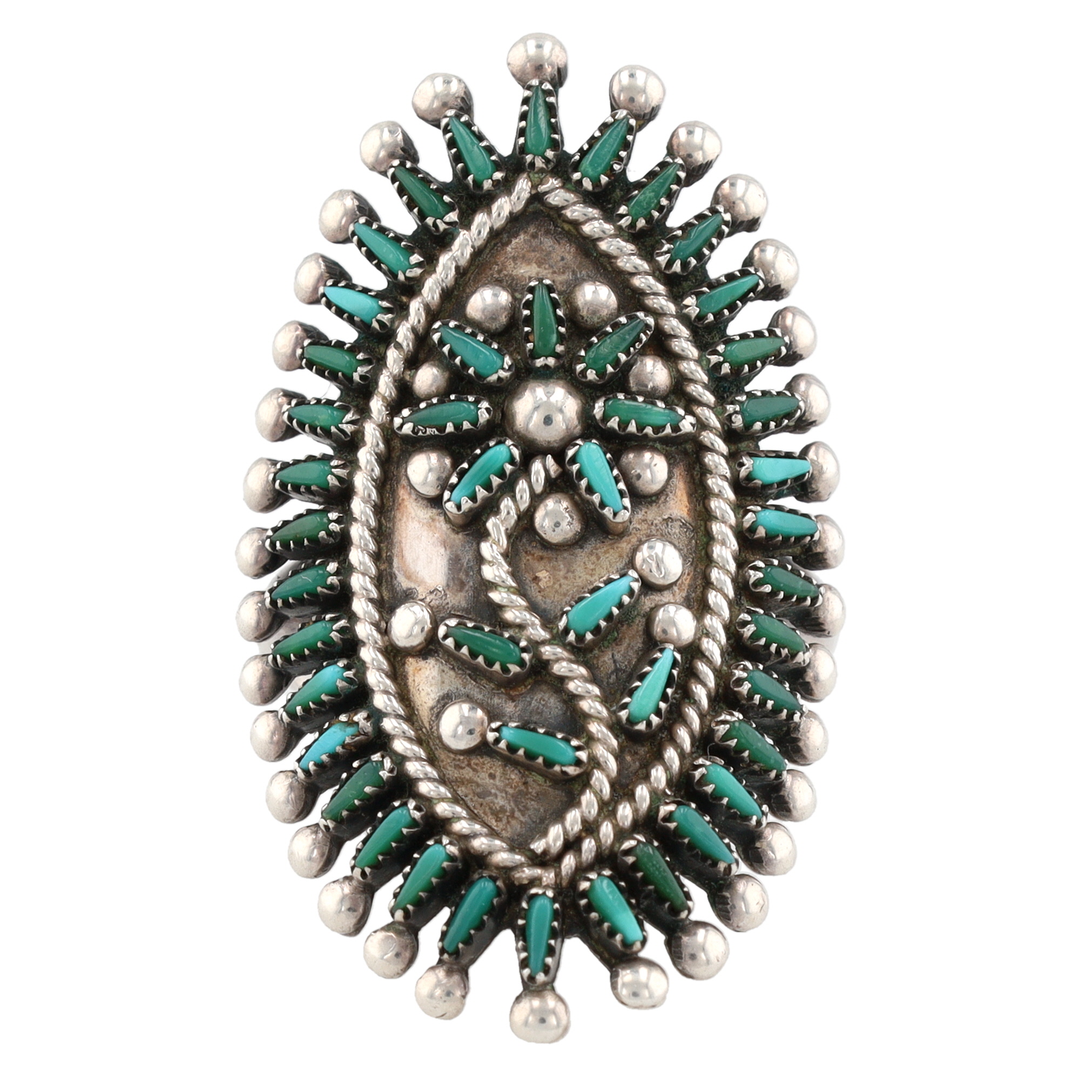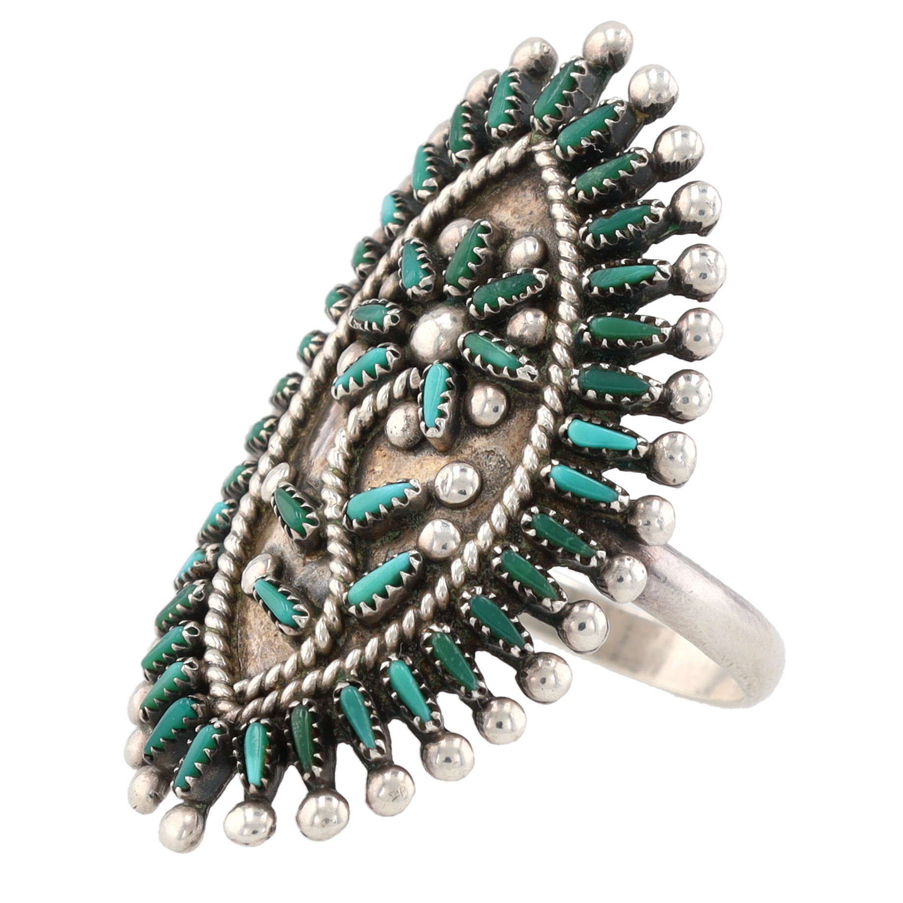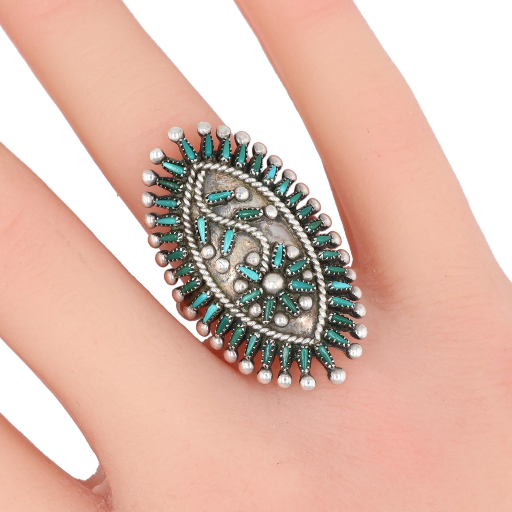 Vincent Socorro Johnson Zuni Sterling Needlepoint Turquoise Flower Ring Sz 8, 6g
