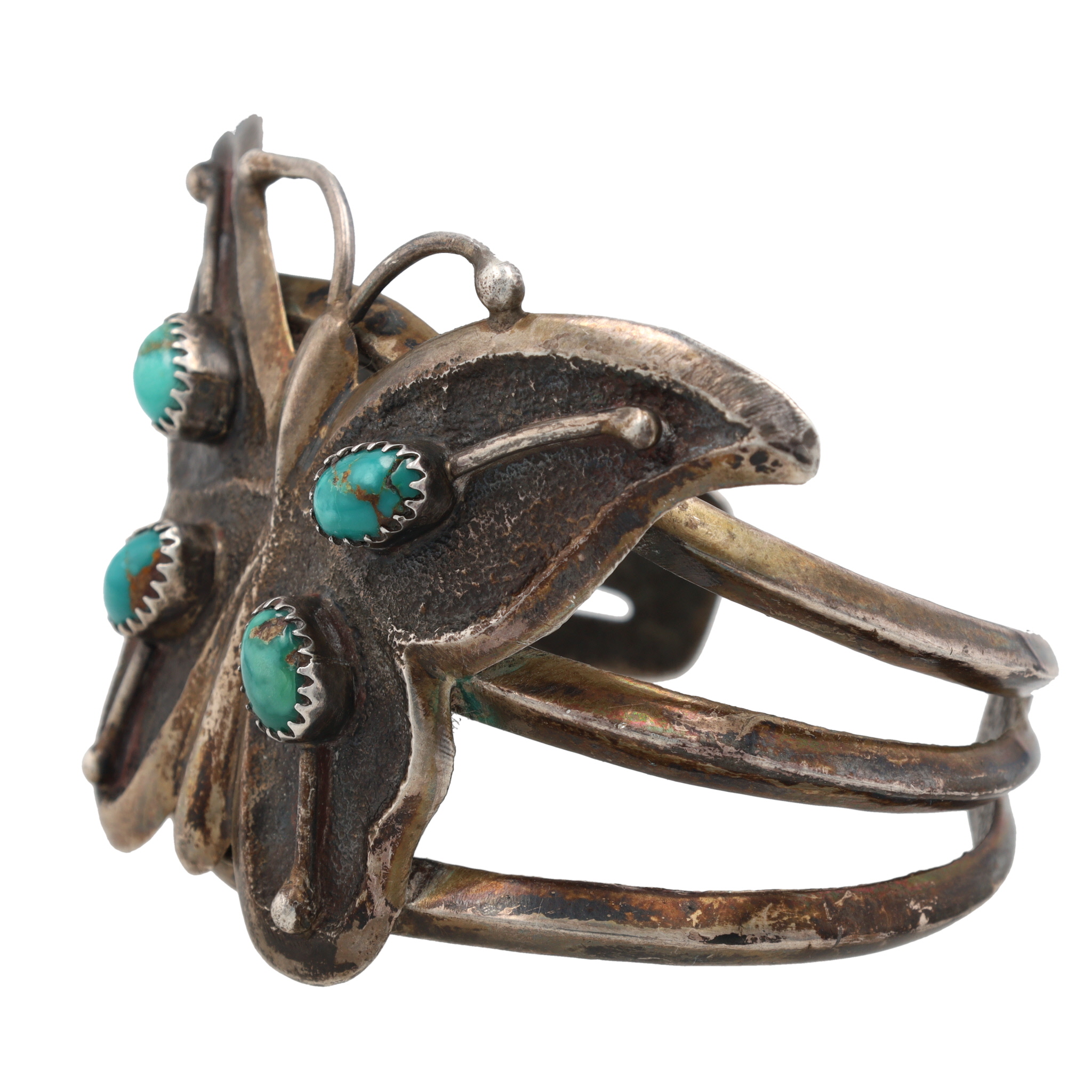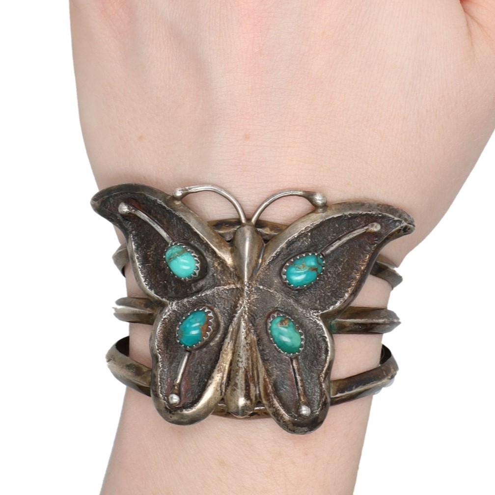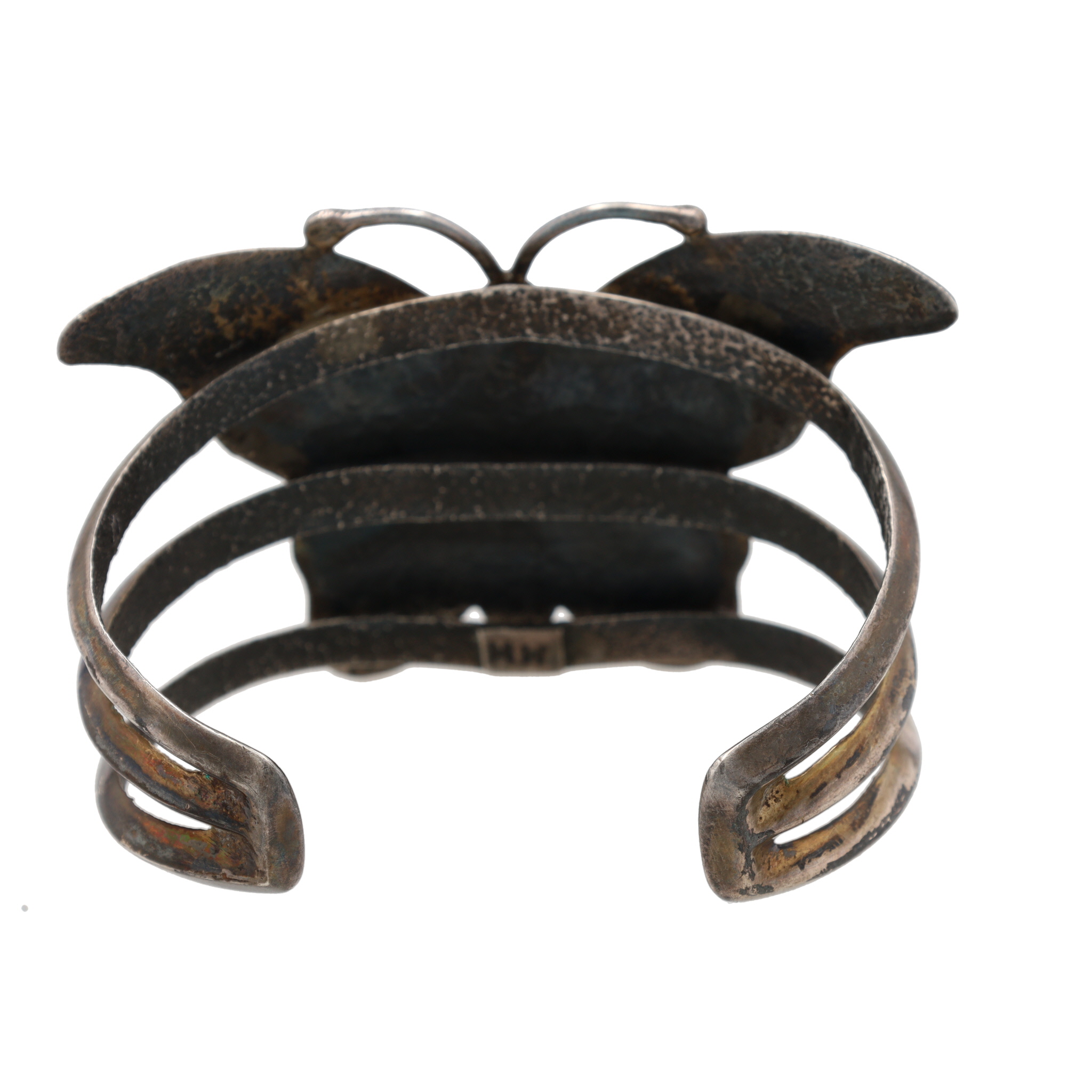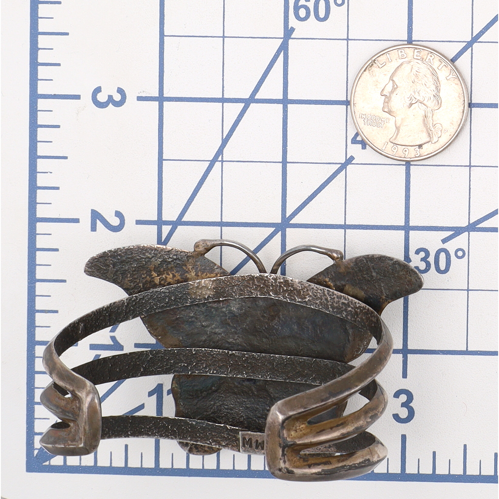Signed MW/WM Navajo Sterling Turquoise Tufa Cast Butterfly Cuff Bracelet 50g