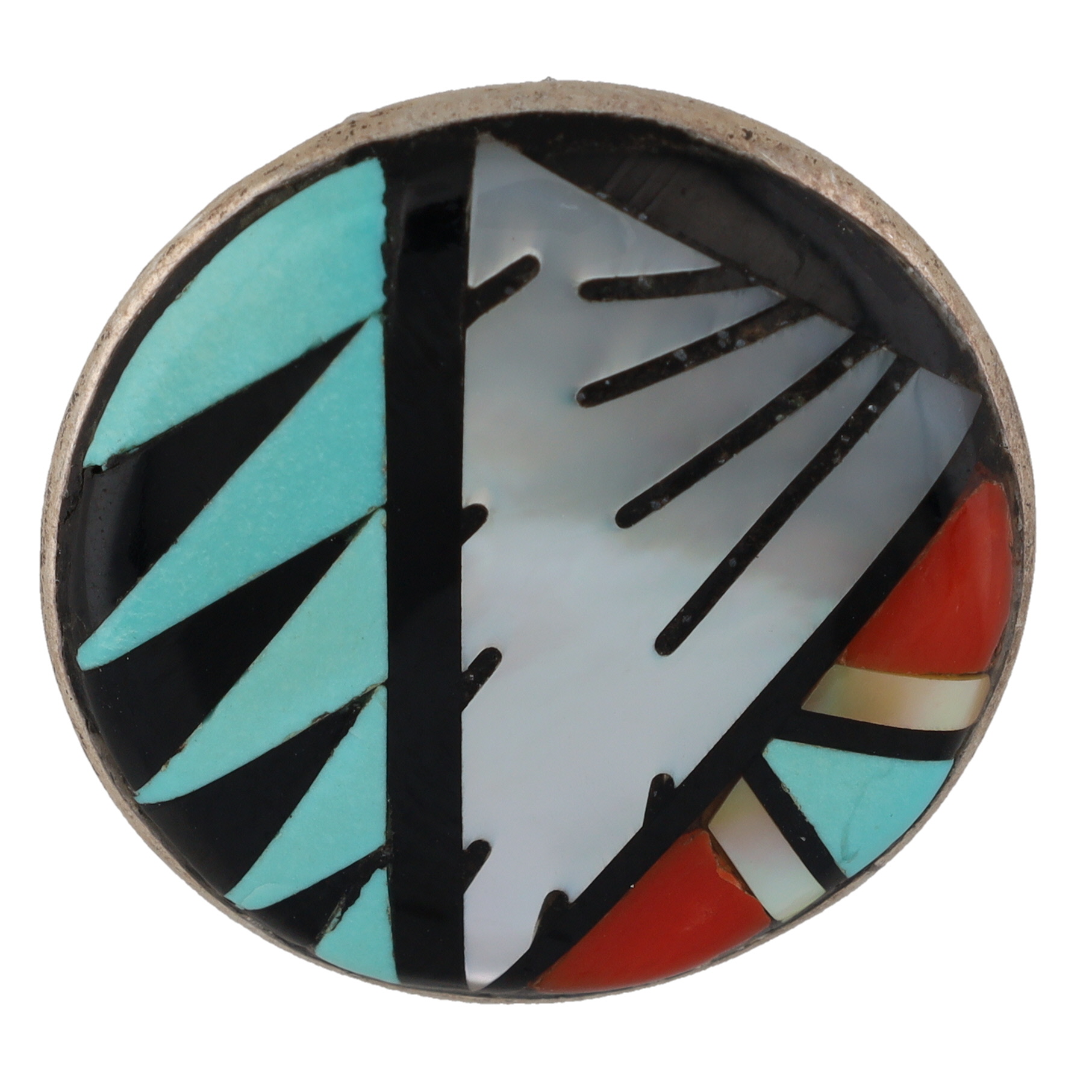 Charles & Marlene Booqua Zuni Sterling Multi Stone Inlay Brooch Pendant 4g