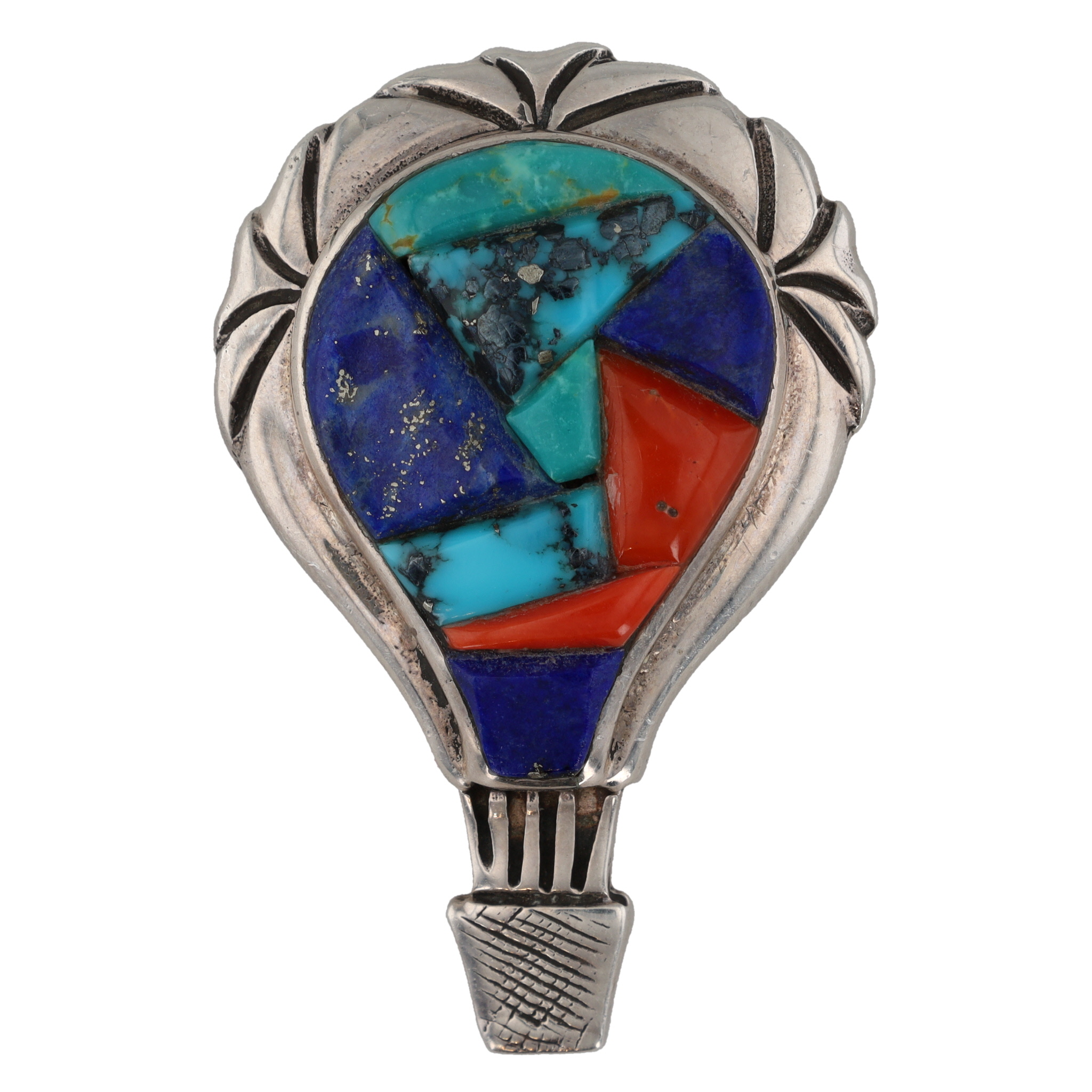 Ervin Hoskie Navajo Sterling Multi Stone Cobblestone Hot Air Balloon Inlay Brooch 12g
