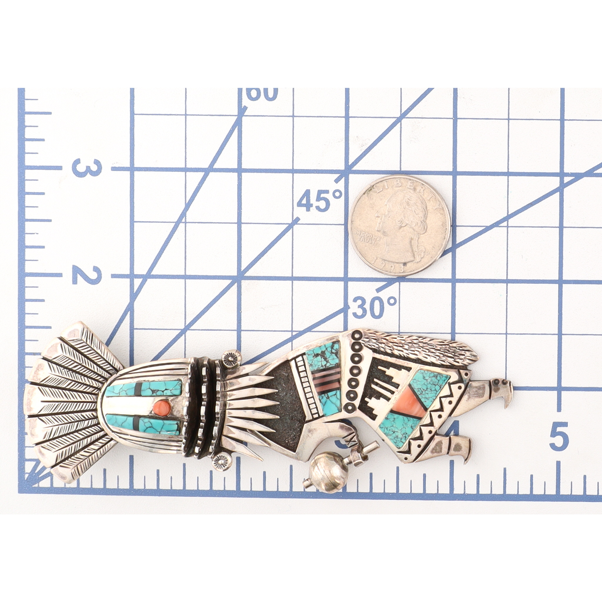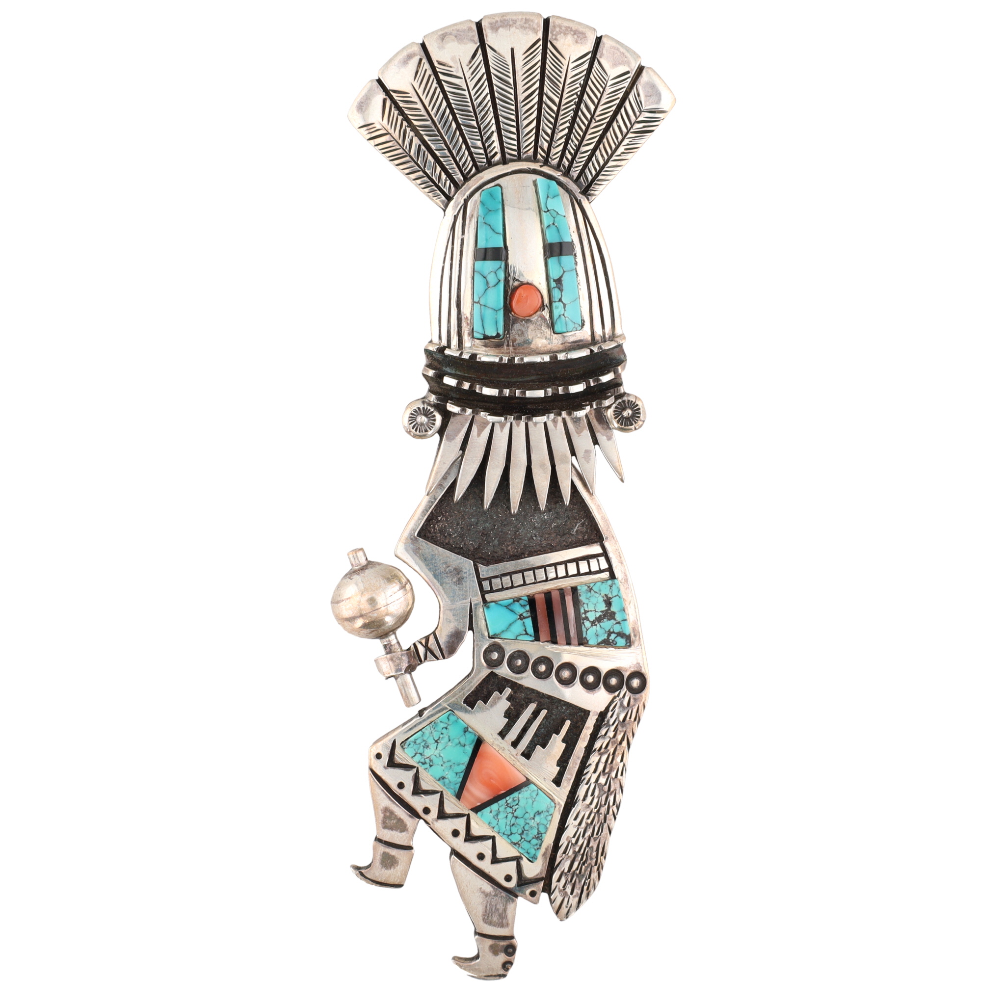 Richard Begay Navajo Sterling Moving Kachina Dancer Inlay Pendant Brooch 47g