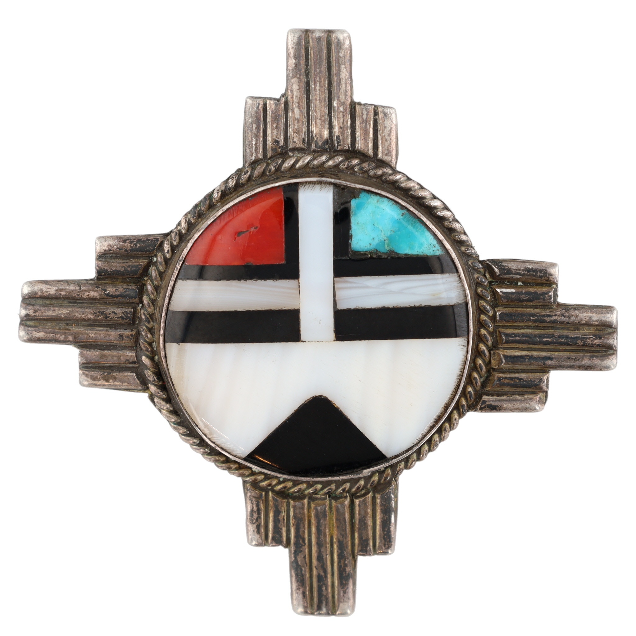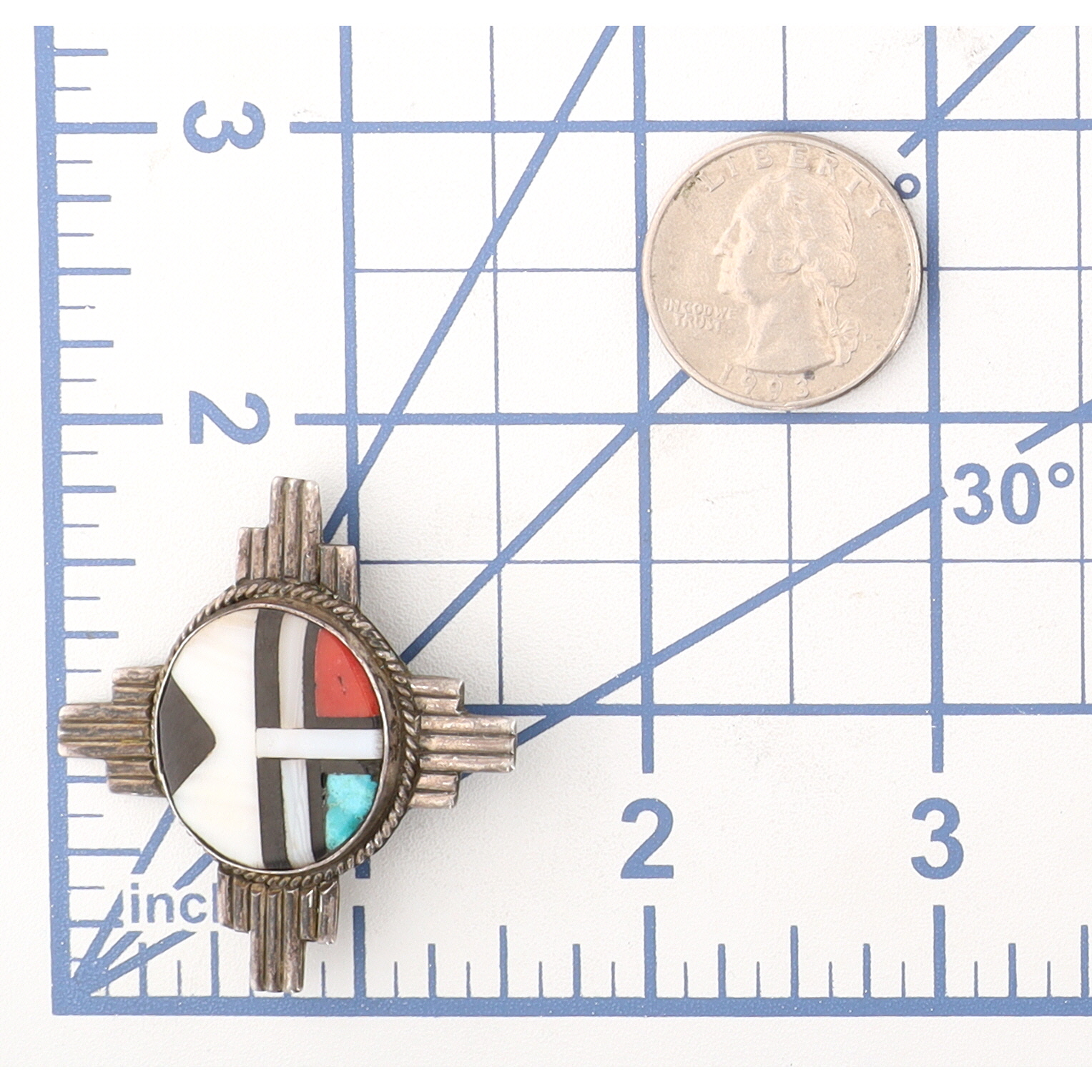 Vintage Zuni Sterling Multi Stone Sunface Inlay Brooch 8g