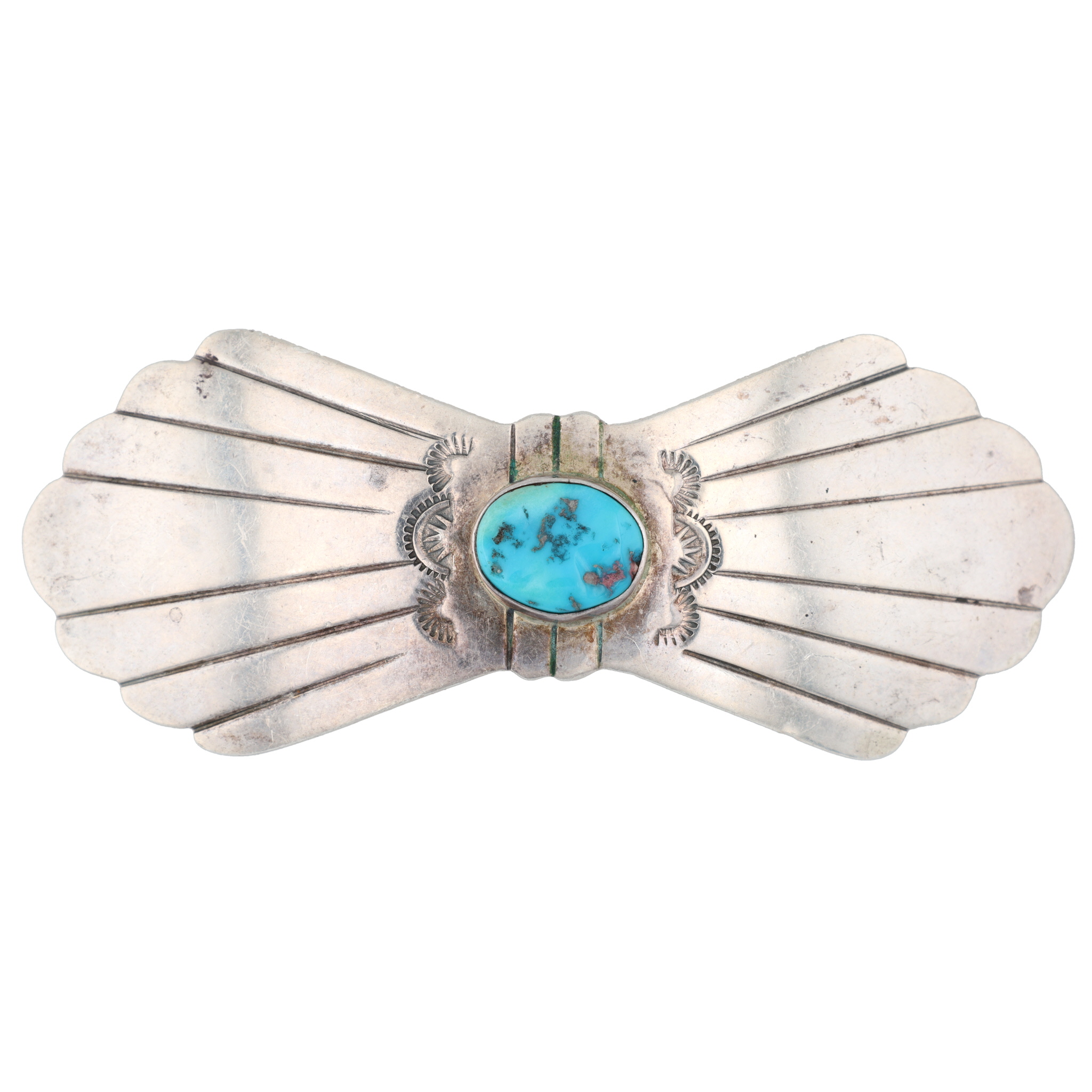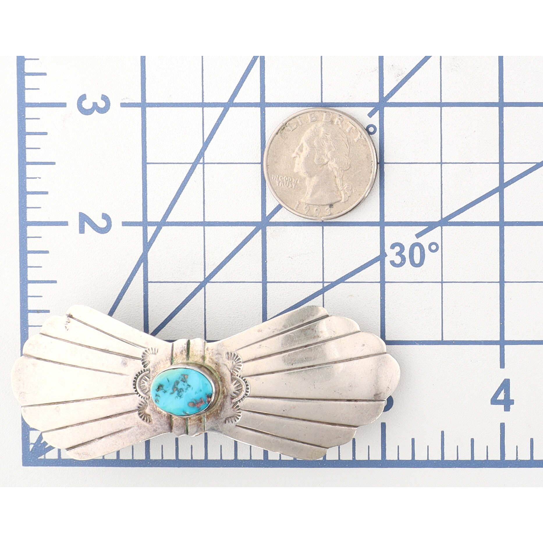 Signed GJ Southwestern Sterling Turquoise Hair Clip 21g