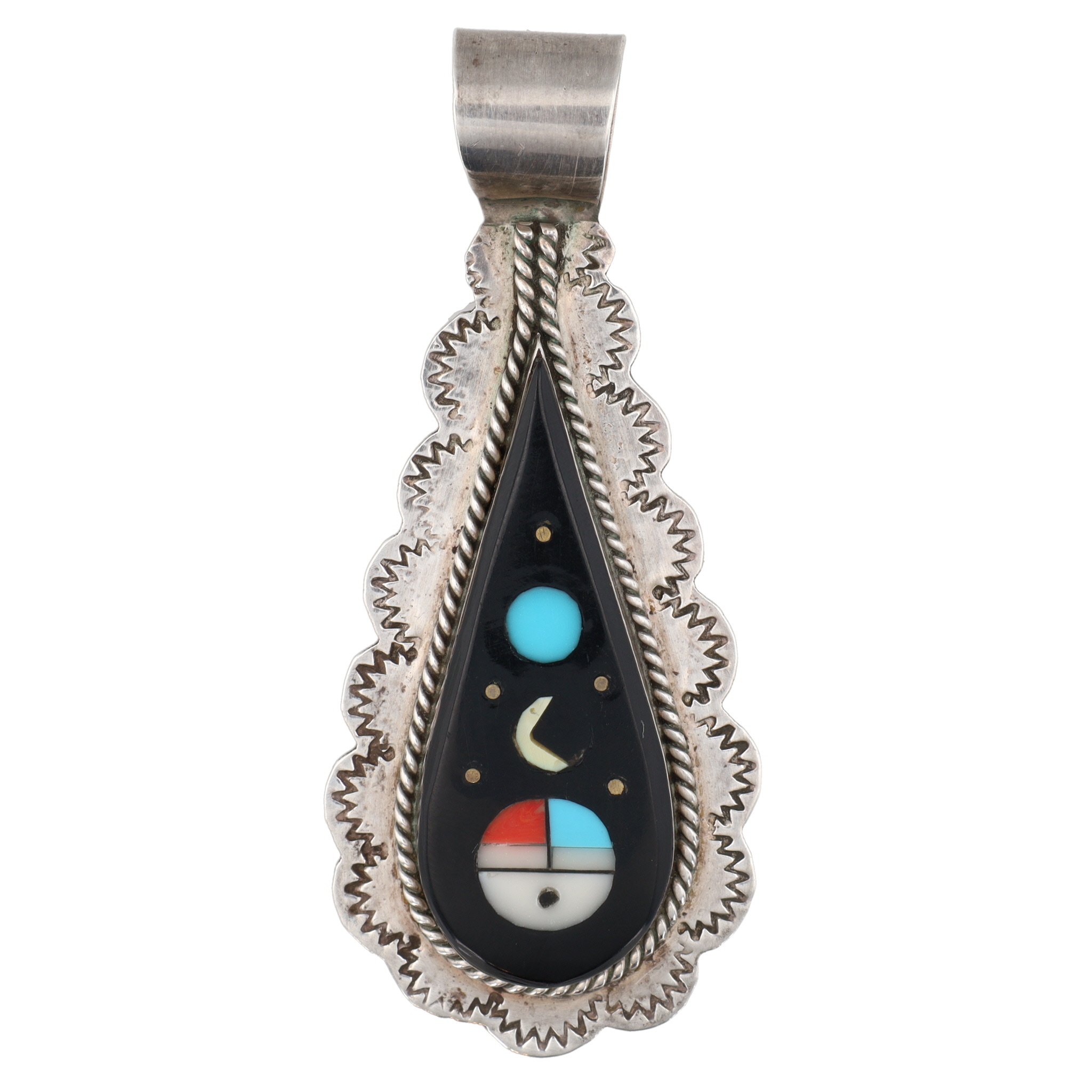 Willie Saiz Navajo Sterling Multi Stone Sunface Inlay Pendant