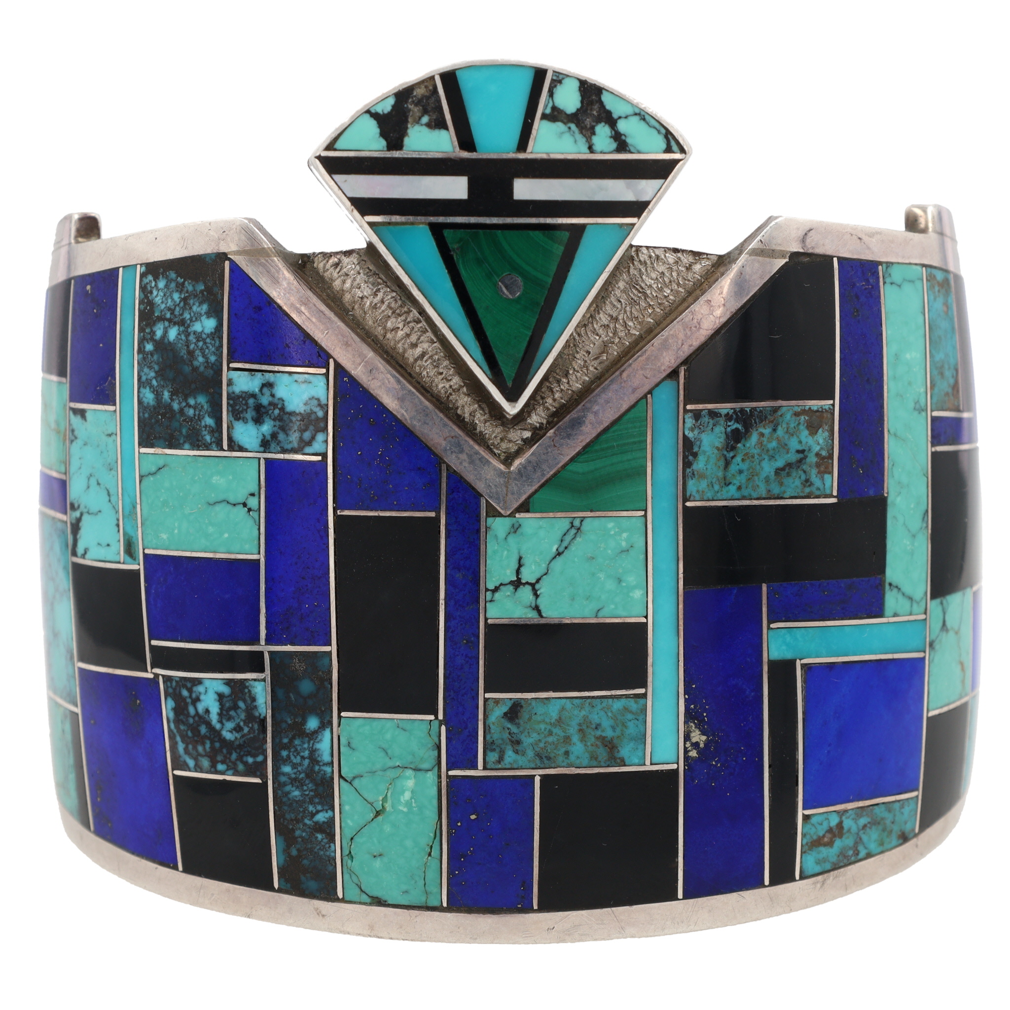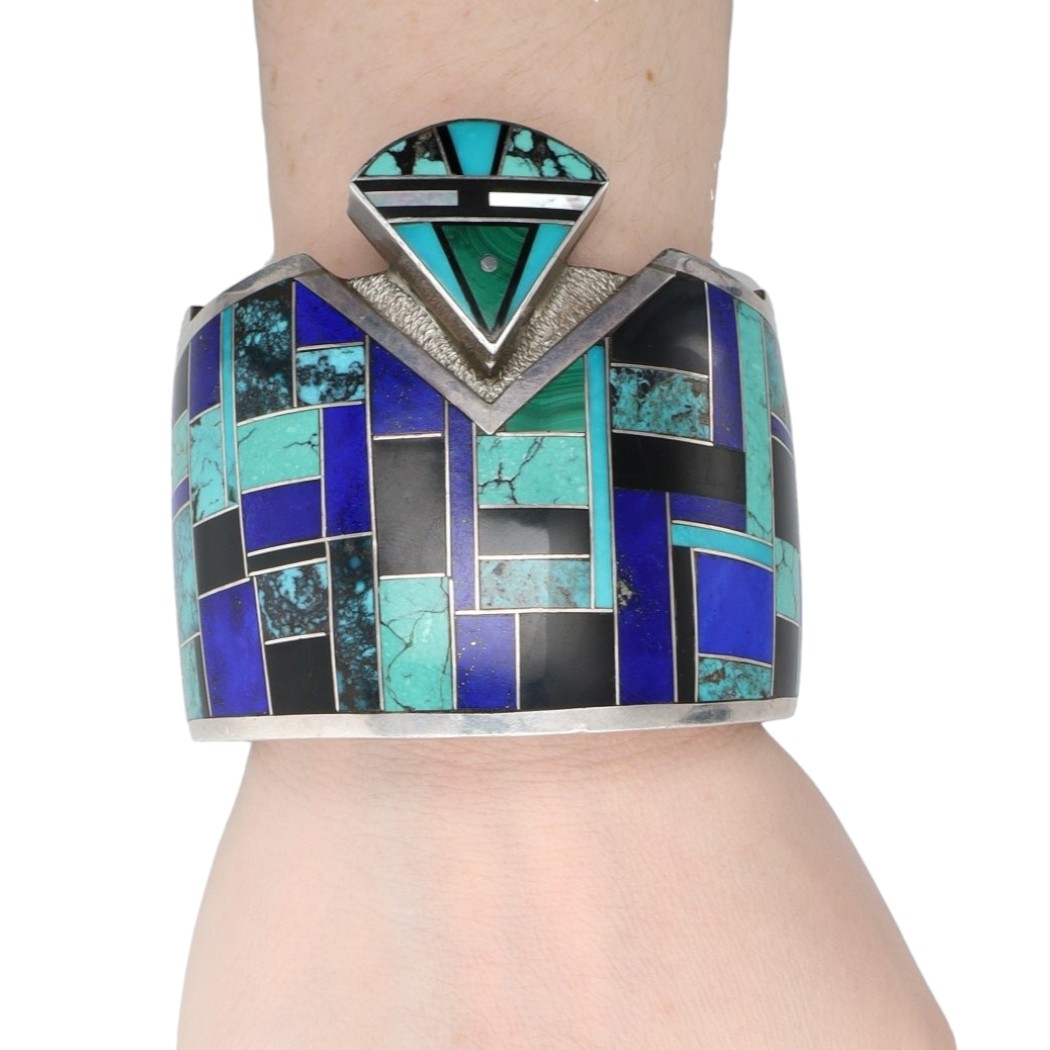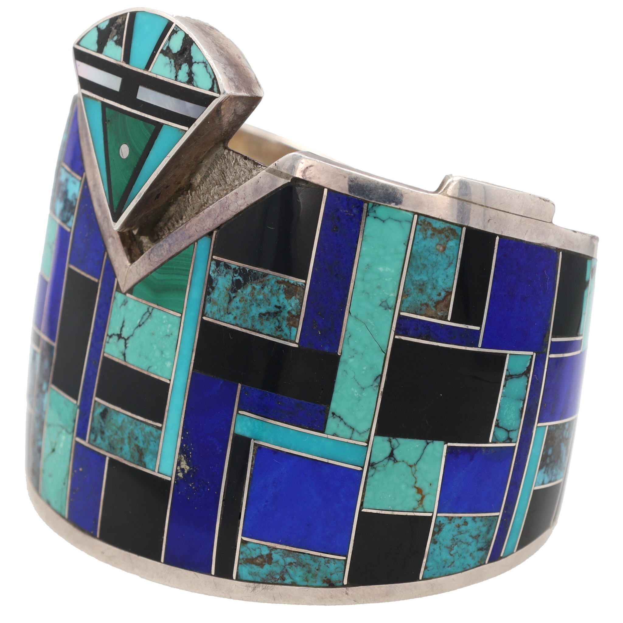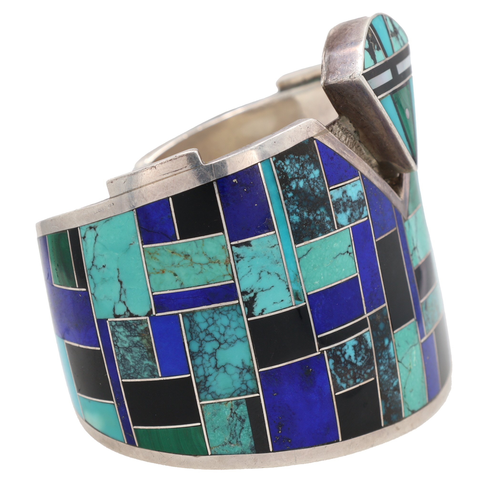Annabelle Peterson Navajo Sterling Multi Stone Inlay Cuff Bracelet 107g