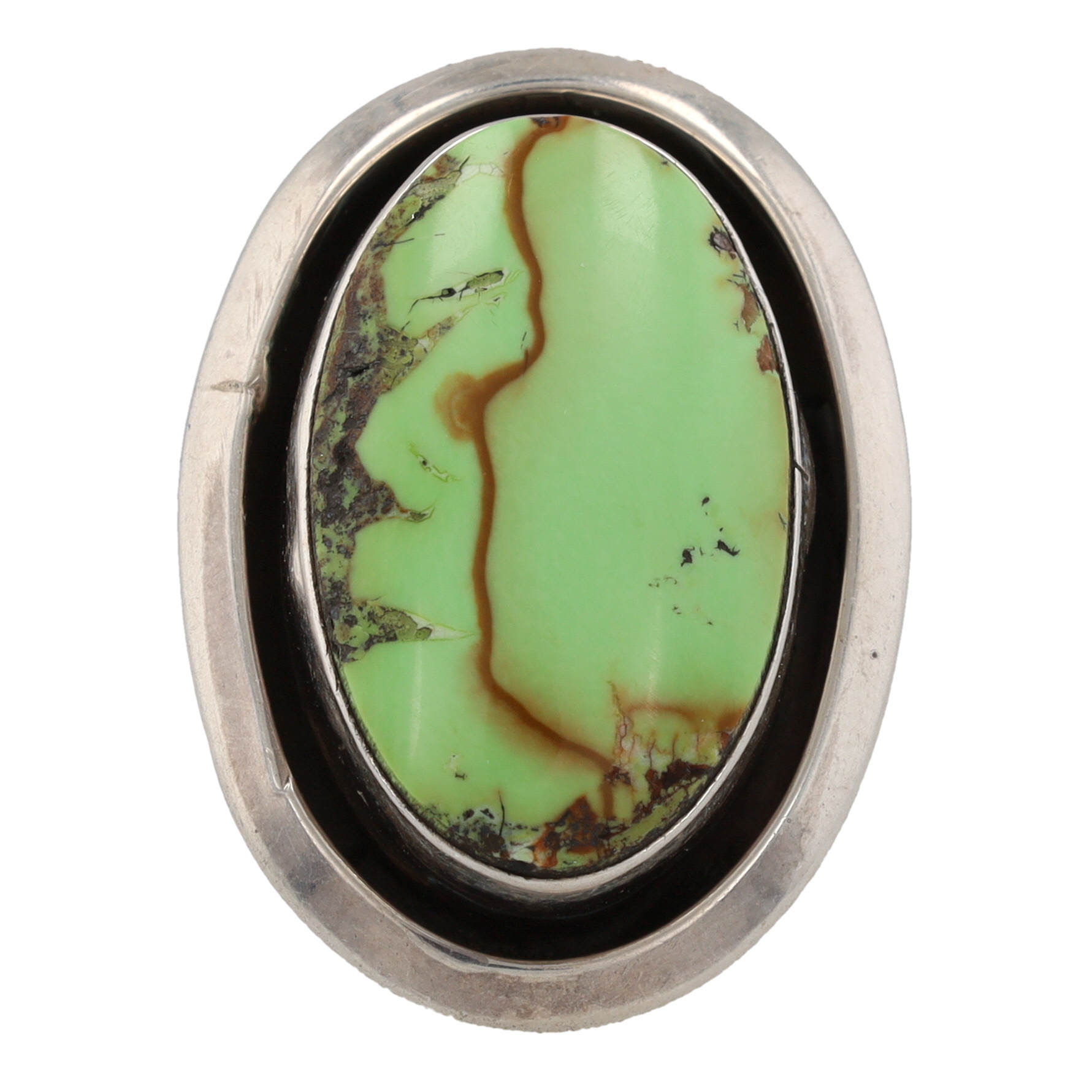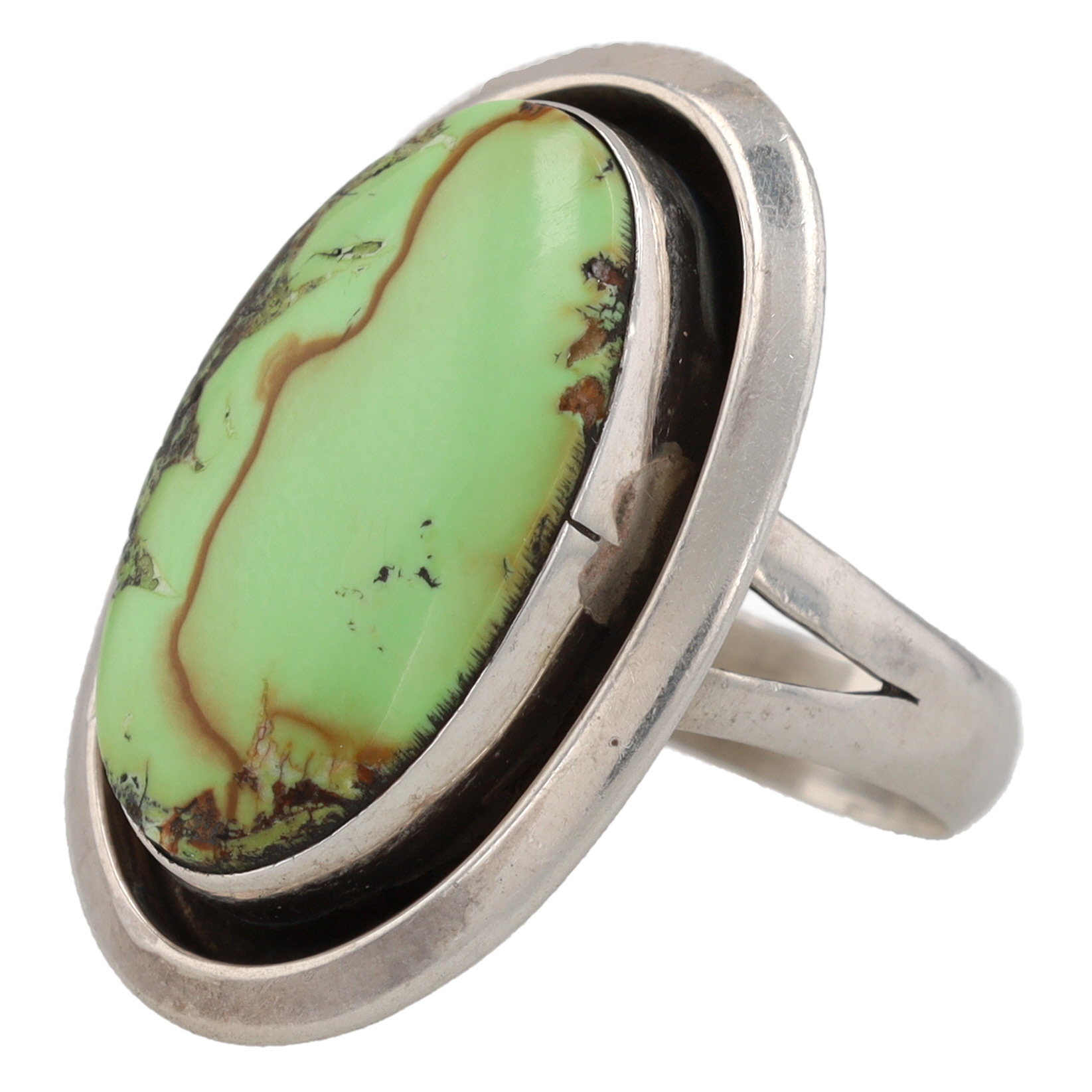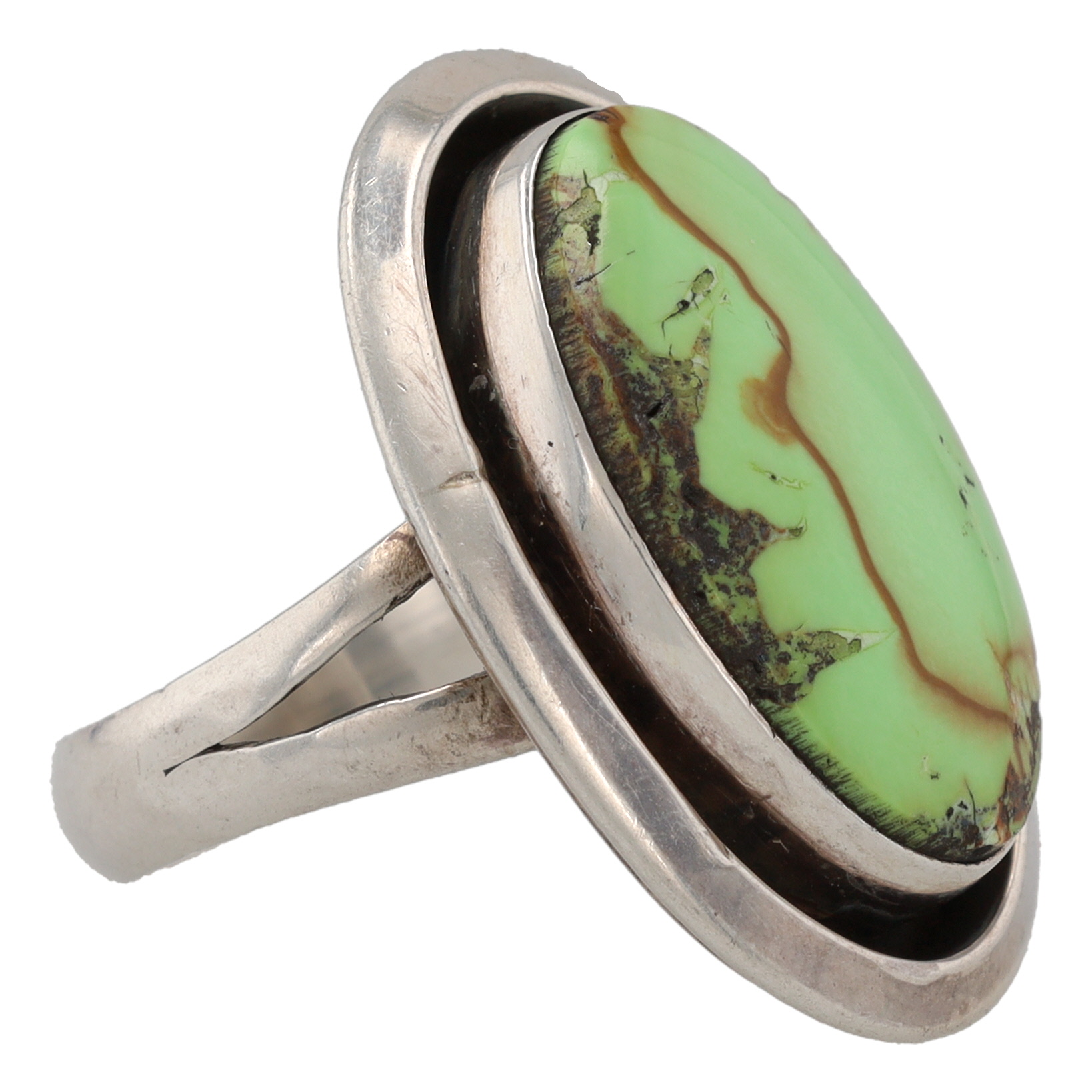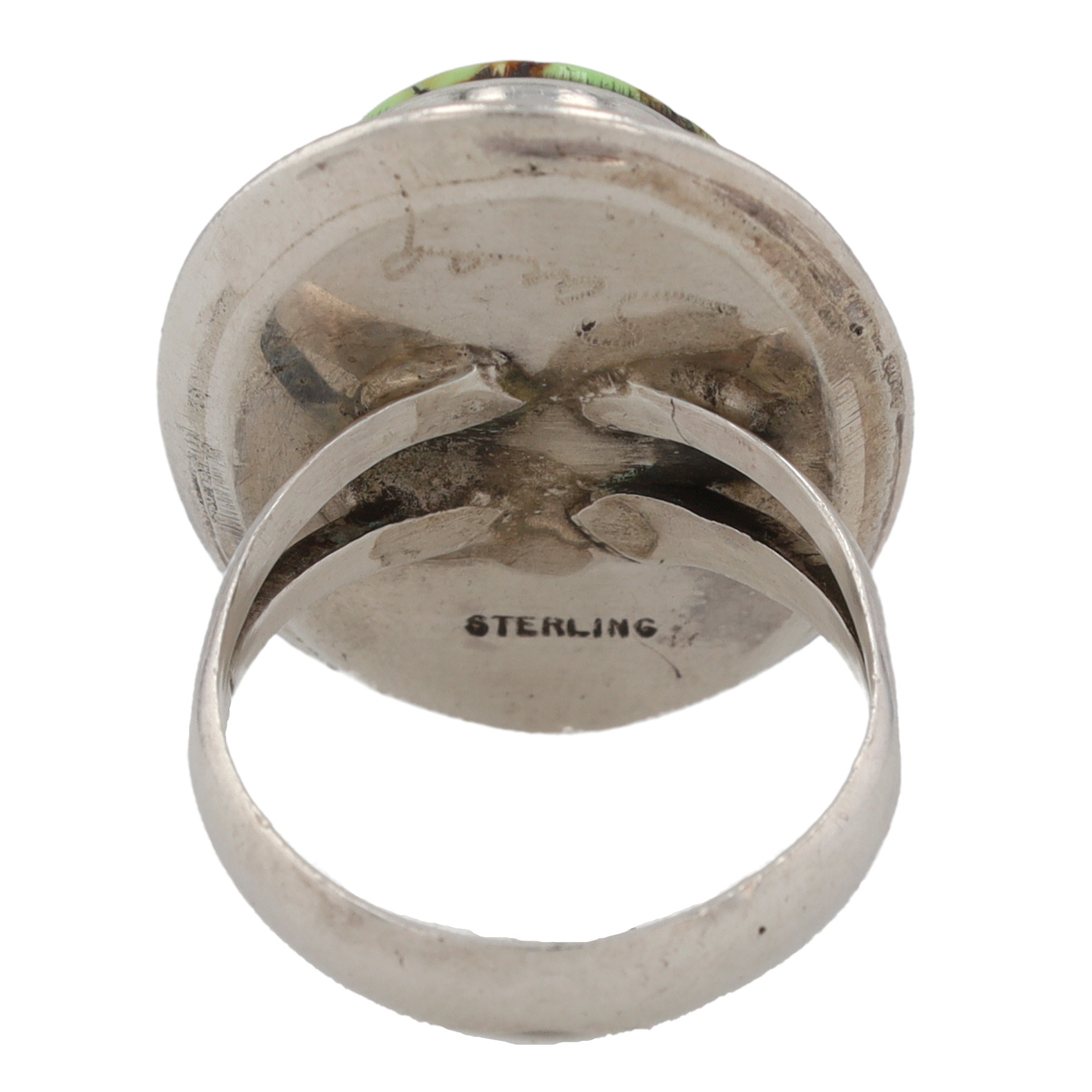 Hand Signed Sarah Navajo Sterling Gaspeite Ring Sz. 7.25, 10g