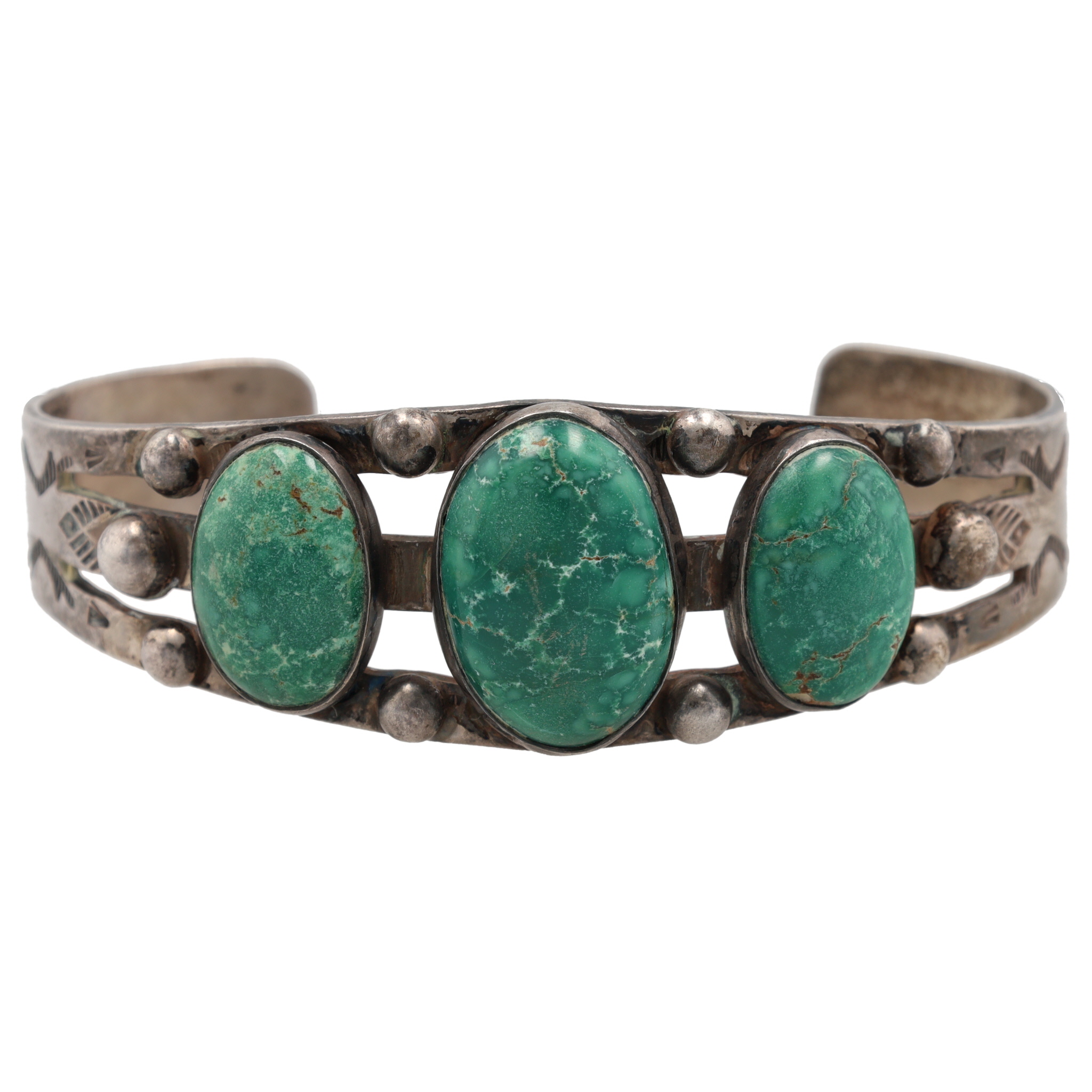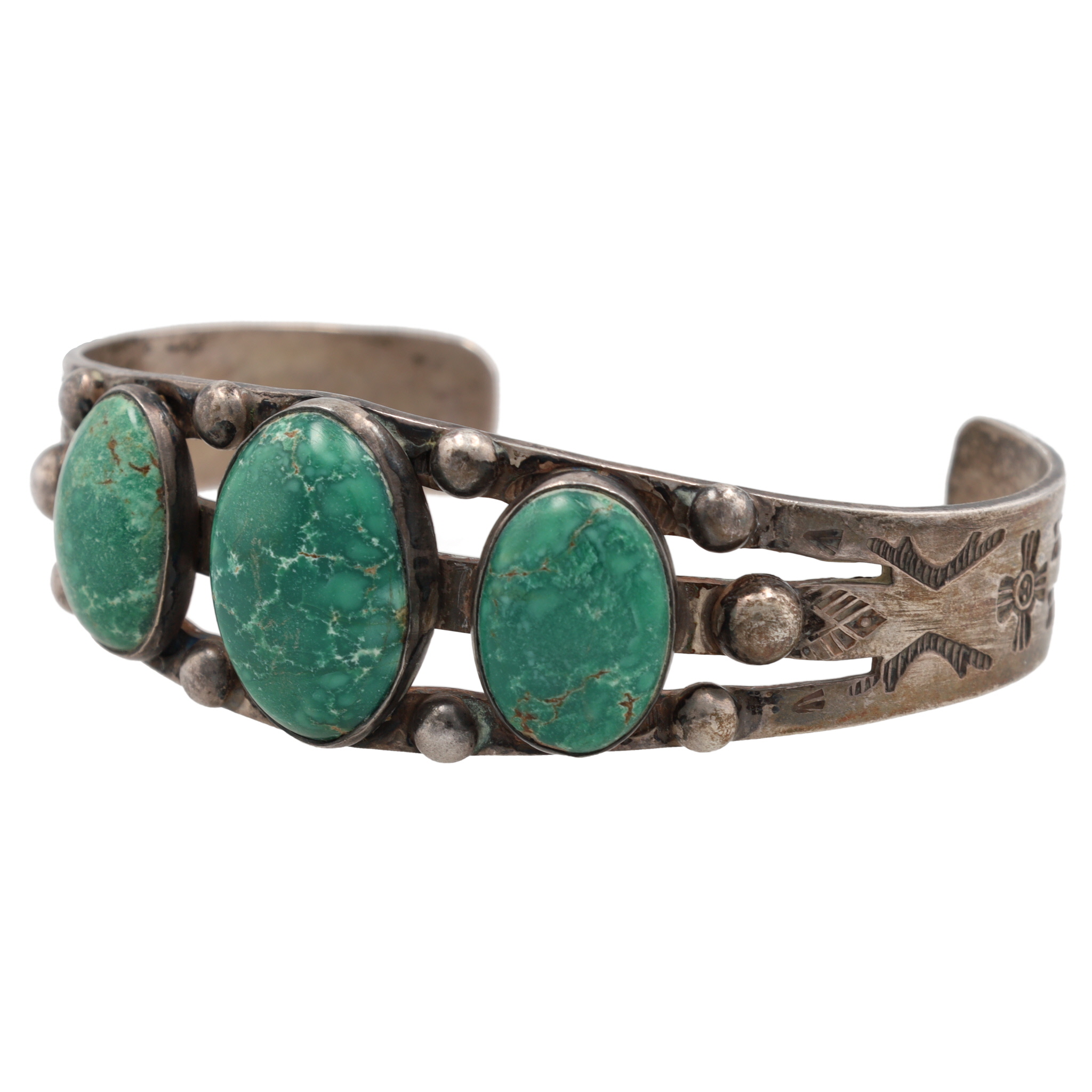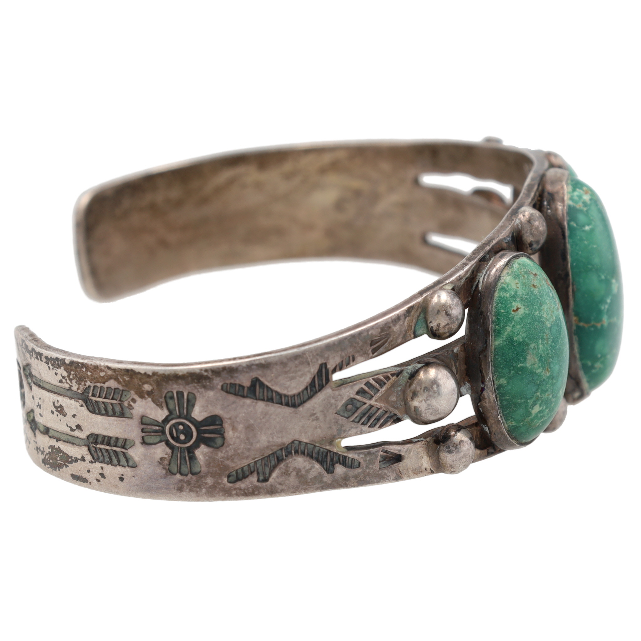 Fred Harvey Era Maisels Trading Post Sterling Turquoise Cuff Bracelet 30g