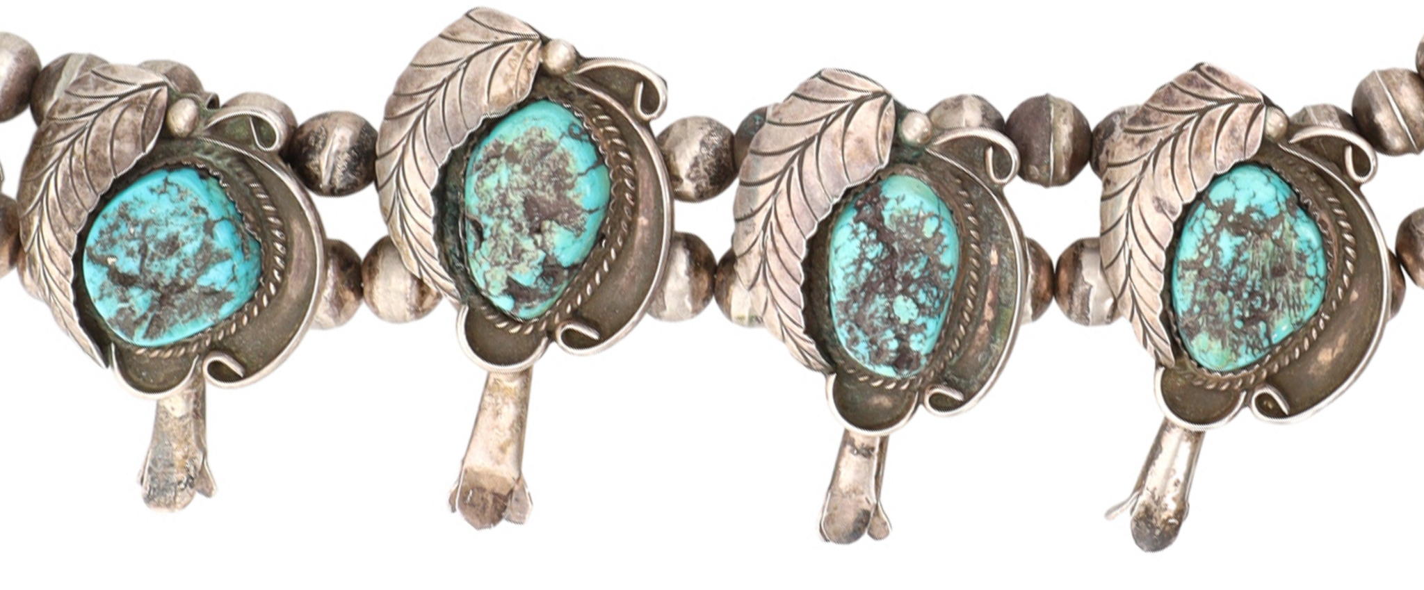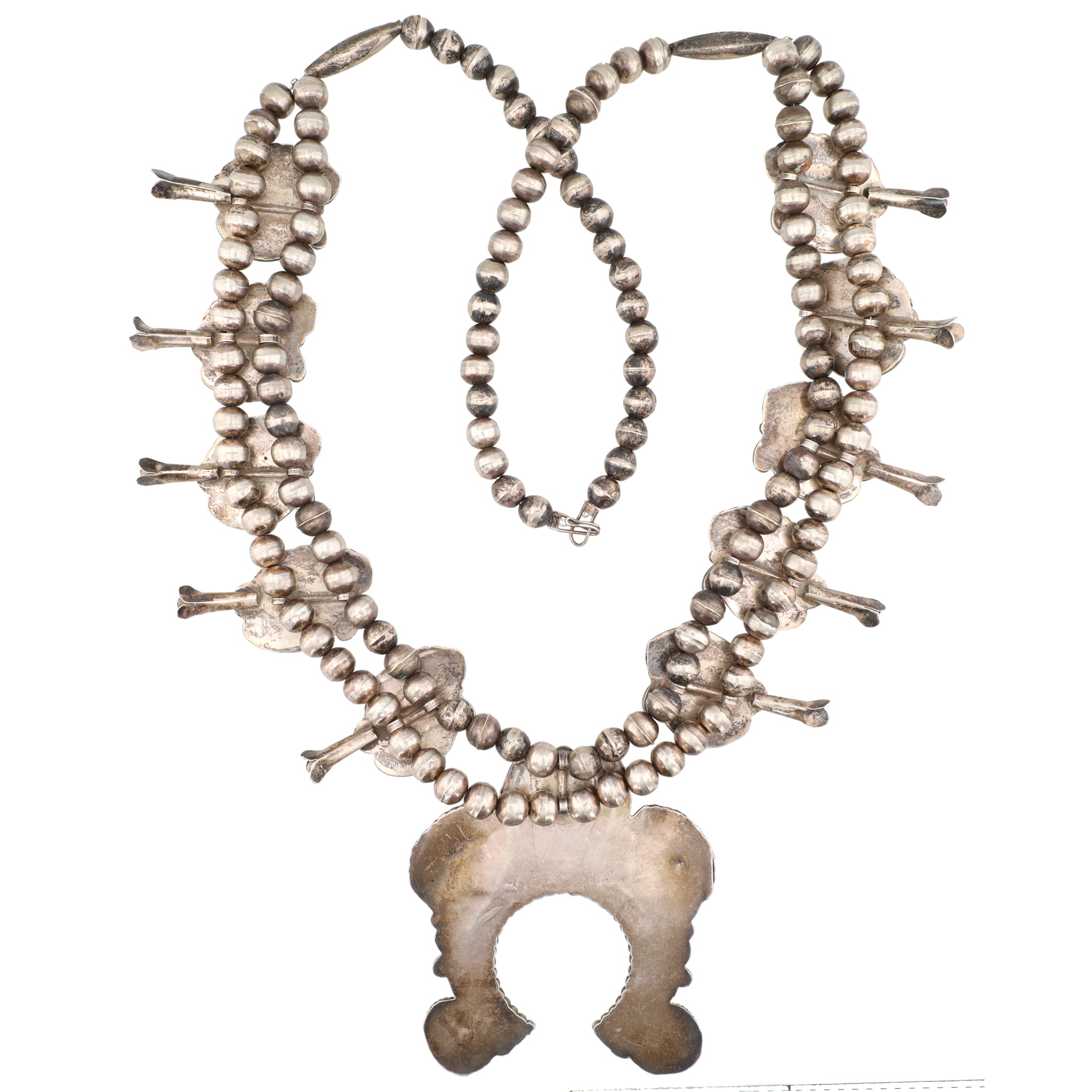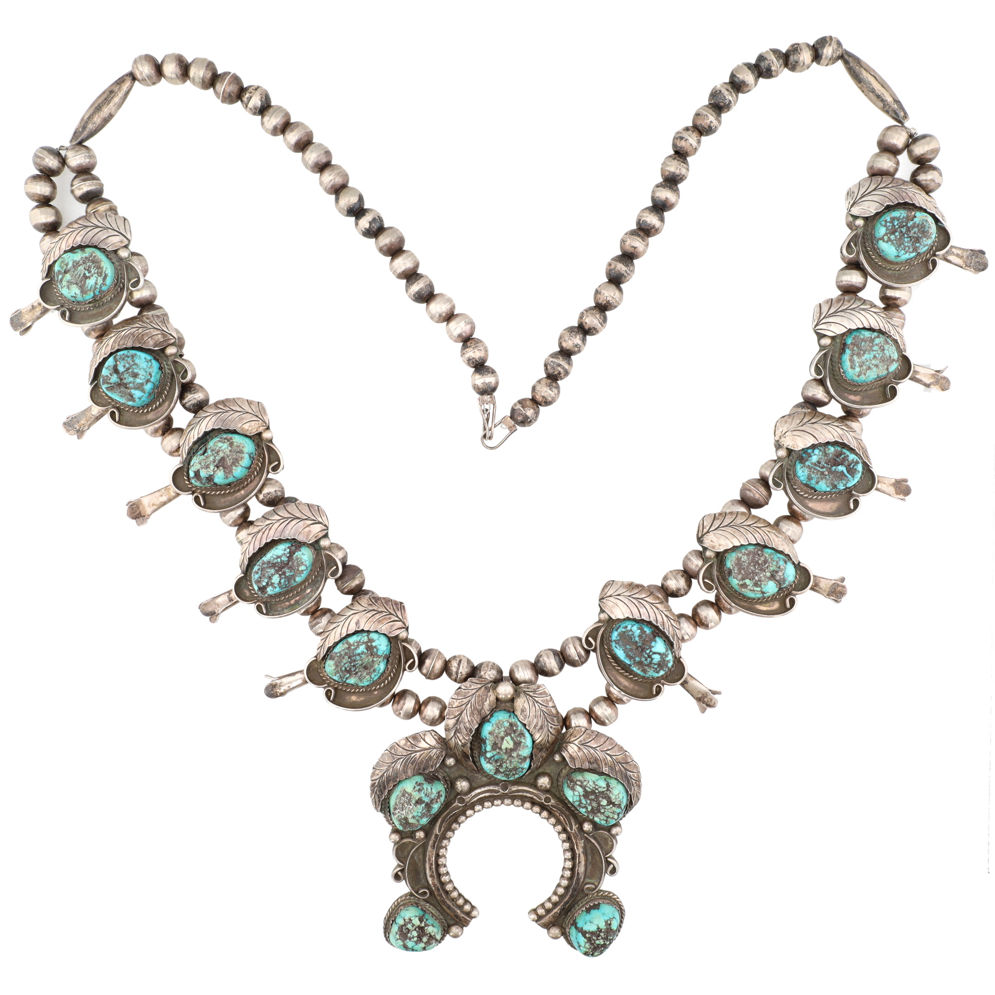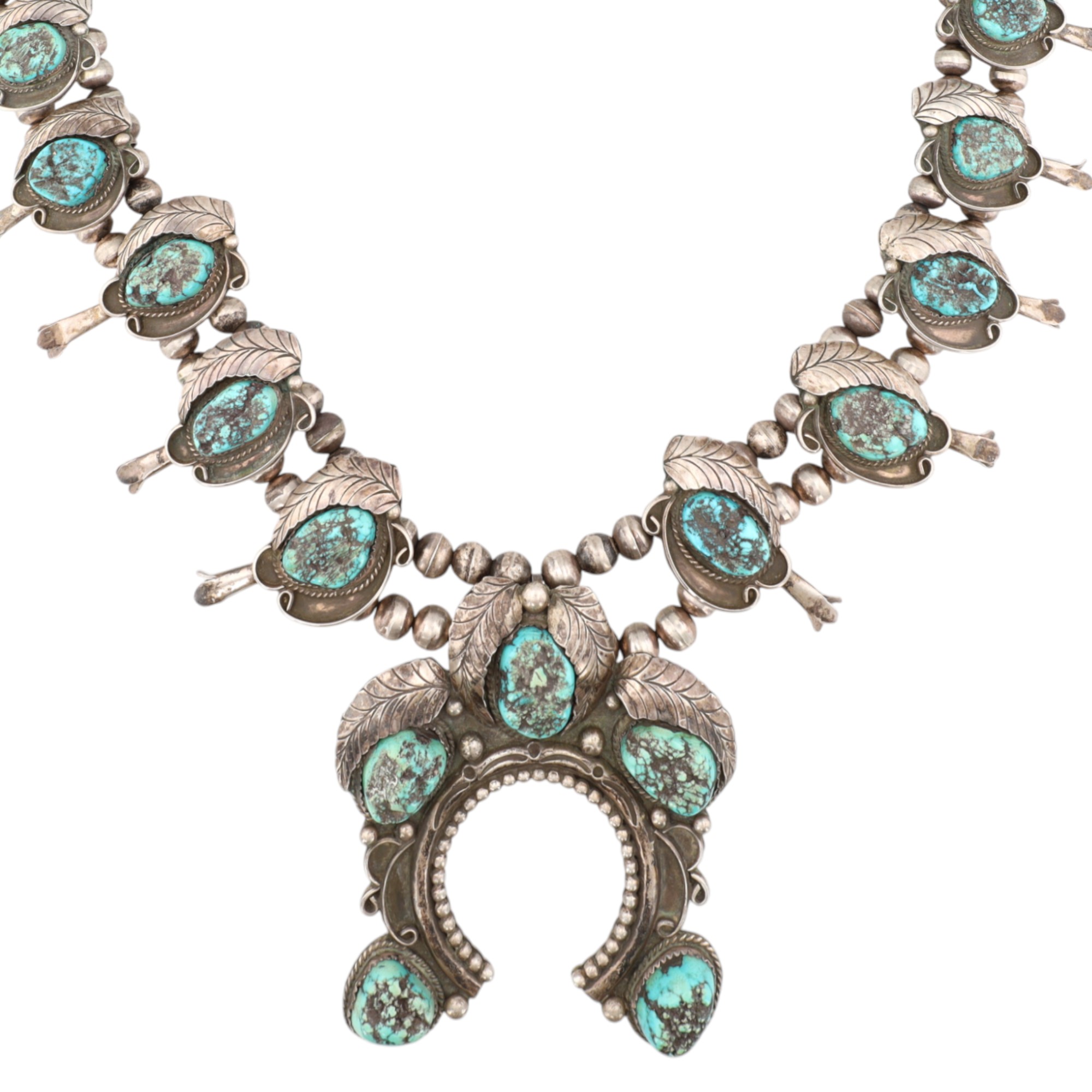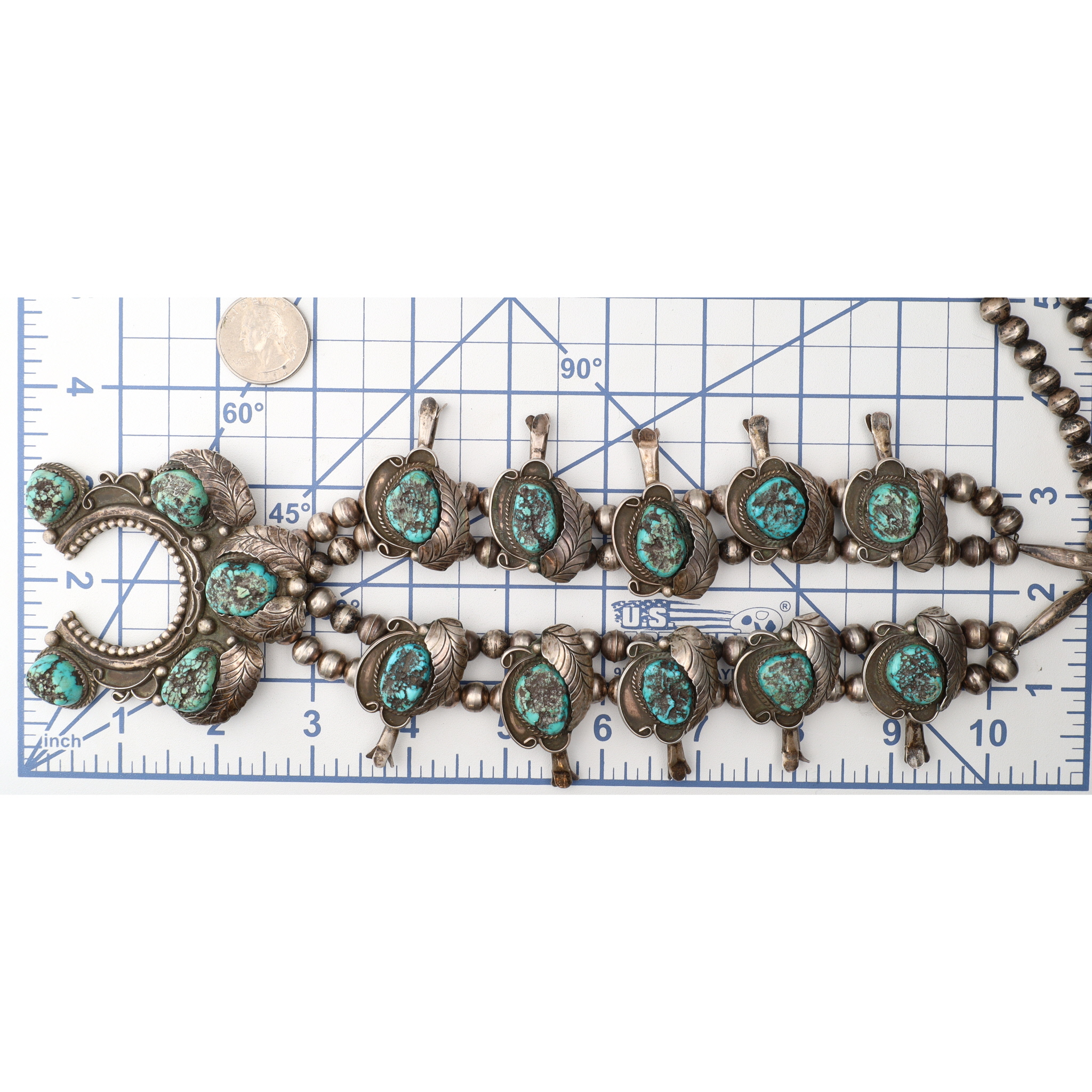 Huge Vintage Navajo Sterling Turquoise Squash Blossom Necklace 195.5g